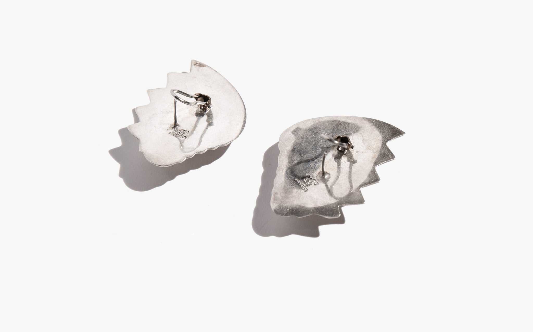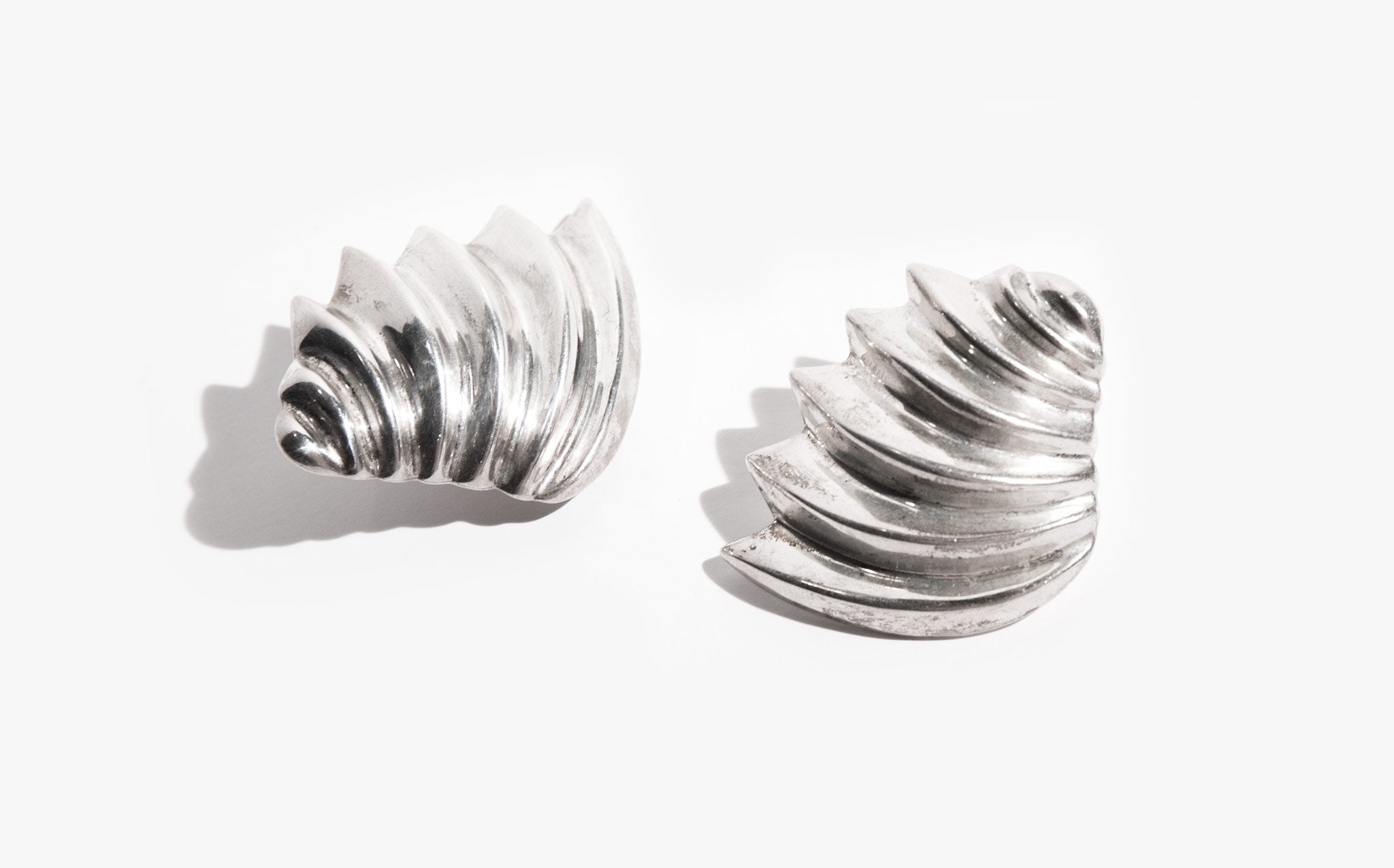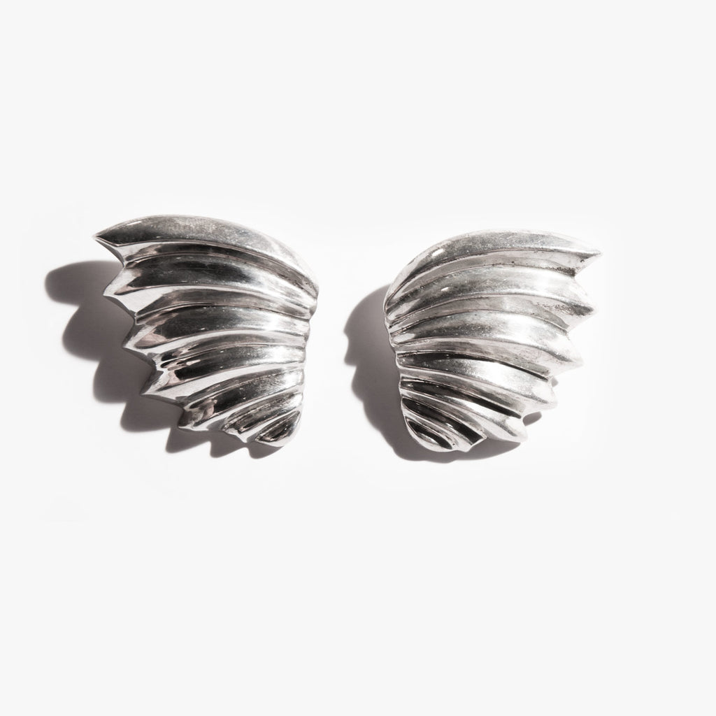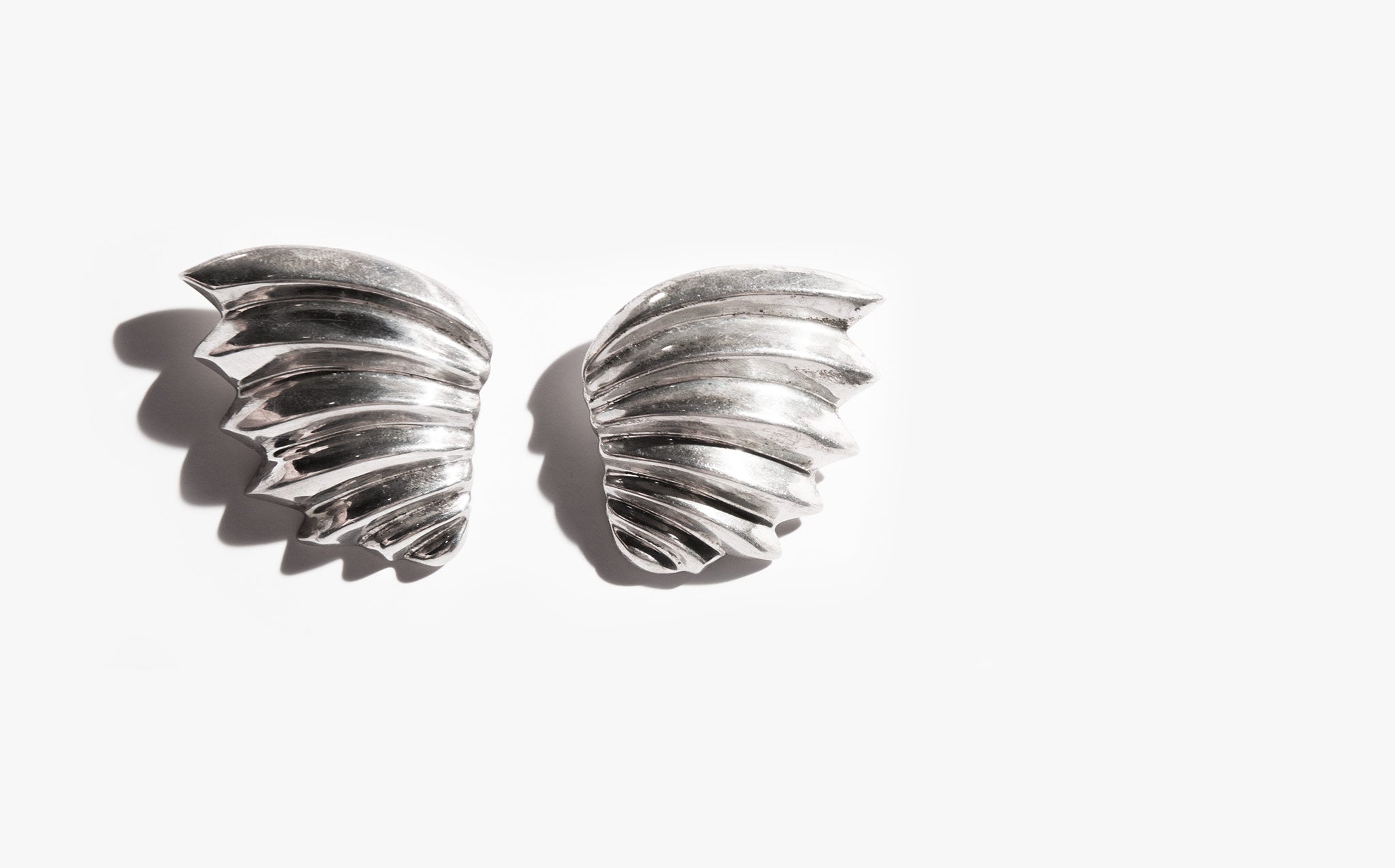 The wings of Hermes – large, eye-catching, ridged sterling silver earrings.