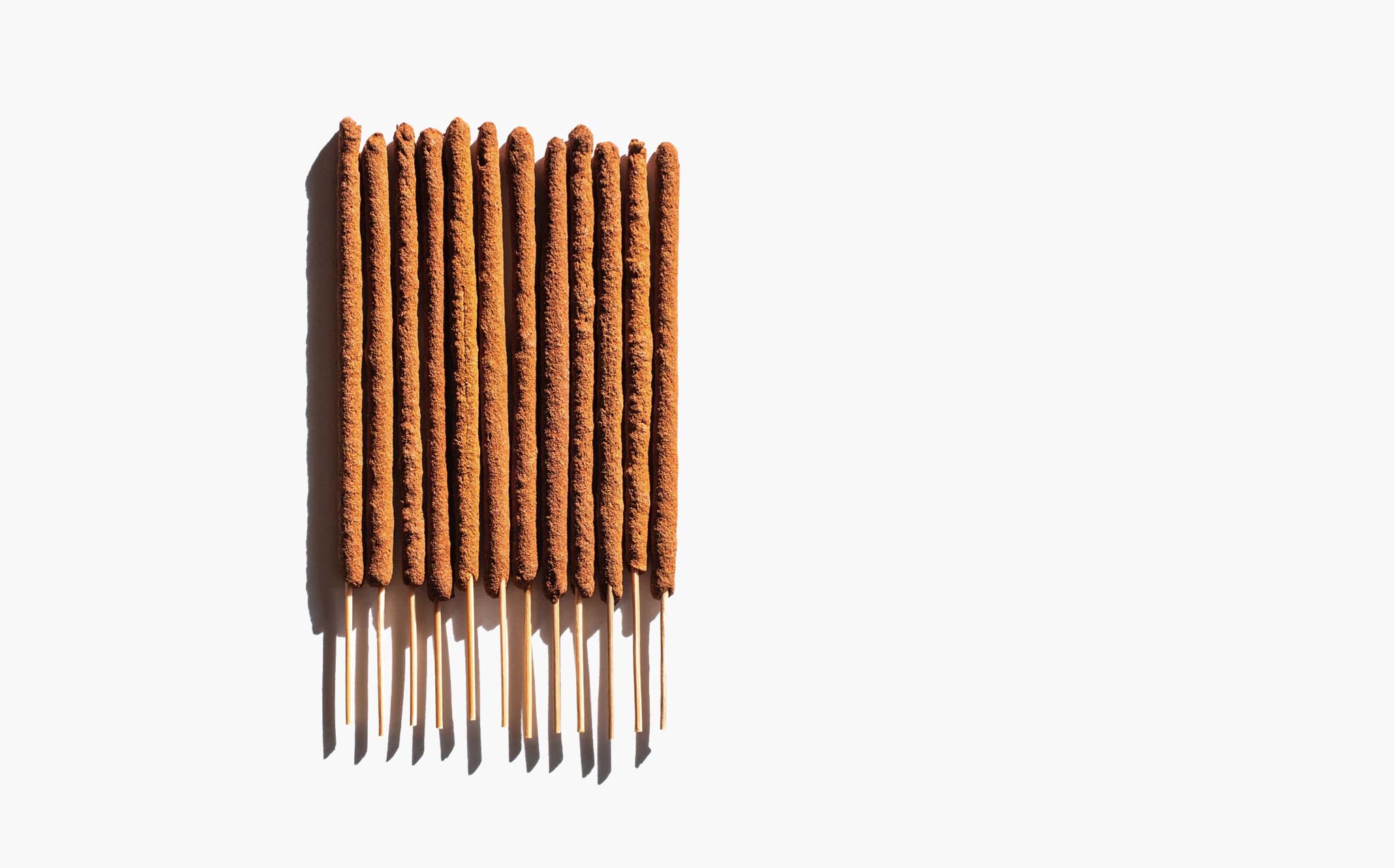 Hand-Rolled in Canada from herbs, barks, resins and gums onto raw bamboo sticks.