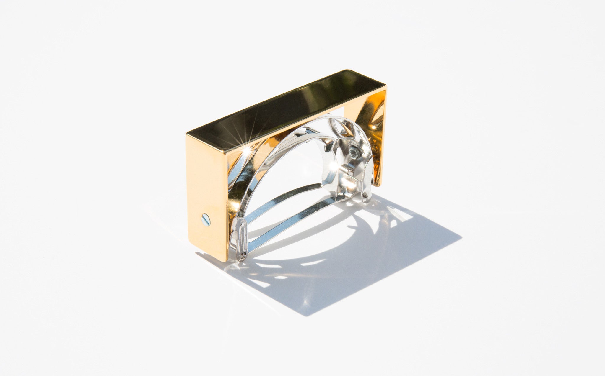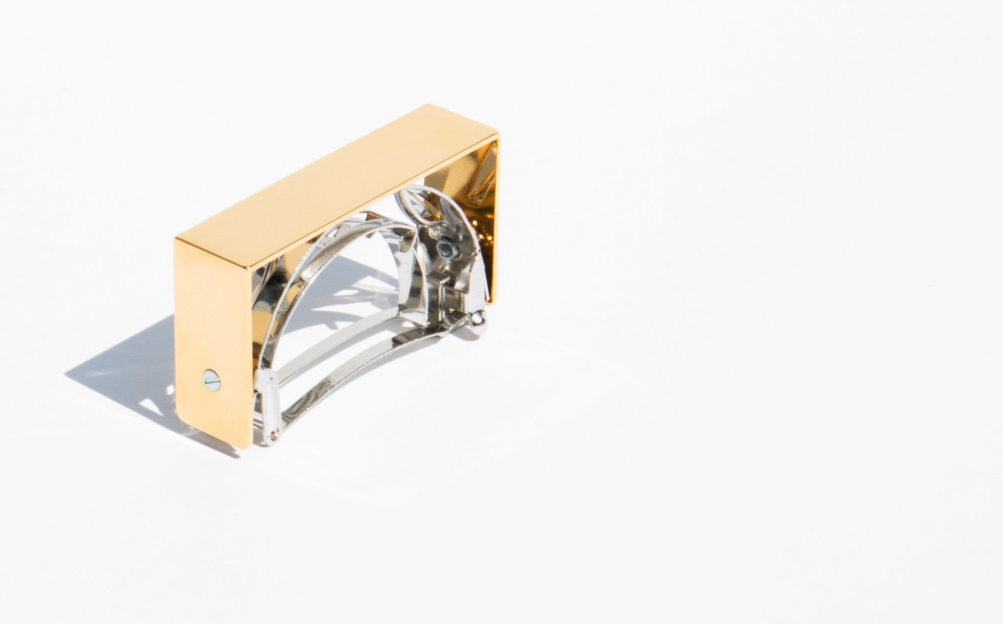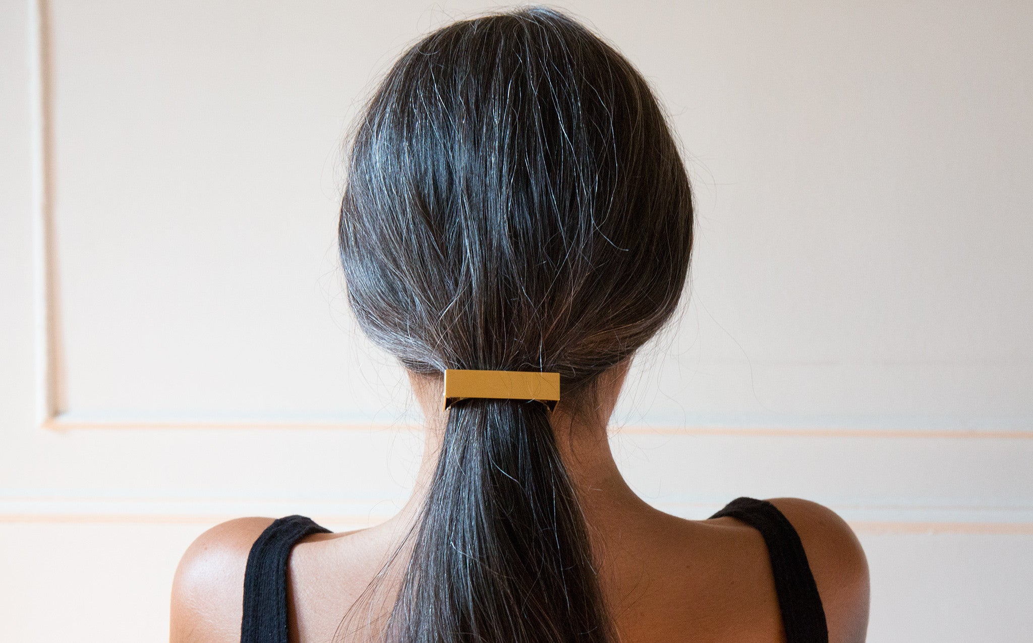 Sculptural and sleek hair jewelry for the well groomed ponytail. The Sylvain Le Hen Gold Barrette 041, handmade in France.