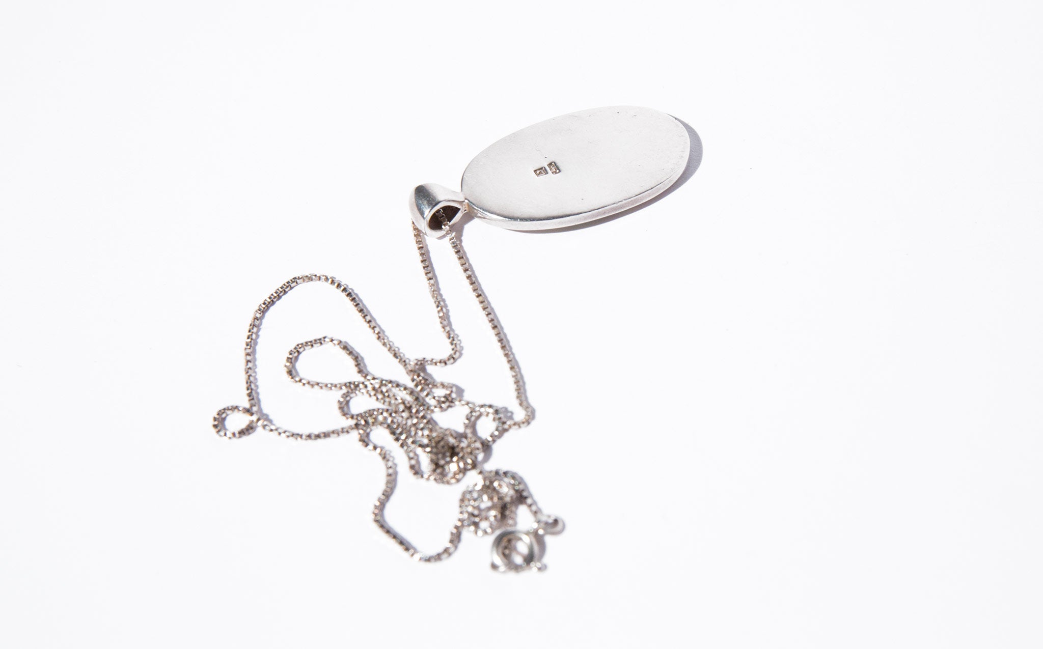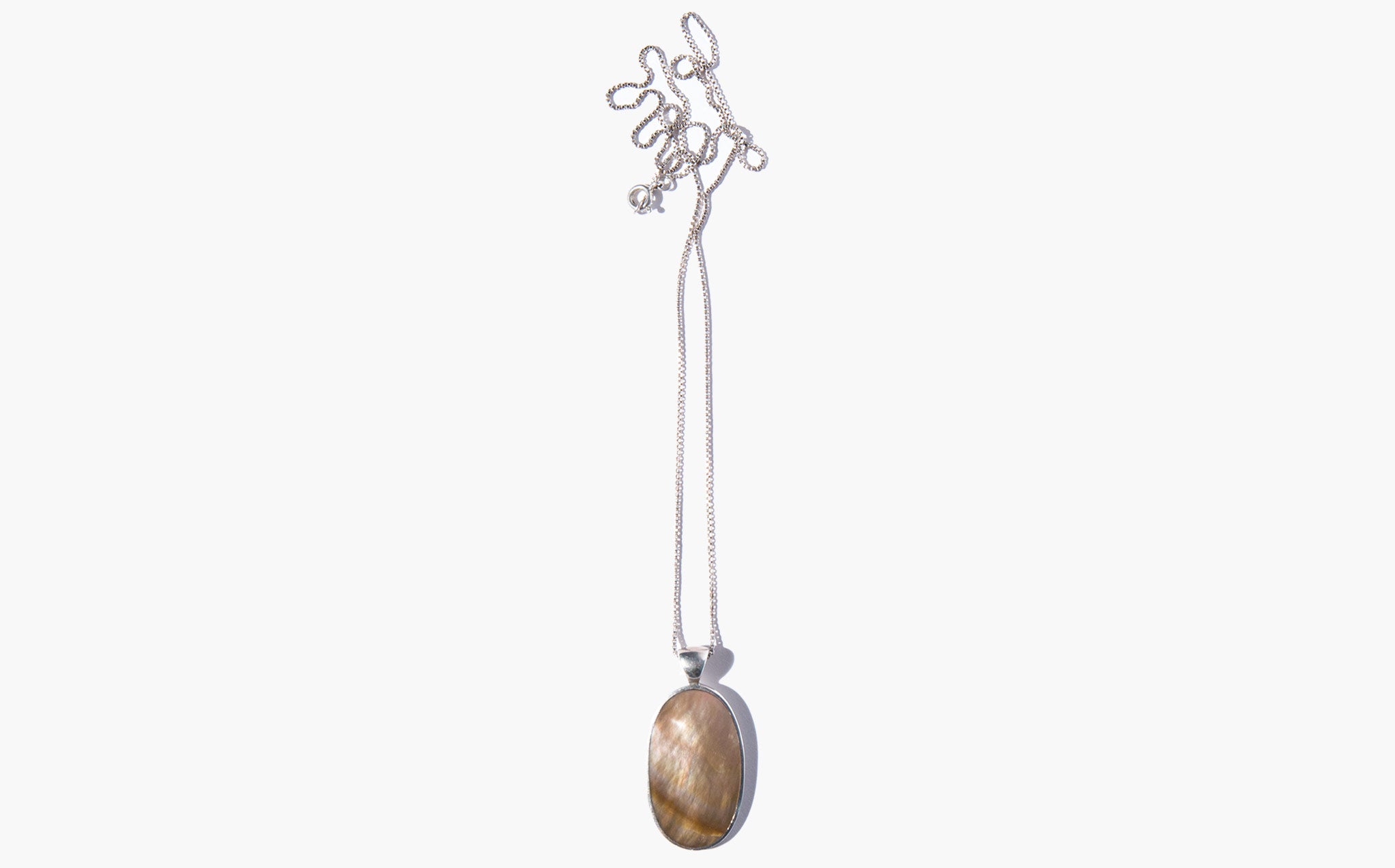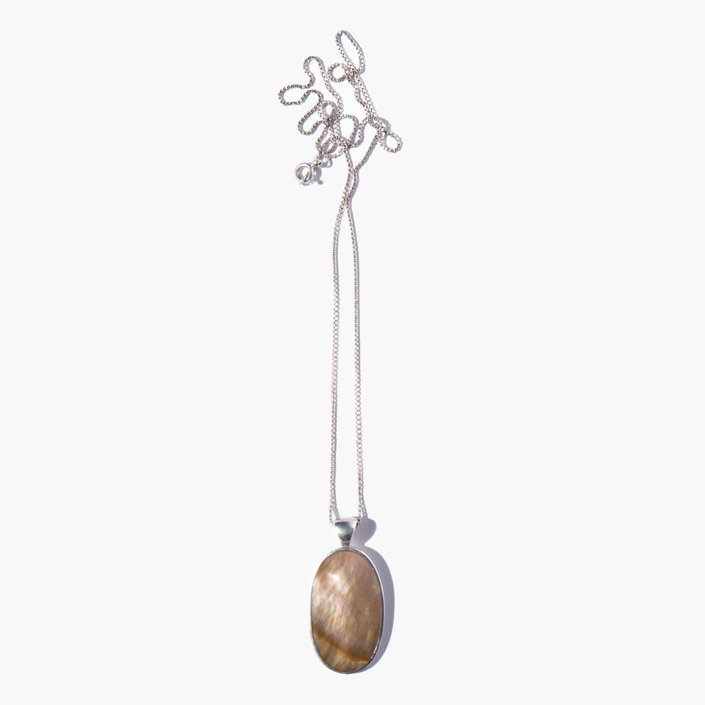 Striking mother of pearl pendant on a simple sterling silver chain.
