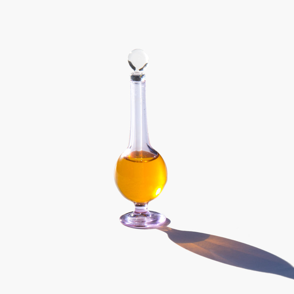 Approximately 6 ml bottle is hand made in the US by a master glass artisan and is shipped wax and cork sealed.