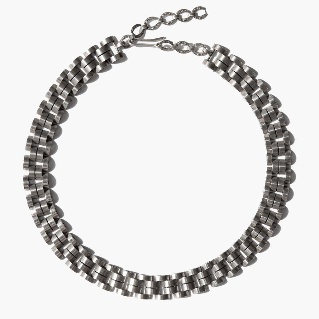 Sterling silver maille link collar necklace.