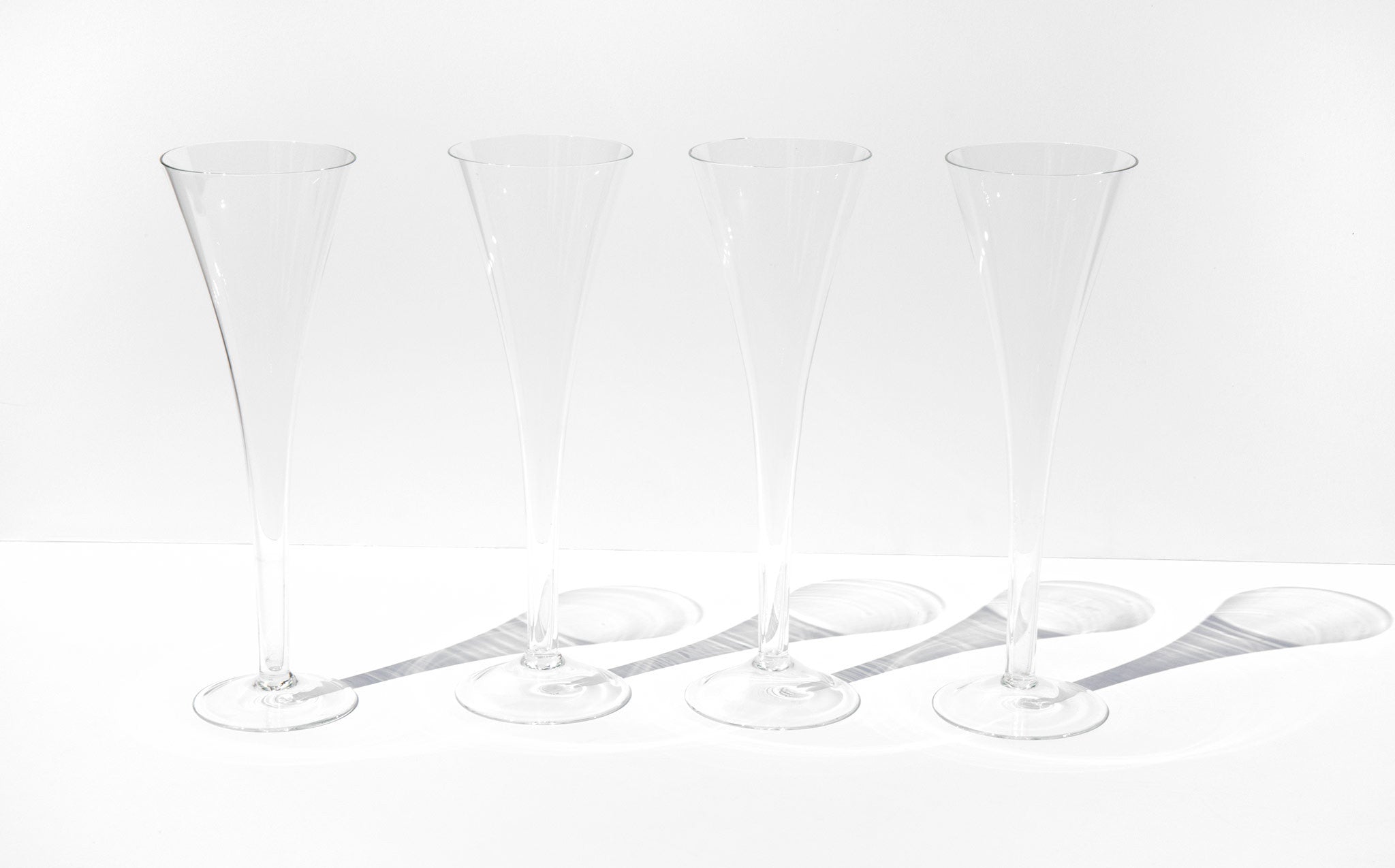 Long, elegant, Deco-style champagne flutes, set of 4.