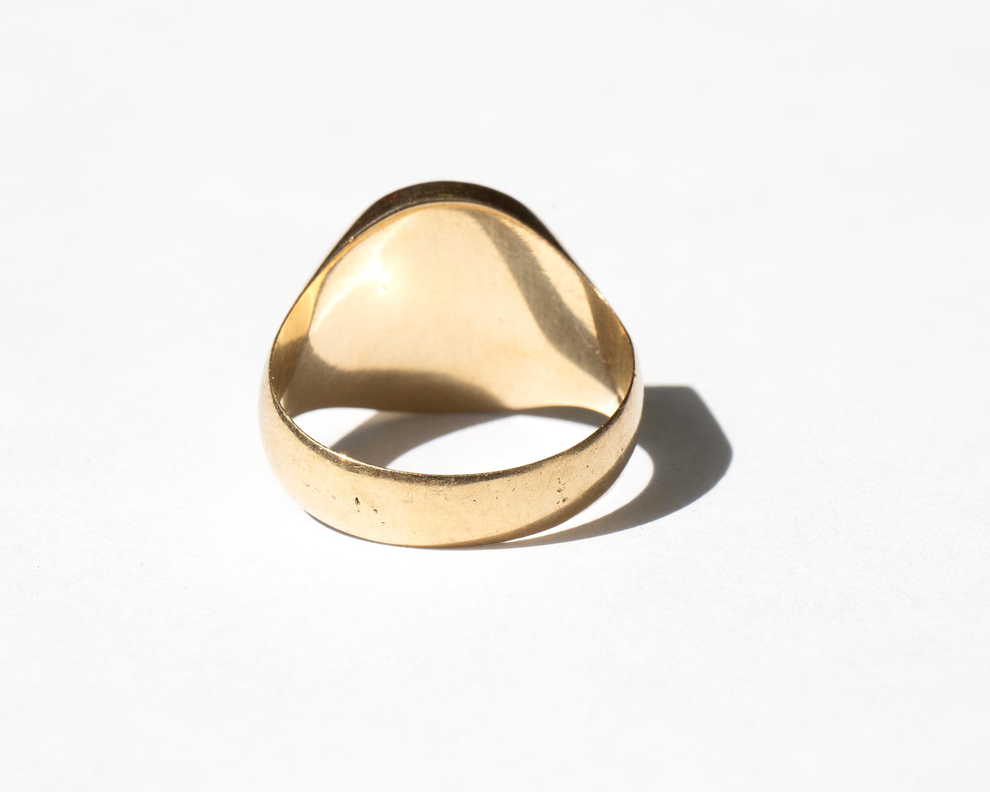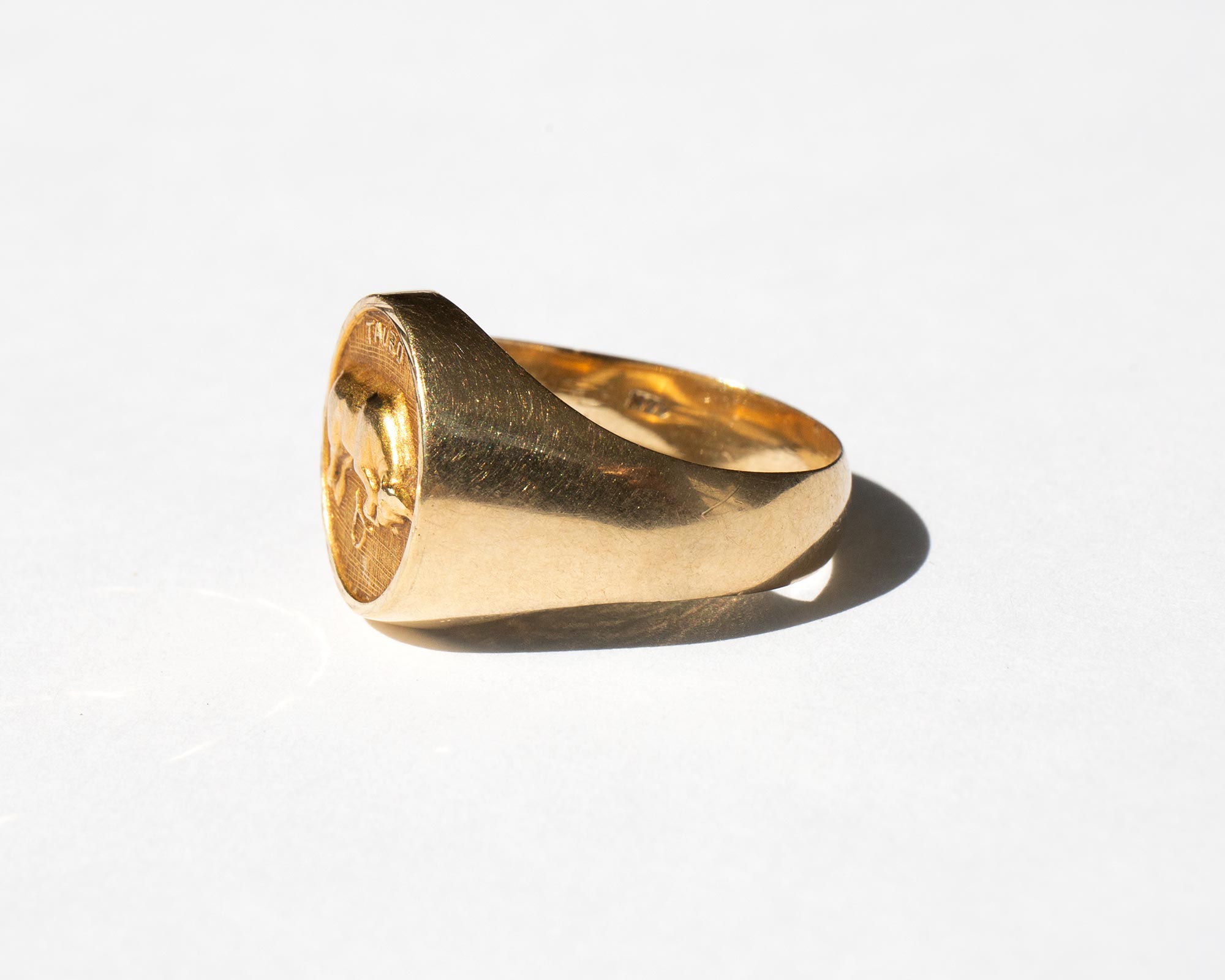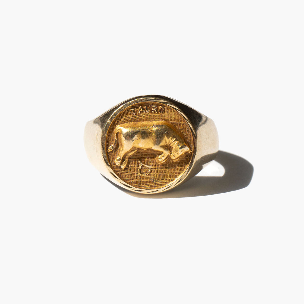 Signet-style 14k gold Taurus zodiac ring from the 1960s.