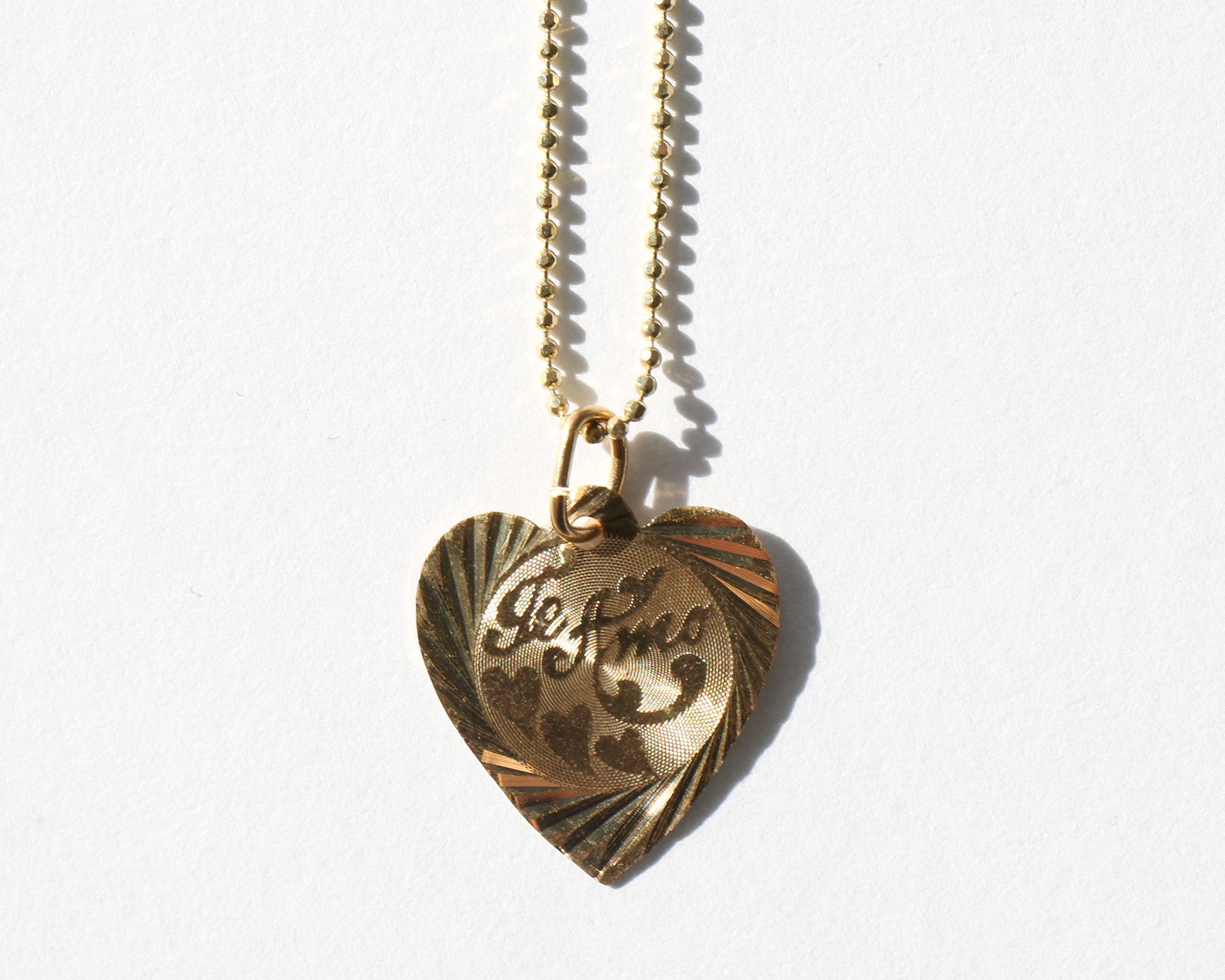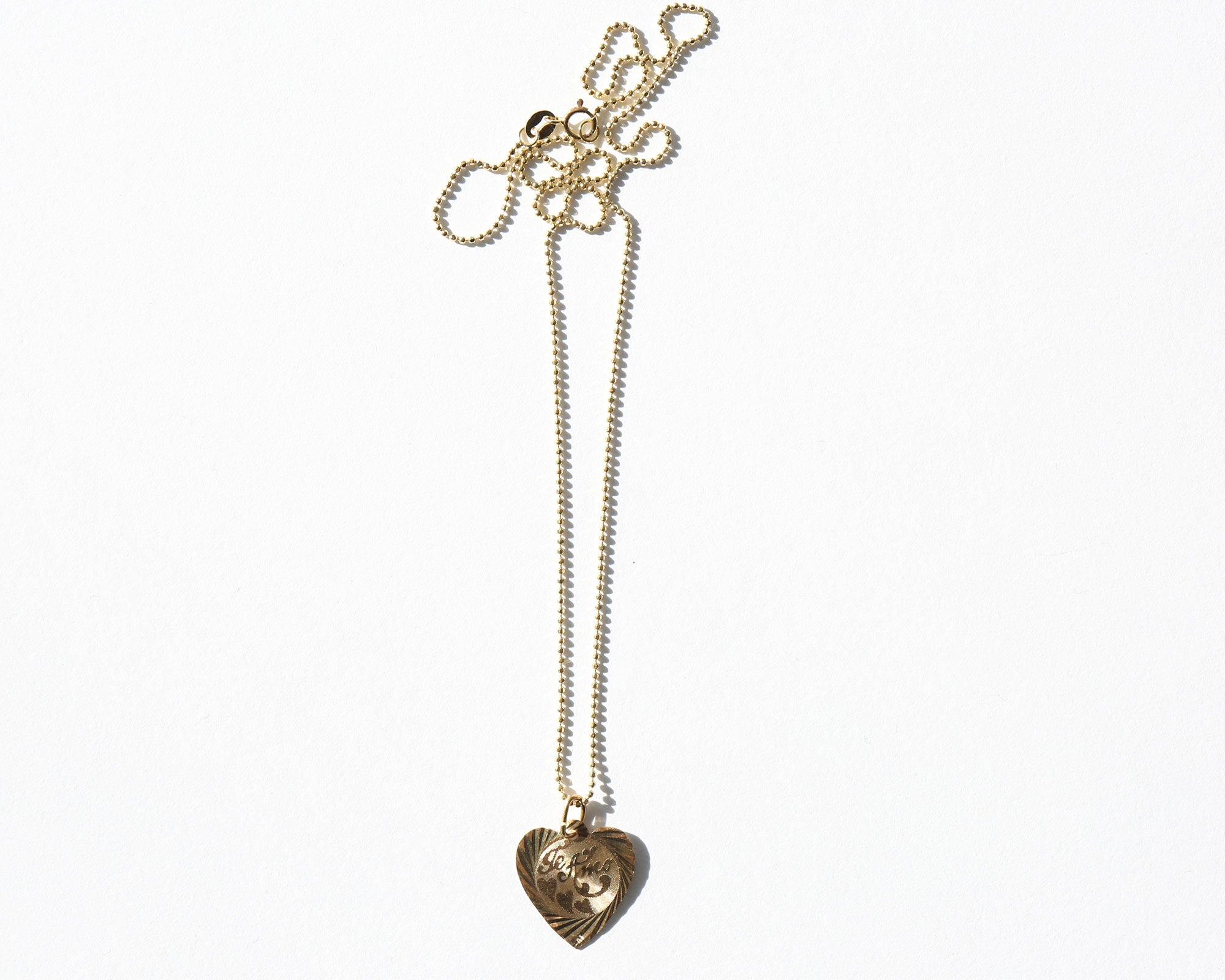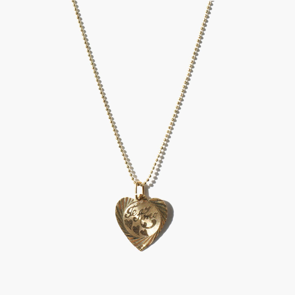 Charming 10k gold "Te Amo" charm on a 14k gold choker length ball chain.
