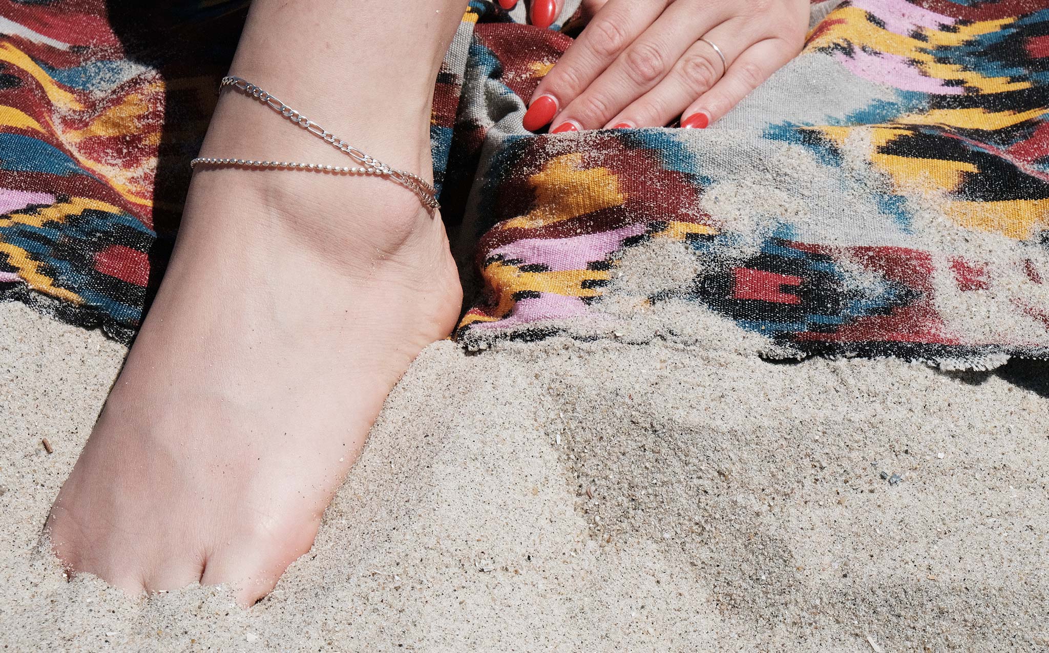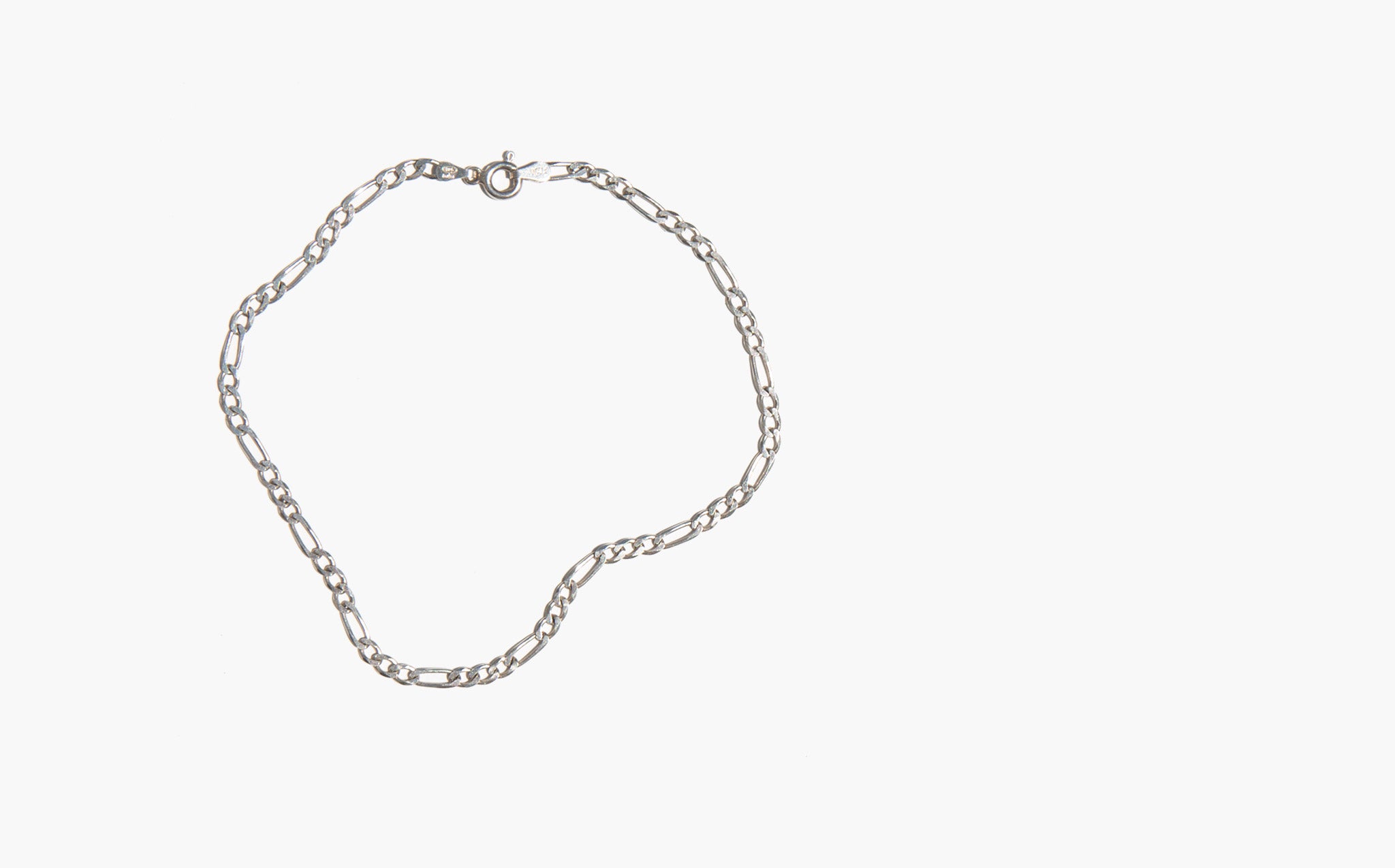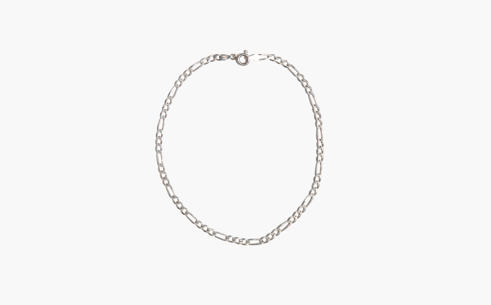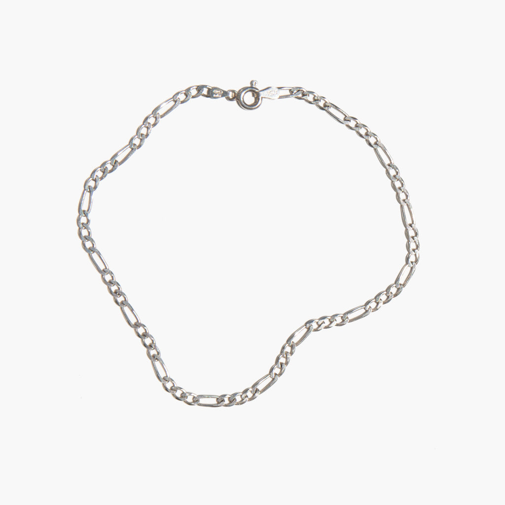 Simple sterling silver figaro chain anklet.