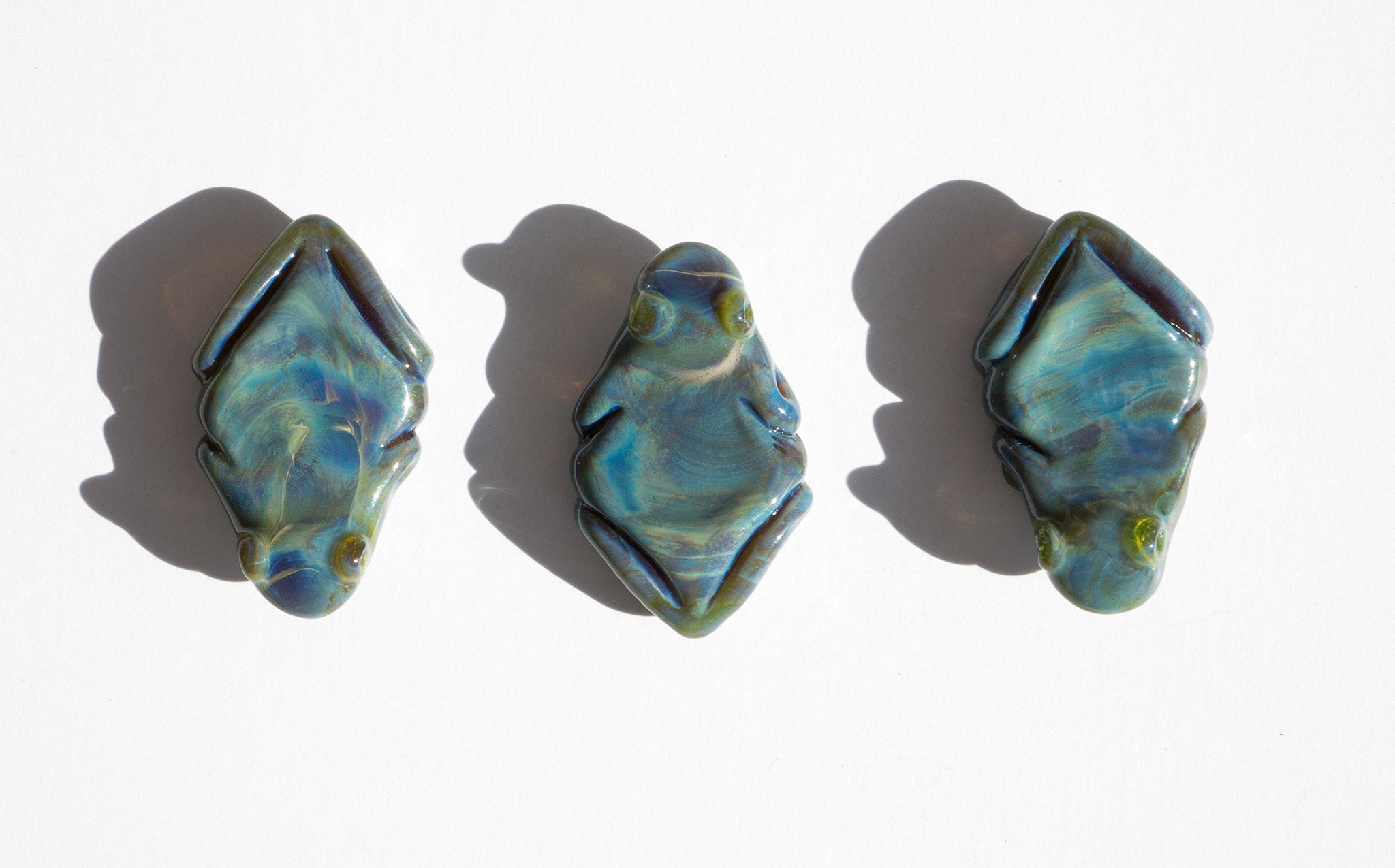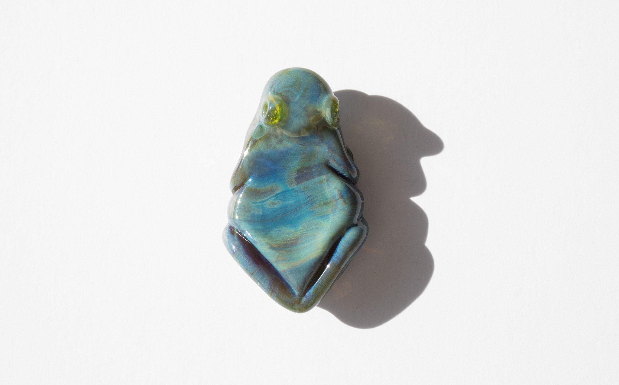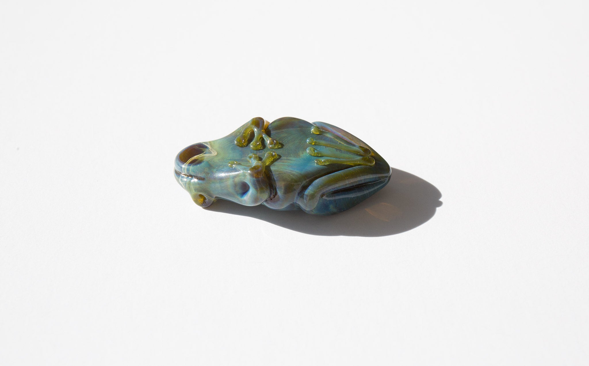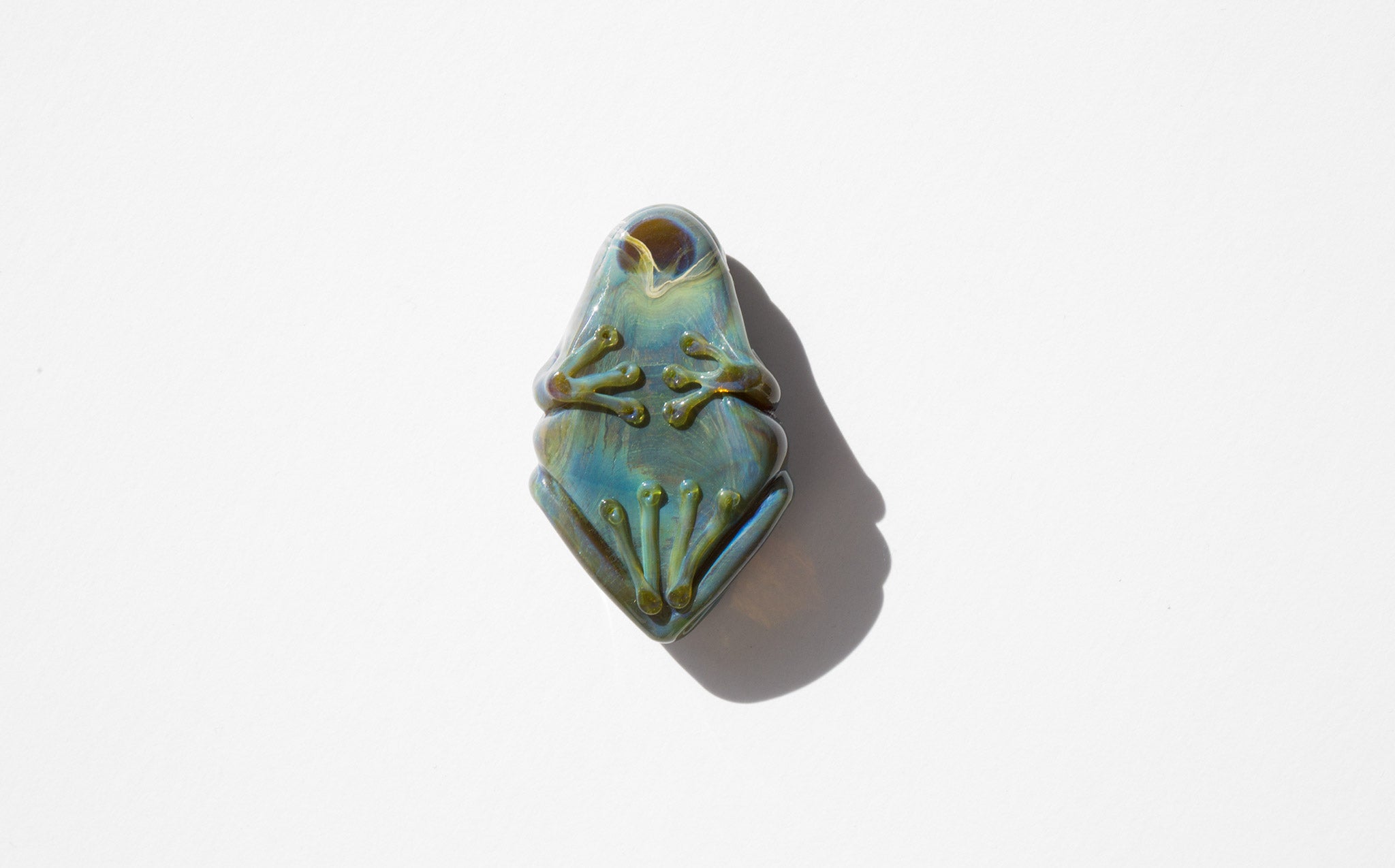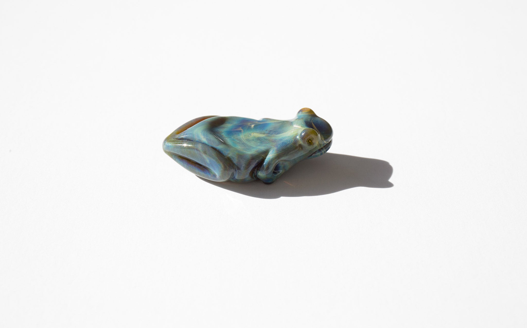 Swirled glass frog talisman hand blow in the USA.