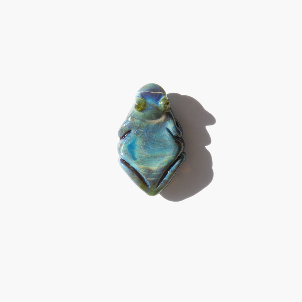 The frog has long been linked with spring and transformations because of its association with birth and rebirth. The origins can be traced back as far as Ancient Egypt where millions of frogs were born after the annual flooding of the Nile. As the only significant source of water in what was otherwise a desert, the flooding fertilized the lands surrounding the river and made agriculture and development possible. Thus the frog came to be correlated with life, abundance, and fertility. In China the frog has been a symbol of good luck since ancient times and Feng Shui practices recommend putting the image of a frog in an east facing window to encourage childbirth and a happy home. Also a good luck symbol in Japan, the frog is specifically associated with luck in travel on long voyages. Travelers carry a small frog amulet as protection and to insure a safe return home. A talisman of good fortune and prosperity in many cultures throughout the millennia, The Abundant Amphibian is hand blown in the US by a master glass artisan.