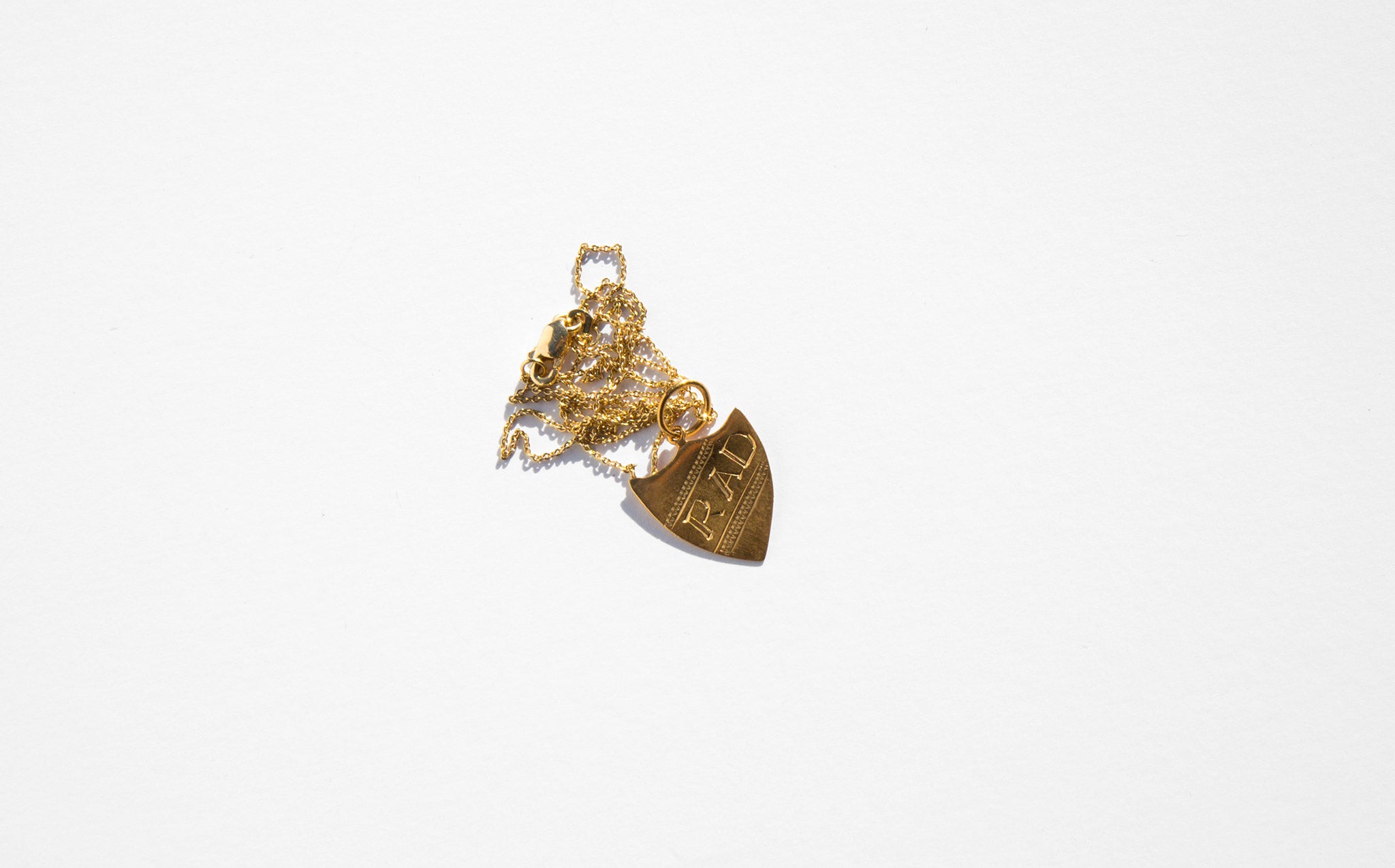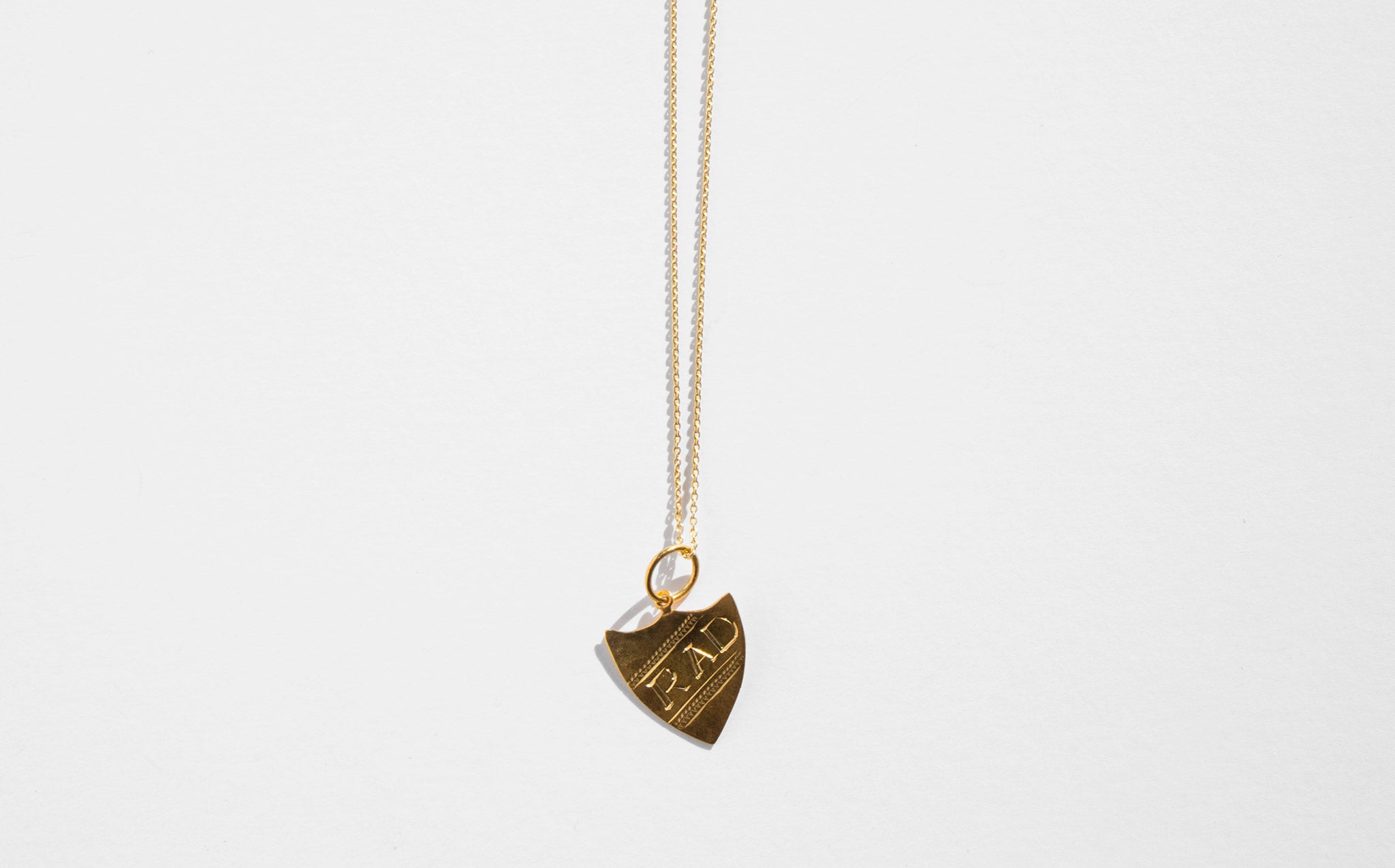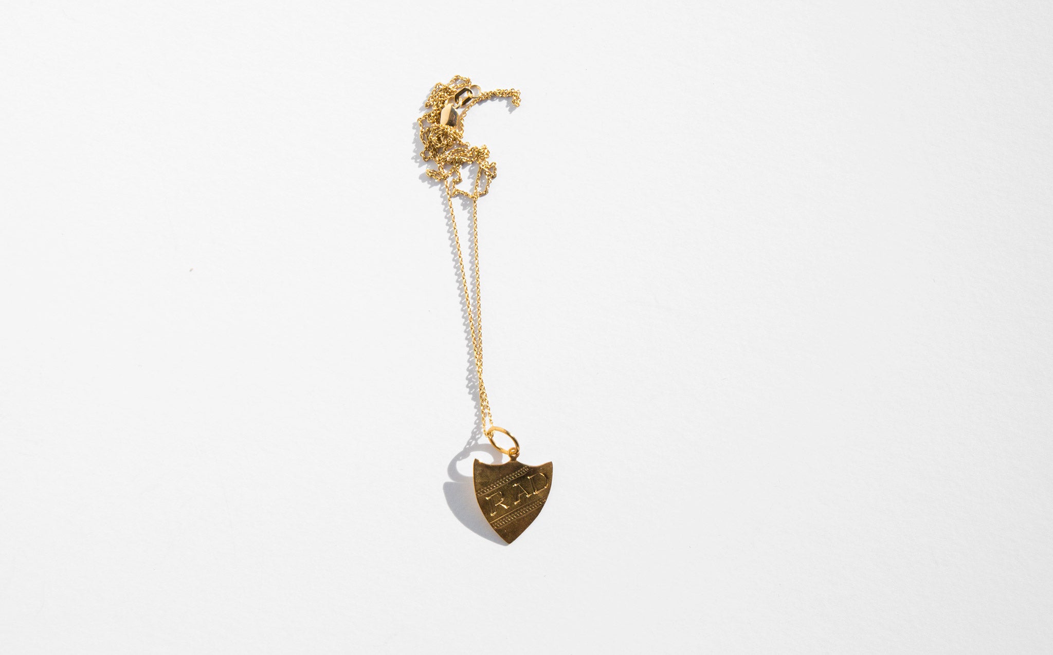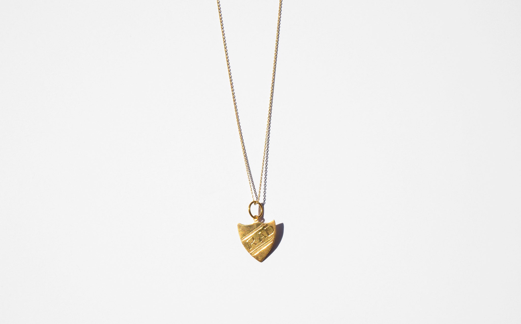Antique 14k gold shield shaped charms inscribed with RAD.