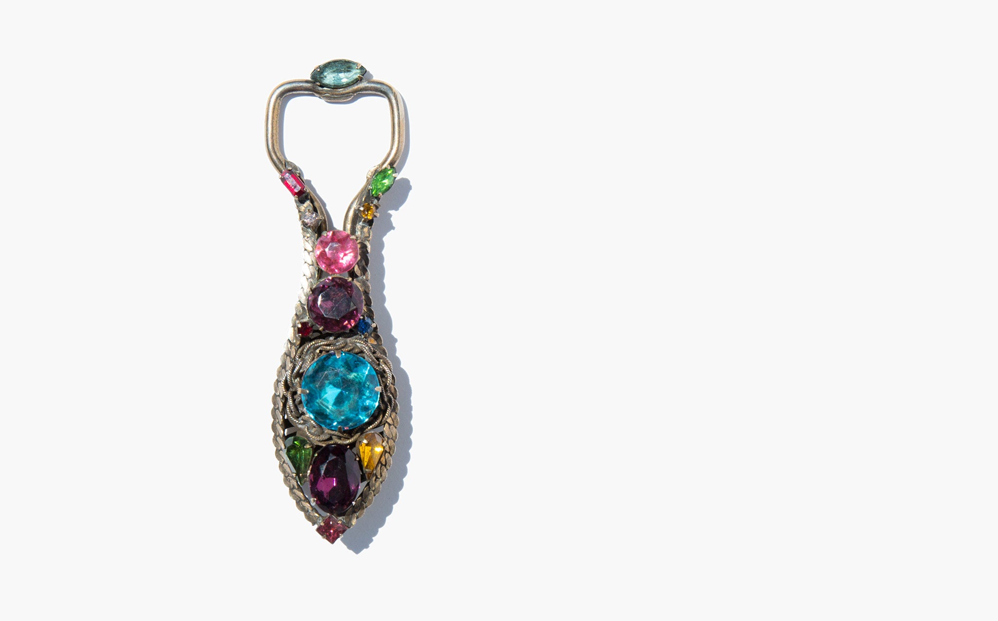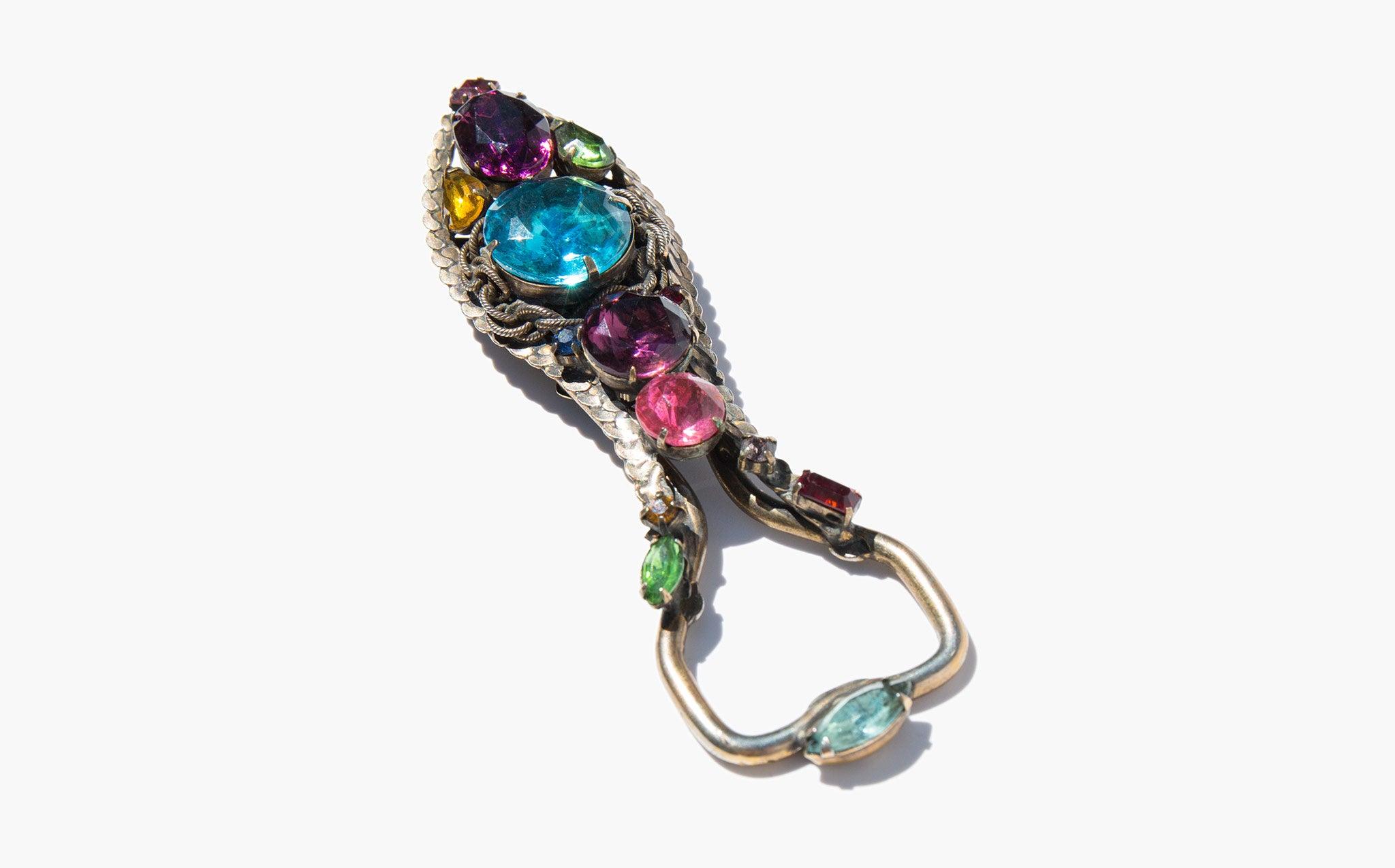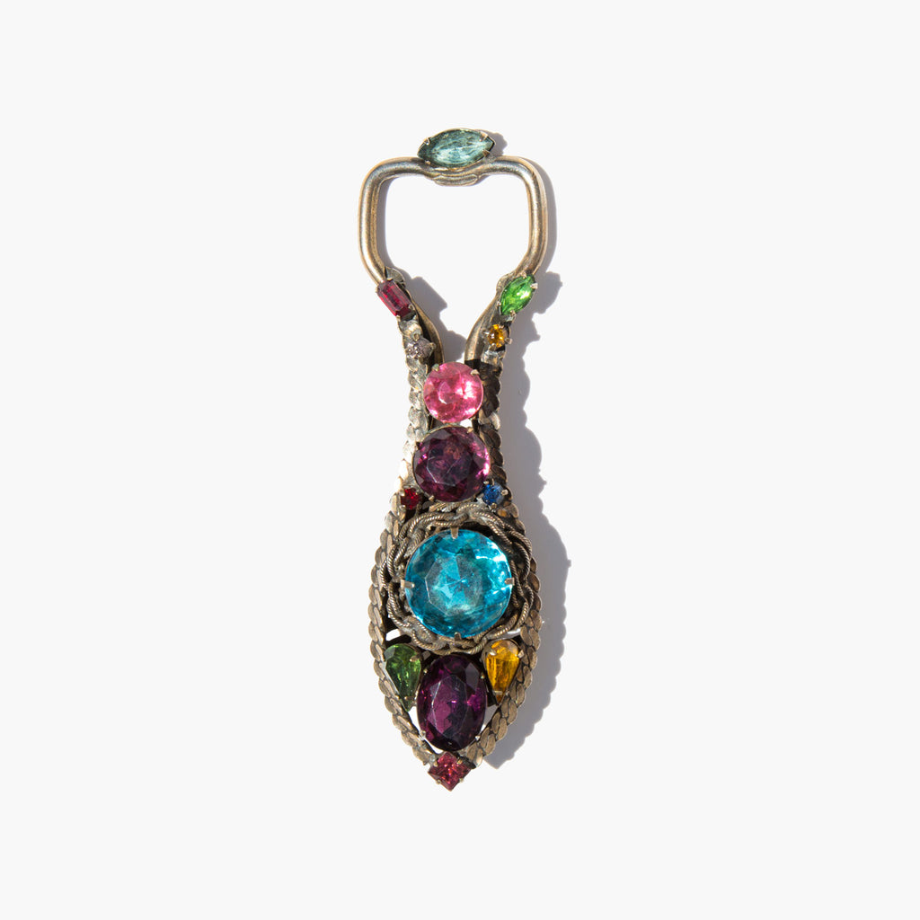 The most fantastic thing you never knew you needed - vintage bottle opener decorated with large jewel toned rhinestones.