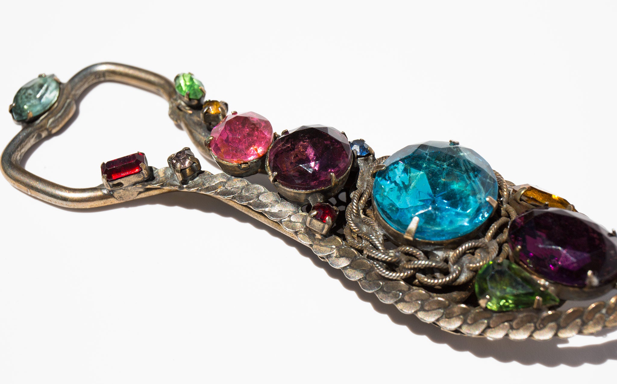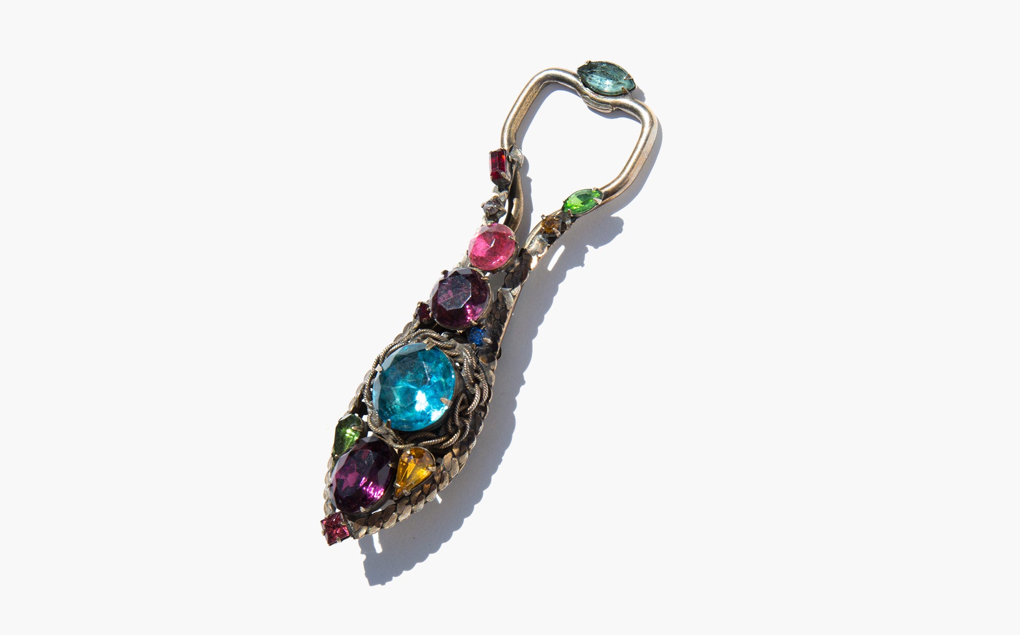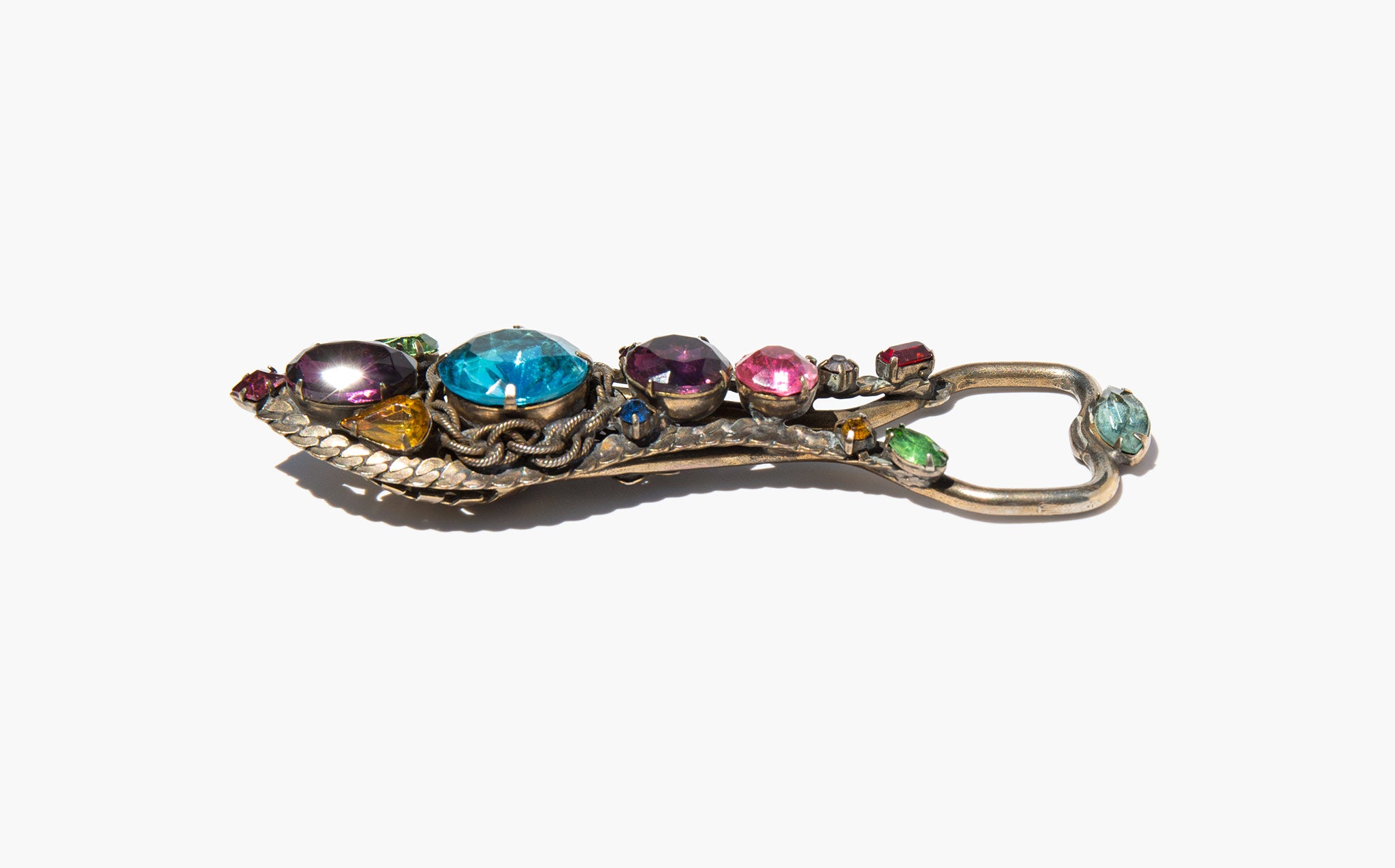 The most fantastic thing you never knew you needed - vintage bottle opener decorated with large jewel toned rhinestones.