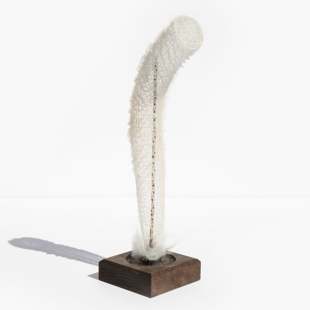 A mounted Venus's Flower Basket, a tube-shaped deep sea sponge skeleton made of natural silica, the main component in glass. This intricate and delicate structure is typically a house for two tiny, young shrimp who as they grow, can no longer fit through the holes and become life partners in the sponge. A prized curio piece and a symbol of everlasting fidelity to a partner.