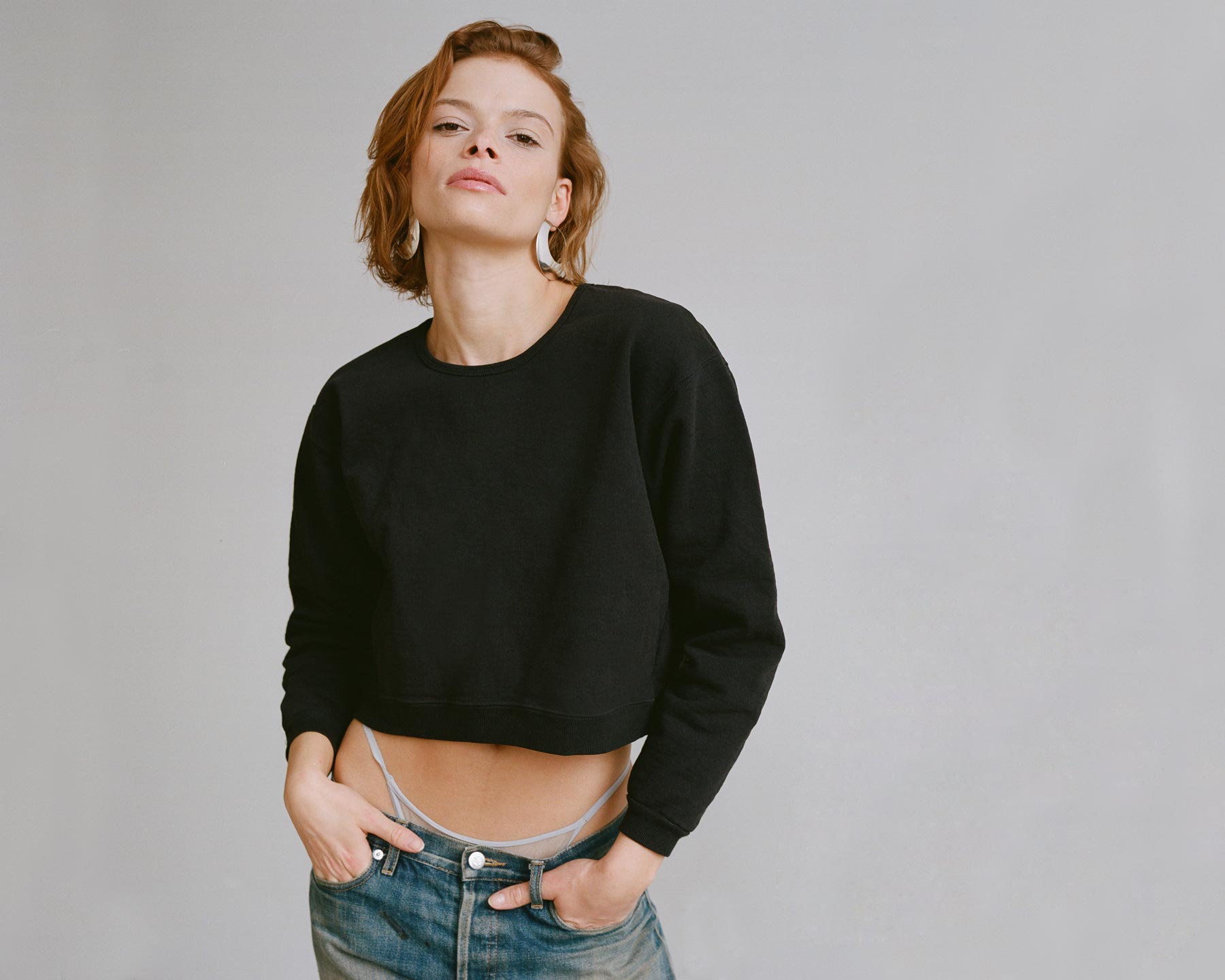 Originally invented by a football player fed up with itchy wool jerseys, the classic sweatshirt gets its name from its roots on a playing field. Made and remade tirelessly over the years, we kept it simple – a classic fit with a modern crop, perfect for everything from high-waisted pants to pencil skirts.