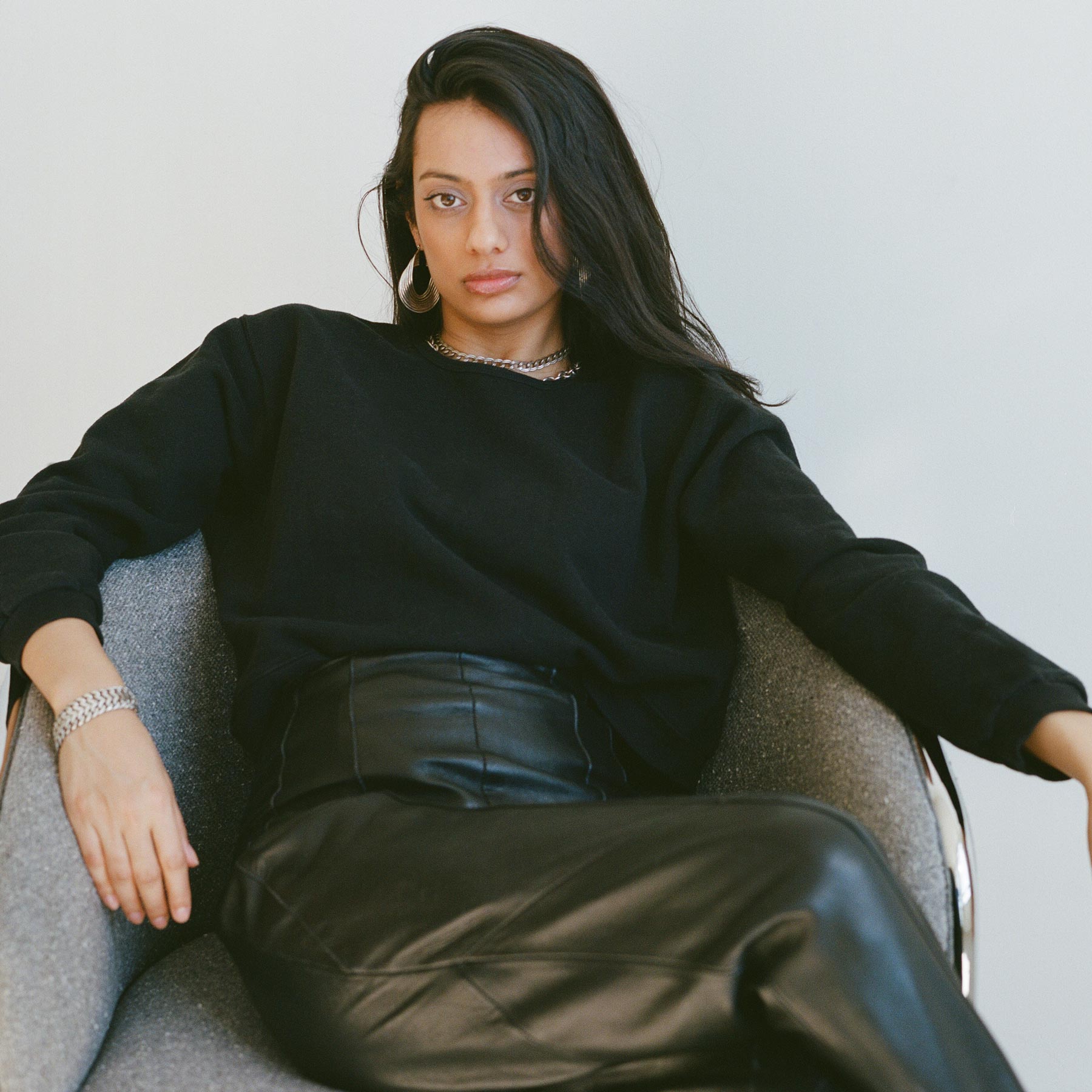 A relaxed box-fit sweatshirt in a flattering waist-cropped length. Made in a luxurious and thick deadstock cotton fleece.