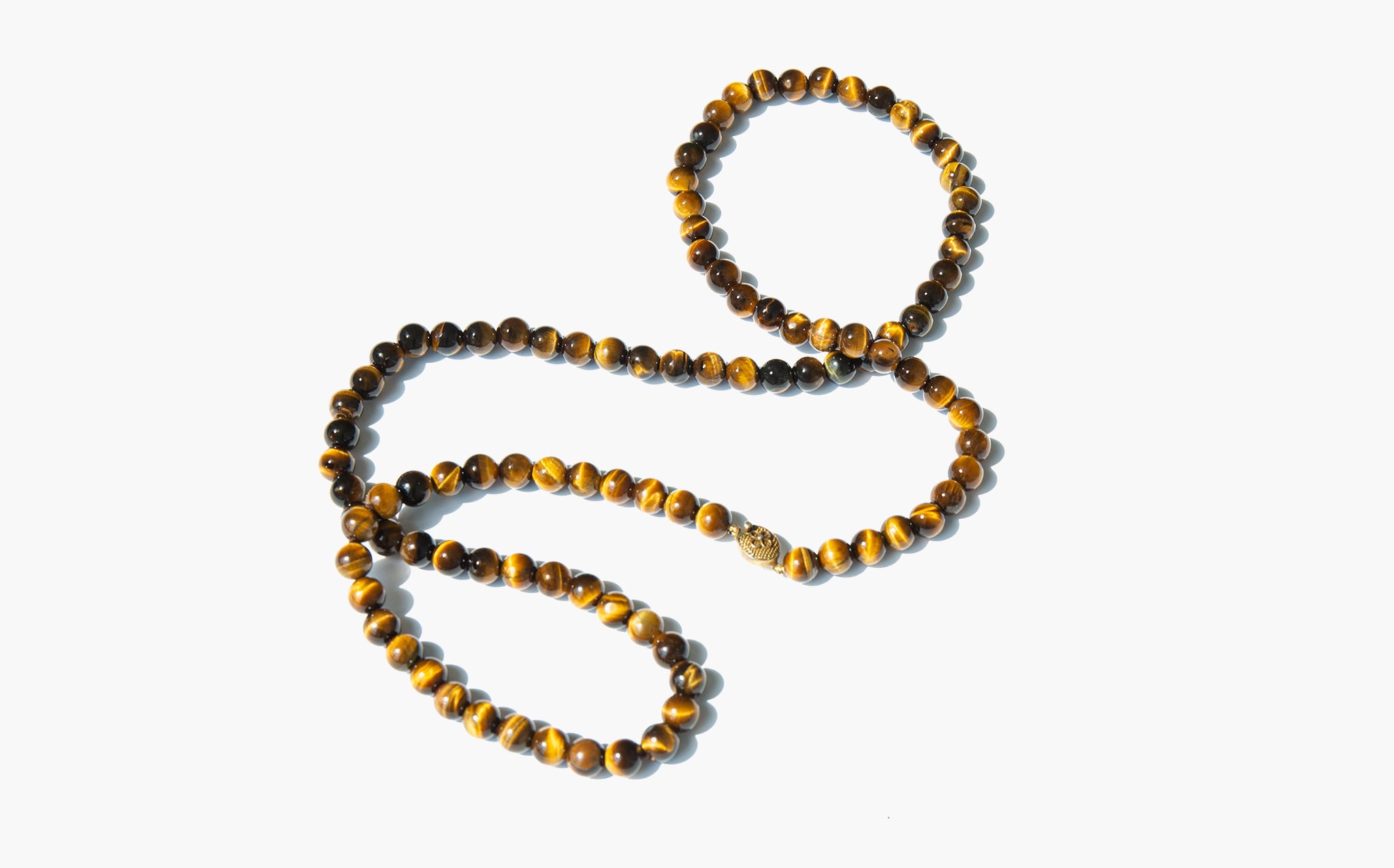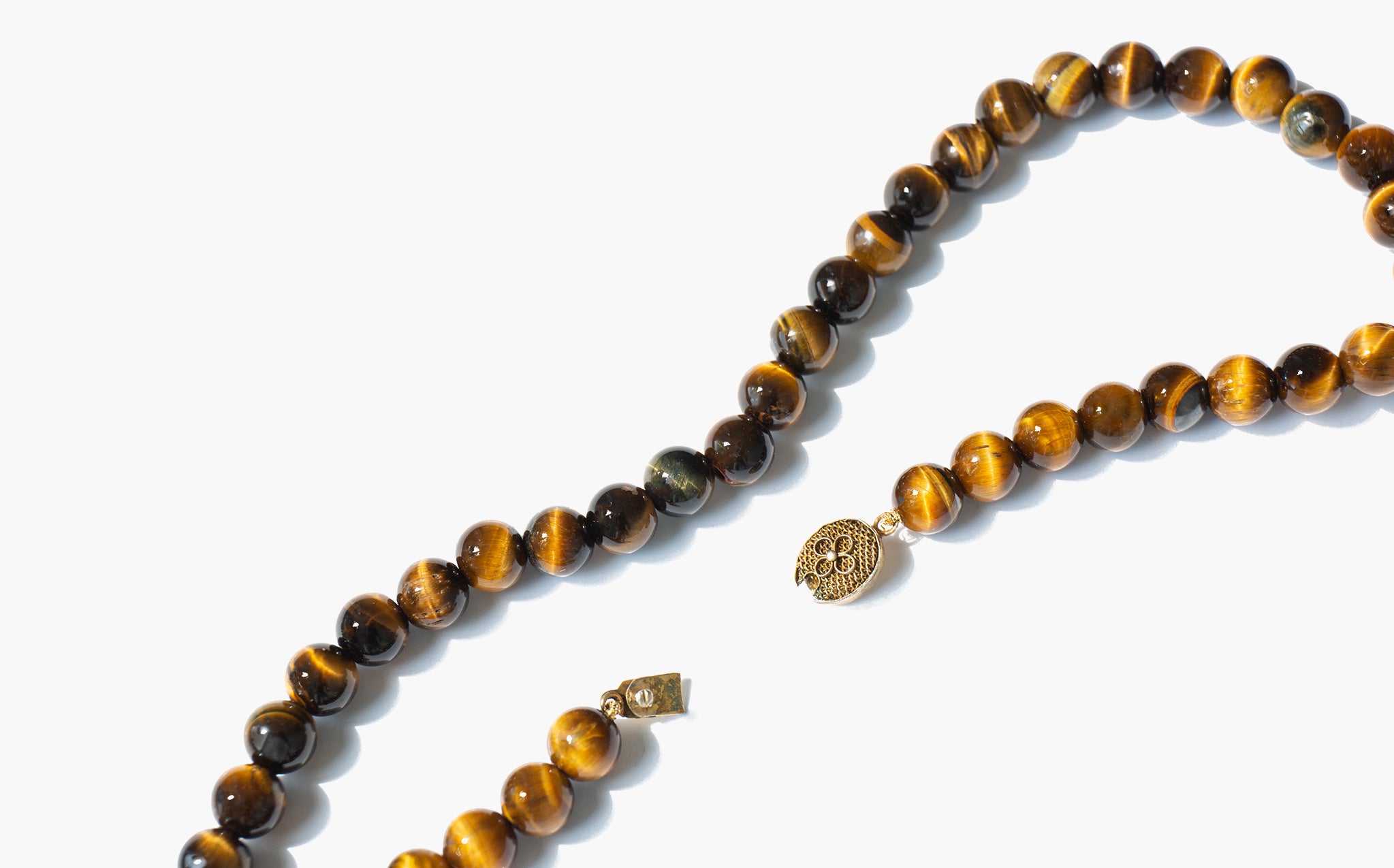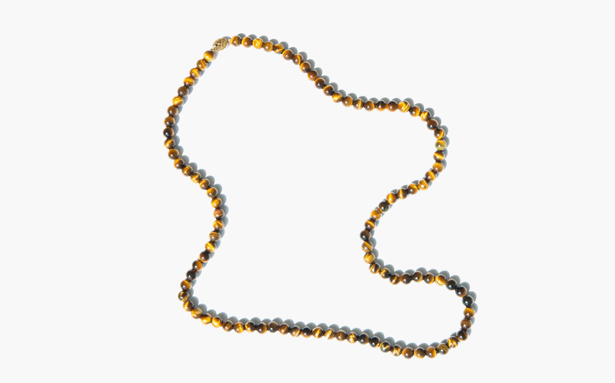 Brilliantly mottled tiger's eye beads with a gold tone silver clasp. An amazing layering piece that can be doubled and worn shorter.