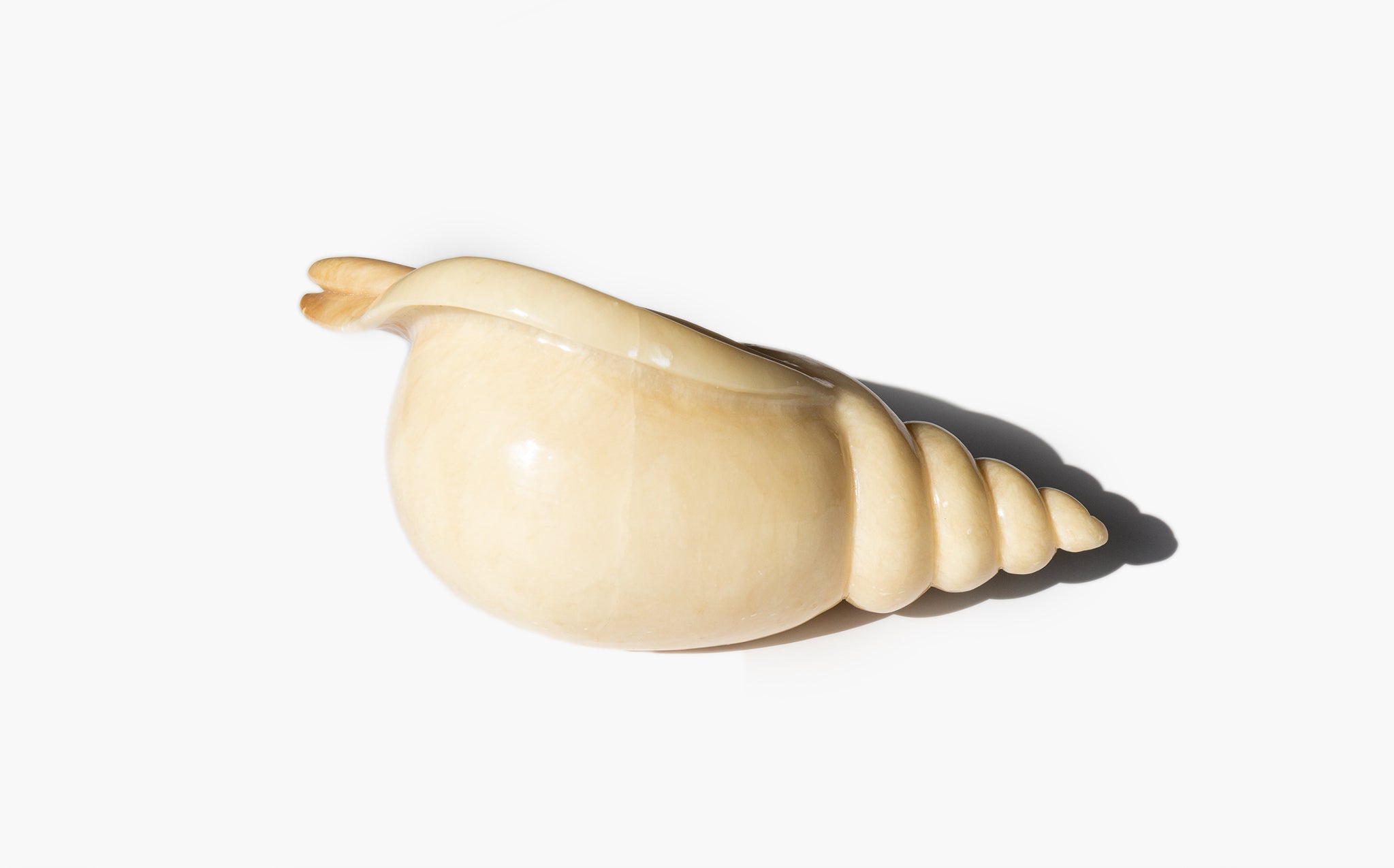 Beautiful conch sculpture, hand carved from a solid piece of alabaster.