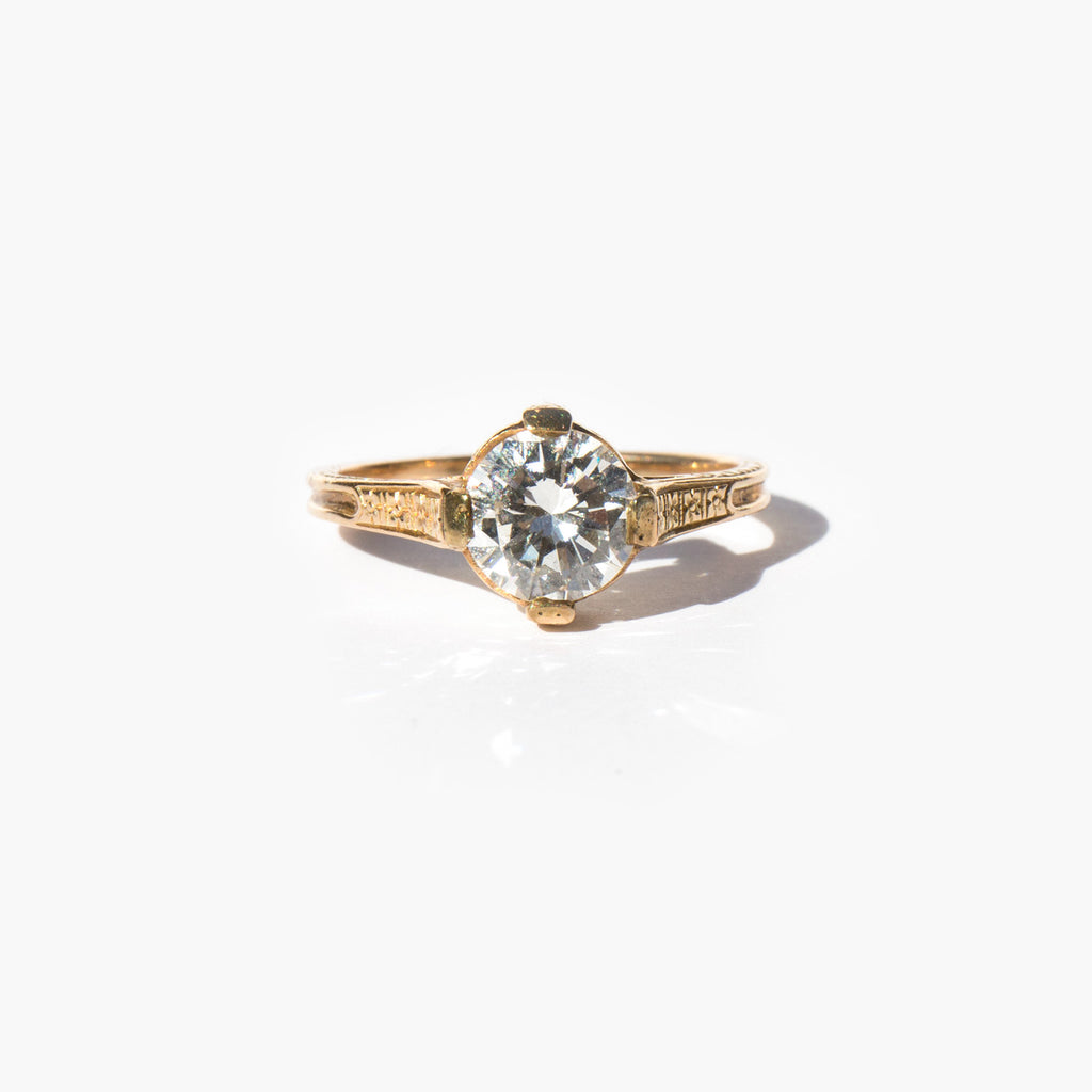 Magnificent, detailed 14k gold antique setting with 1.3 ct diamond.