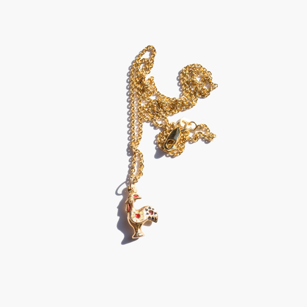 Stand tall and use your voice - the rooster is a power animal that calls upon reserves of confidence and indomitable spirit. Tiny 14k gold rooster charm with enamel accenting on a 14k gold link choker.