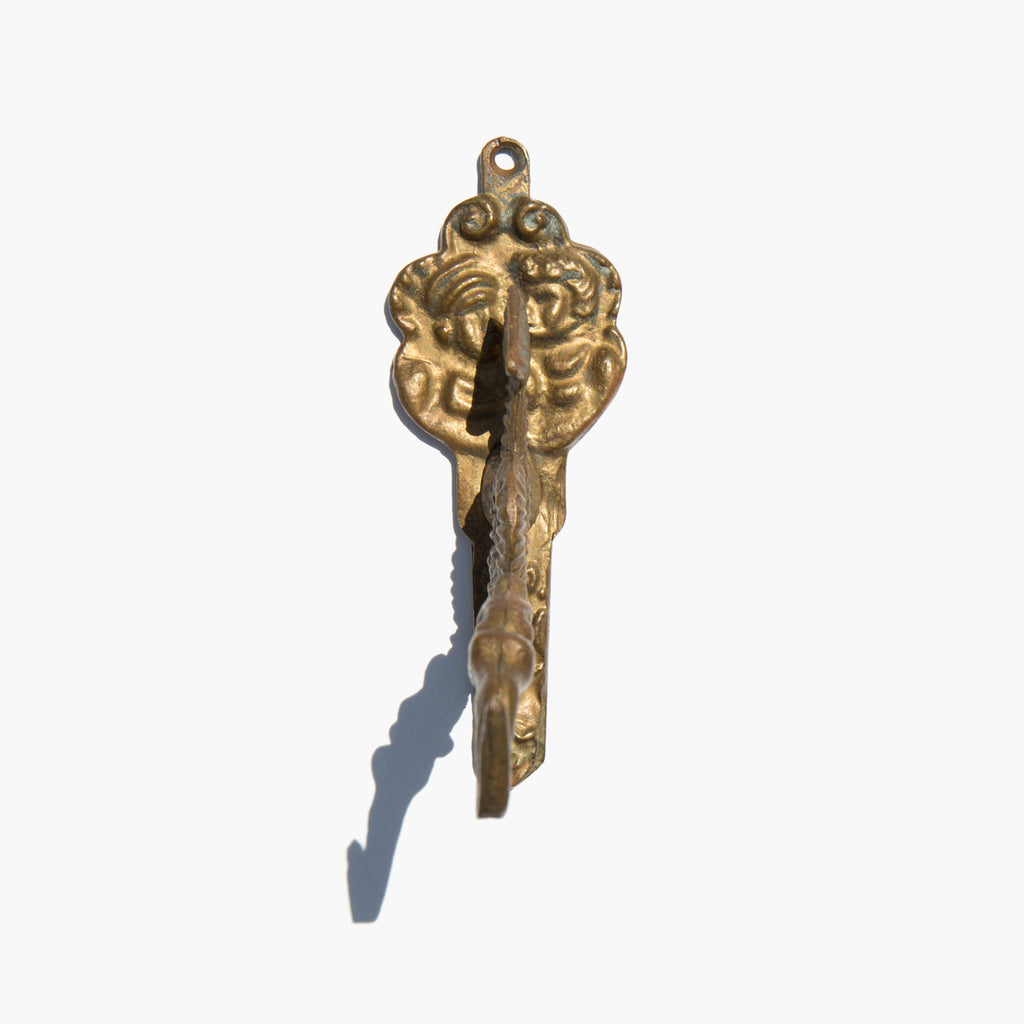 Vintage brass wall hook depicting a kissing mer-couple and a strange sea creature.