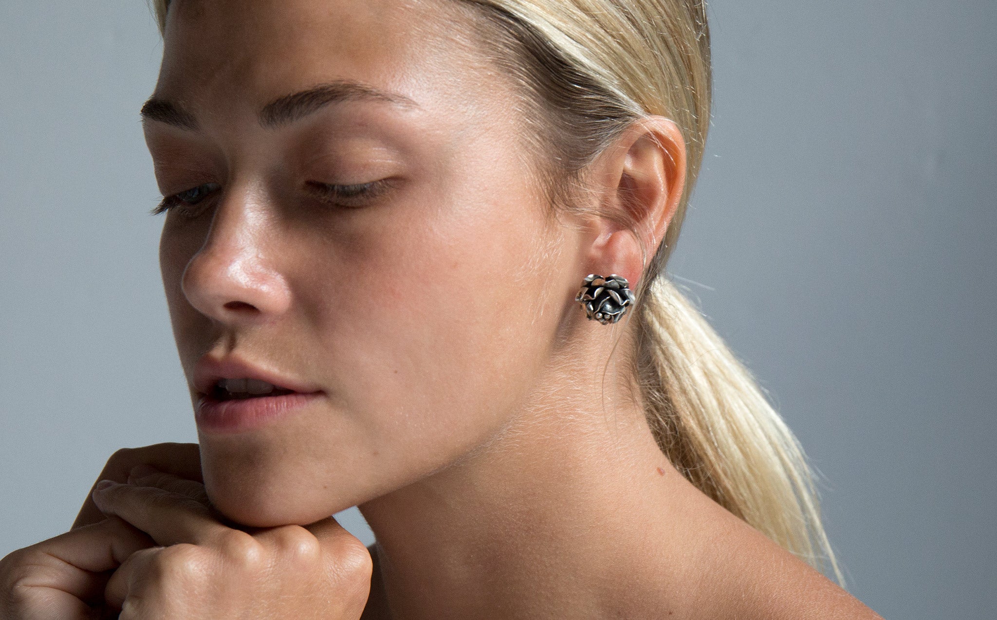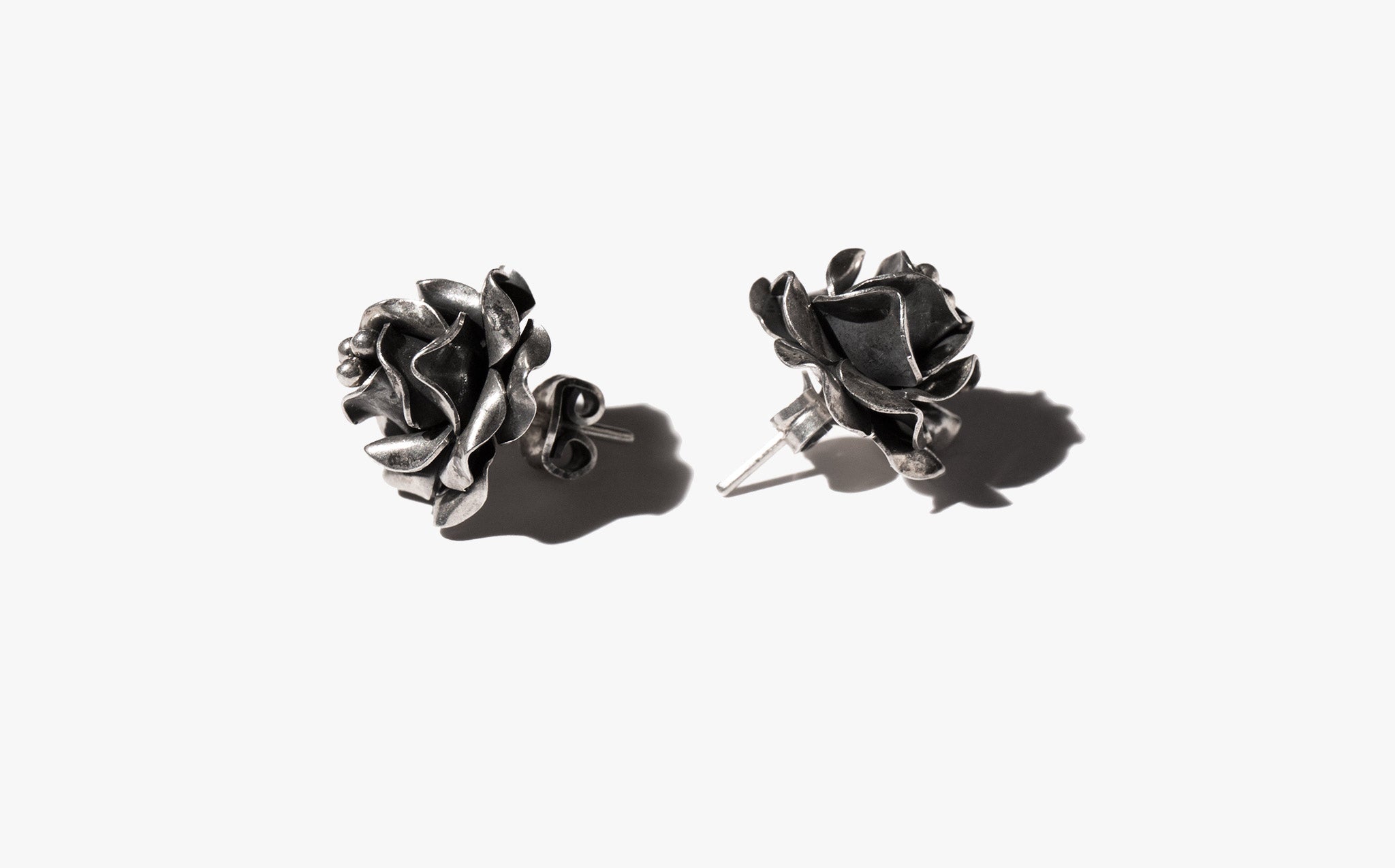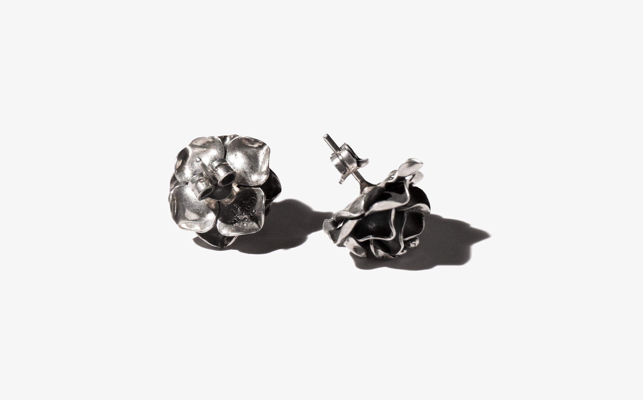 Sterling silver rosebud shaped earrings.