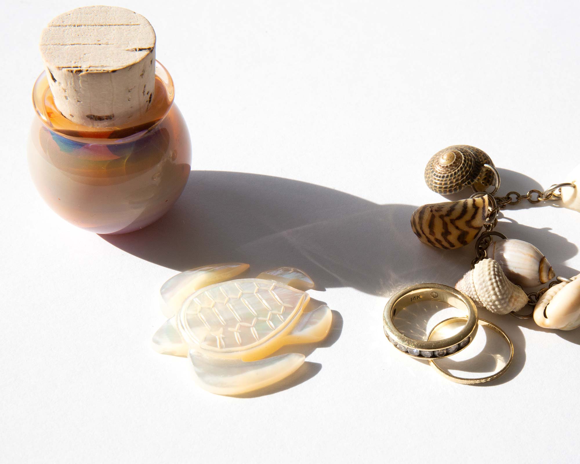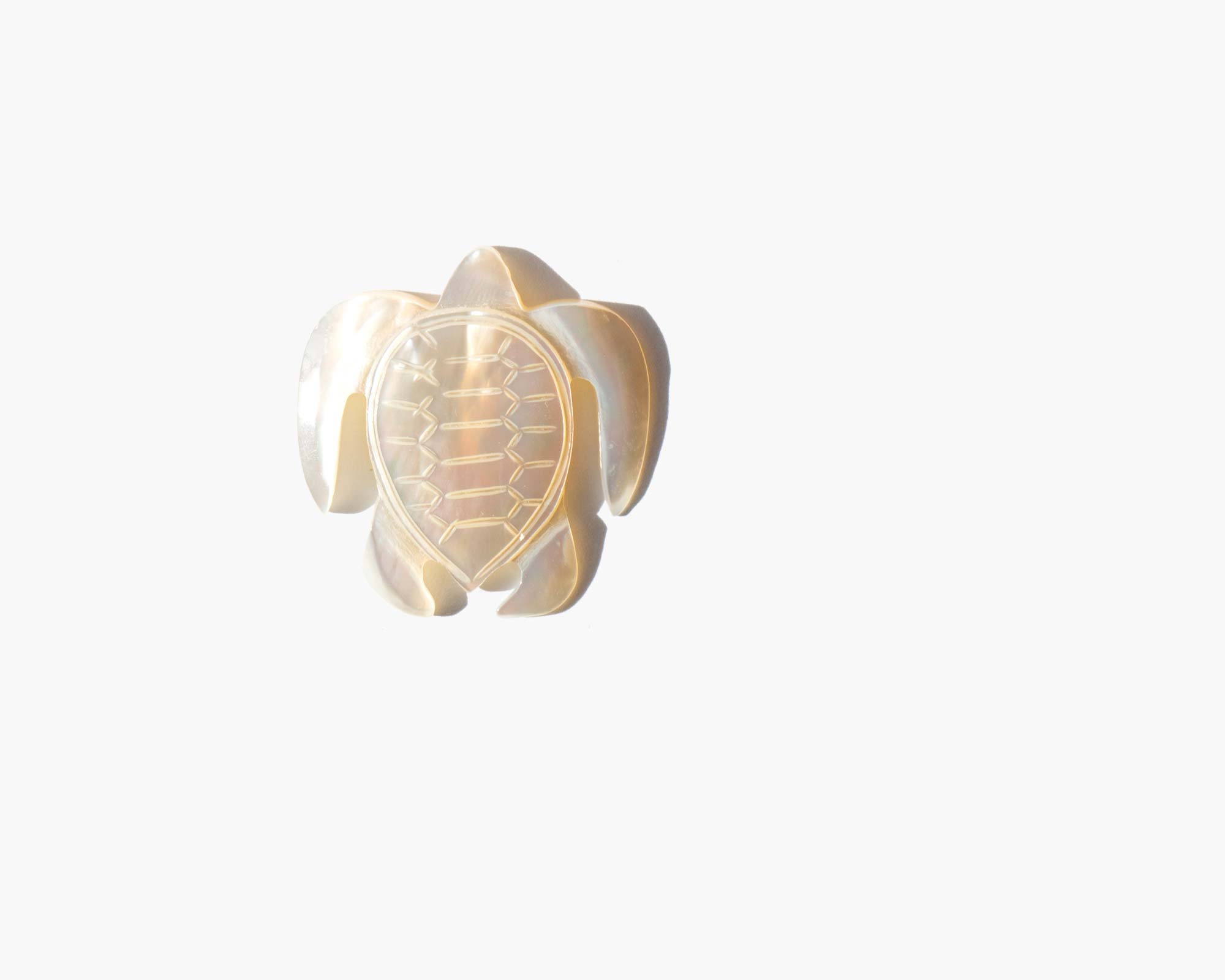 Mother of pearl sea turtle talisman. Turtles are symbols of Mother Earth and represent her abundance and fertility. This sweet spirit animal is also a helpful guide for practicing self-control through challenging times and is a symbol of good health, a long life, and the determination to slowly and steadily achieve one's goals.