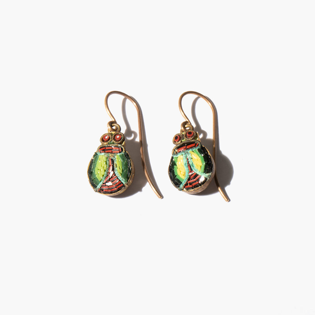 Antique micro mosaic scarab earrings on 14k gold wires.