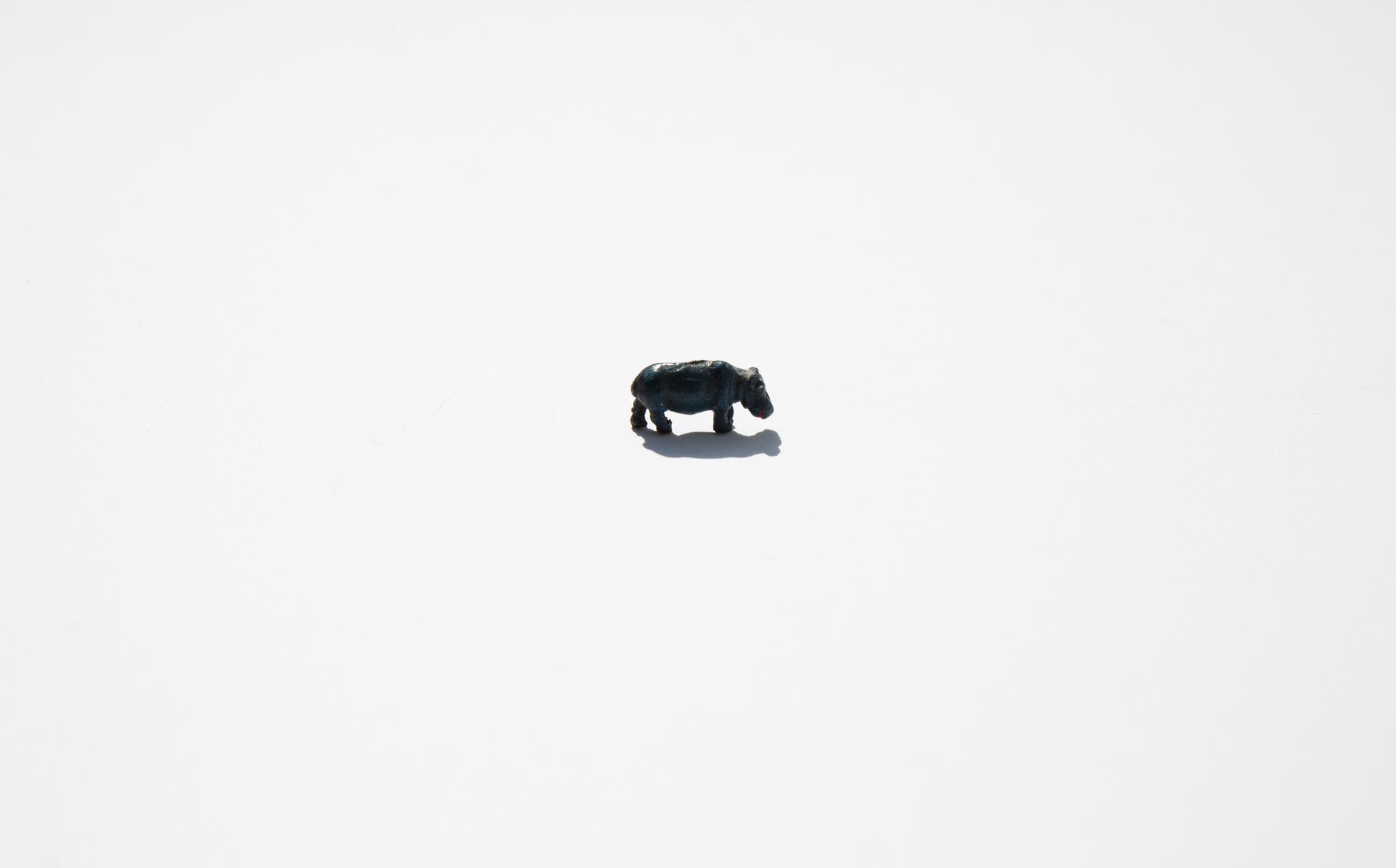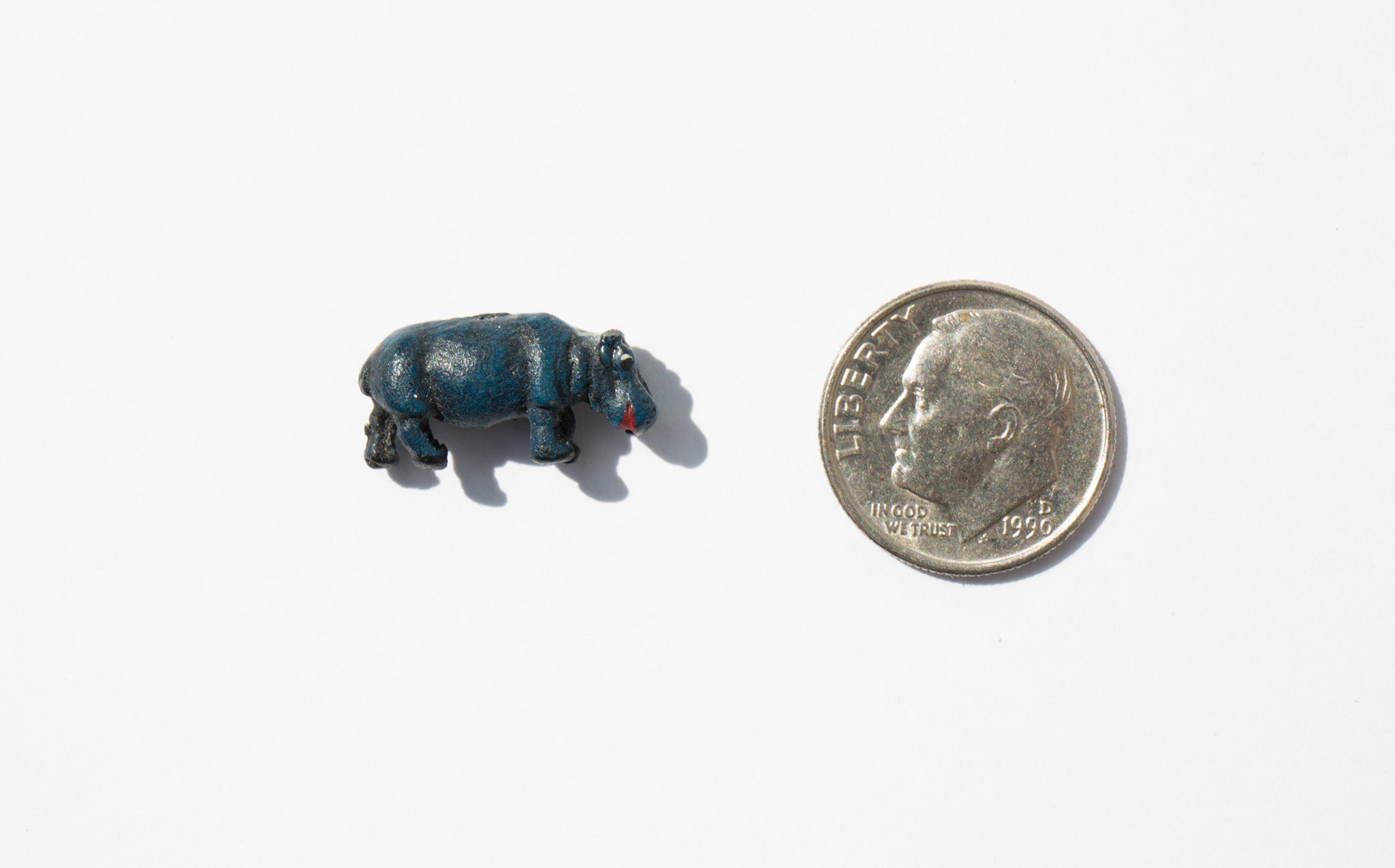 Teeny, tiny hand painted hippo. In Ancient Greek hippopotamus translates to "river horse" and since ancient times the hippo has been associated with life, fertility and motherhood. The Egyptian goddess of fertility, Tauret was represented by a pregnant hippopotamus and because the awesome beasts lived on the Nile, which Egyptians thought of as their source of life, the animal became endowed with the same spiritual meaning.