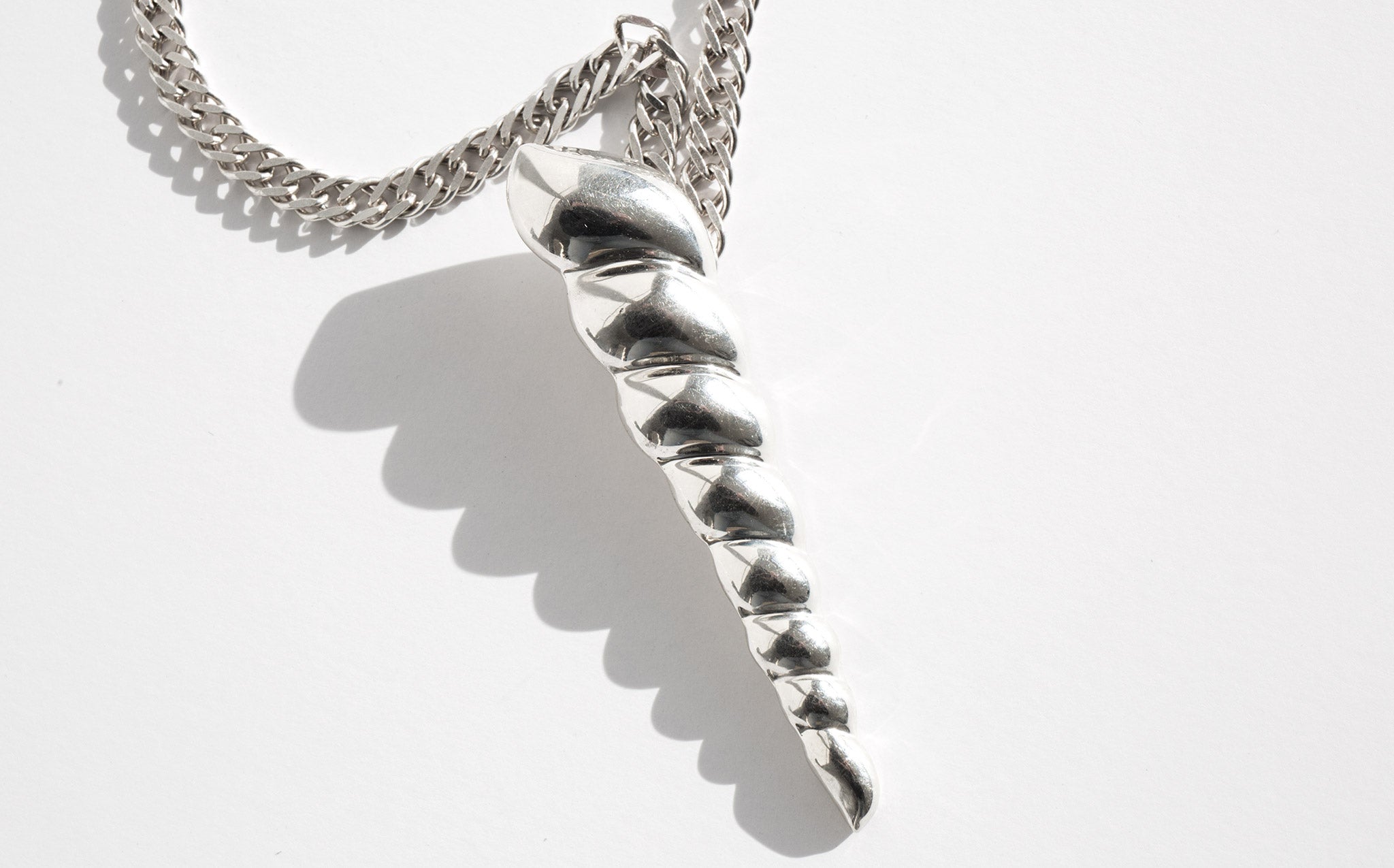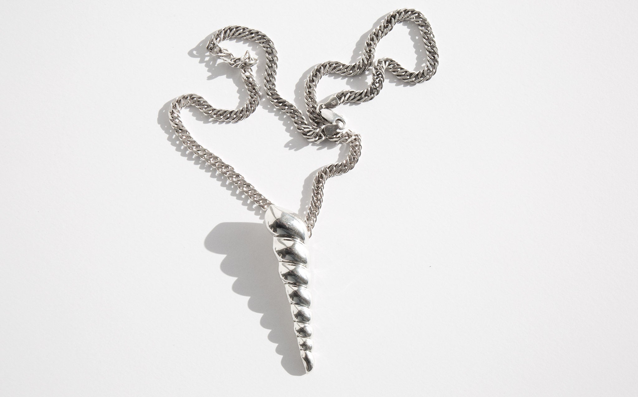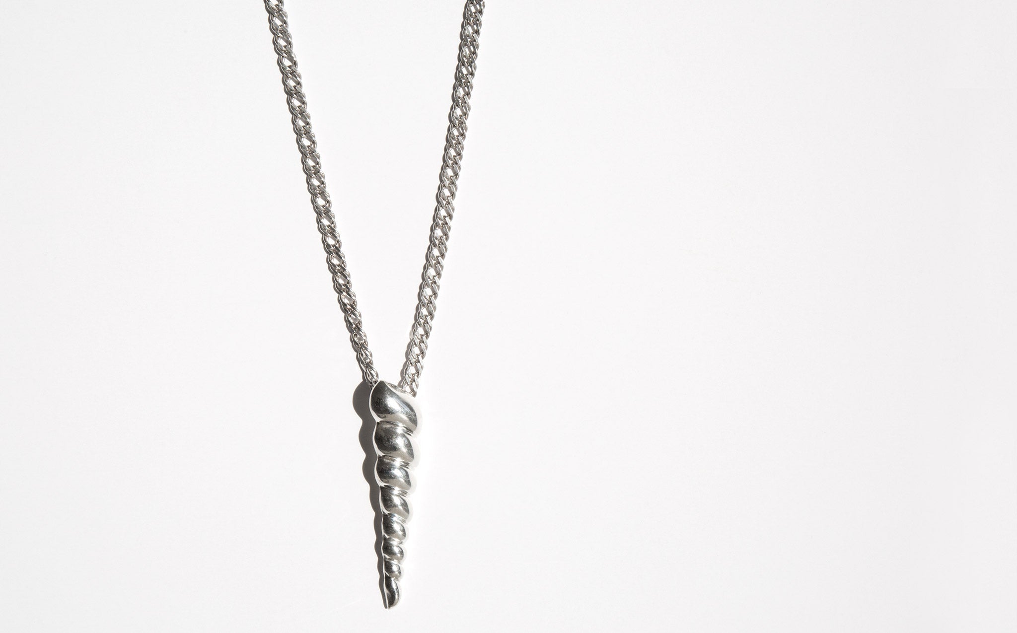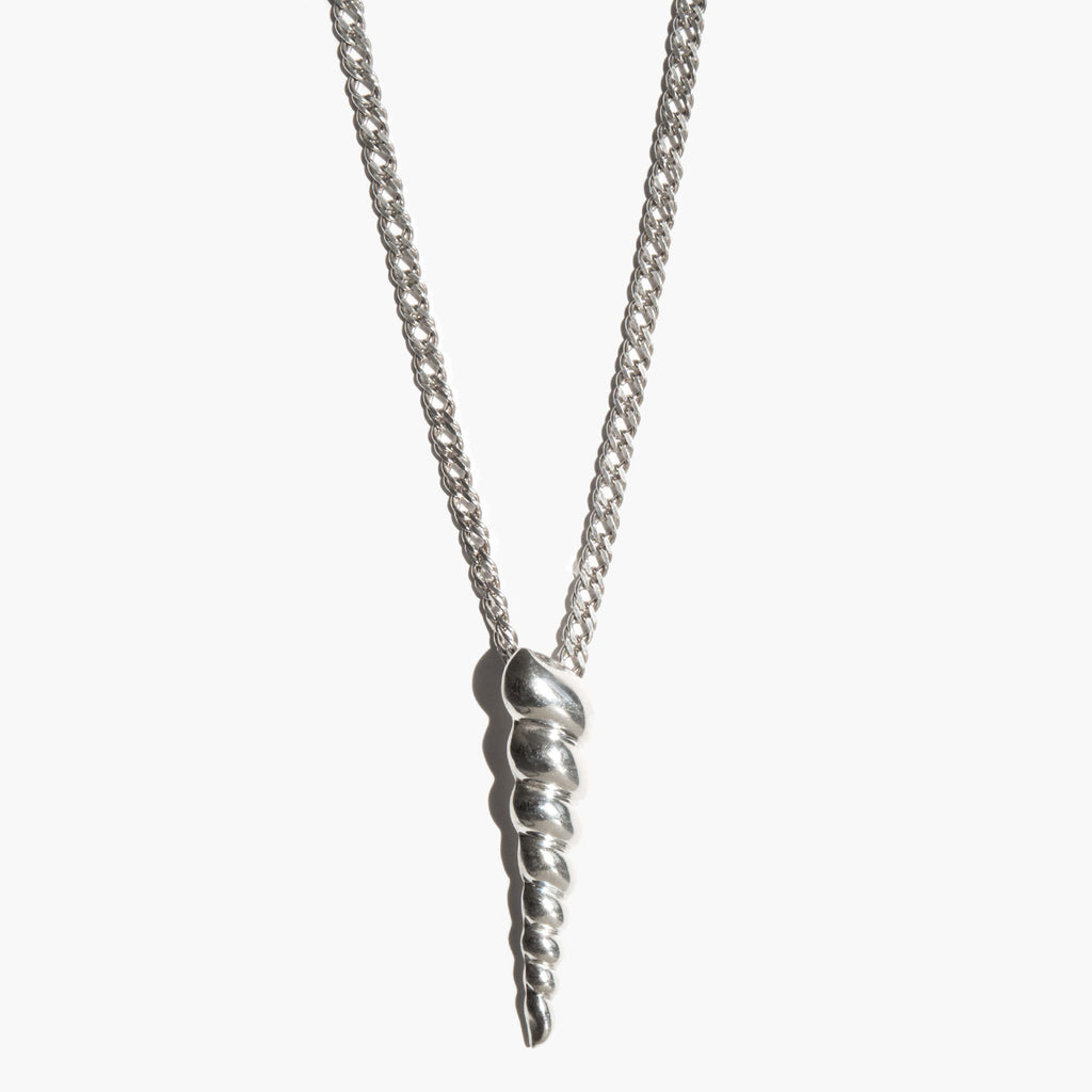 Elegant sterling silver shell pendant on an unusual link sterling silver chain. Shells are ancient symbols of birth, good fortune for life, and resurrection.