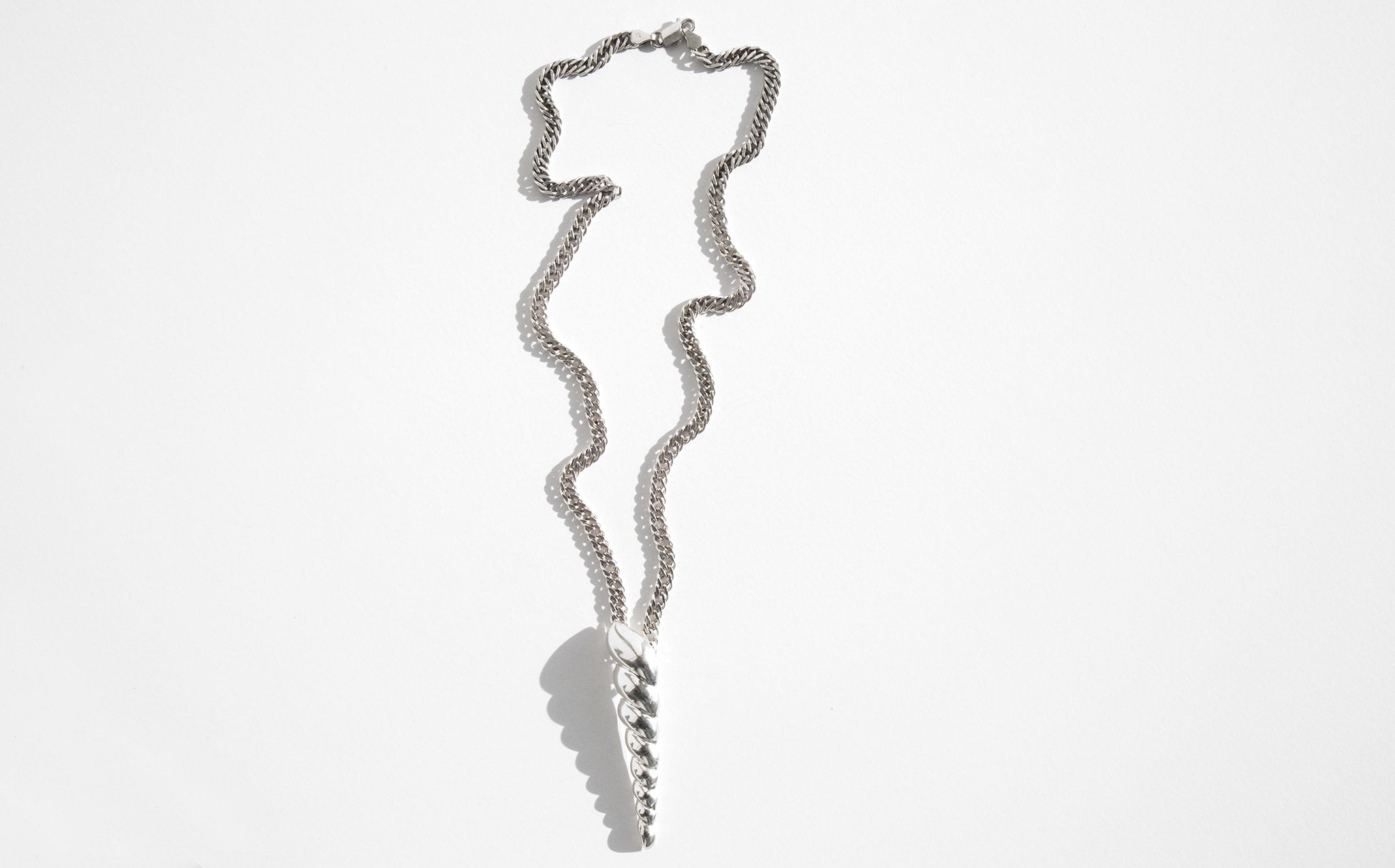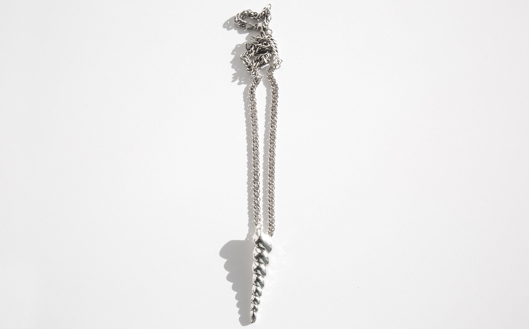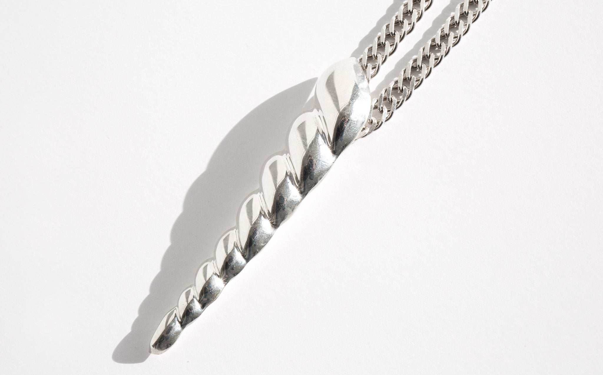 Elegant sterling silver shell pendant on an unusual link sterling silver chain. Shells are ancient symbols of birth, good fortune for life, and resurrection.