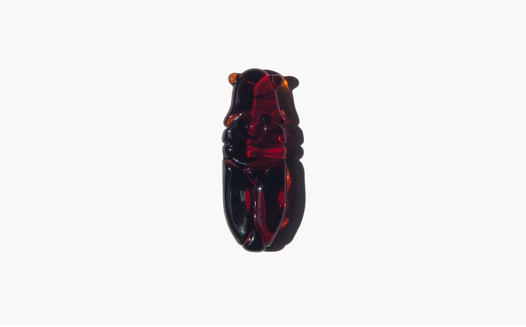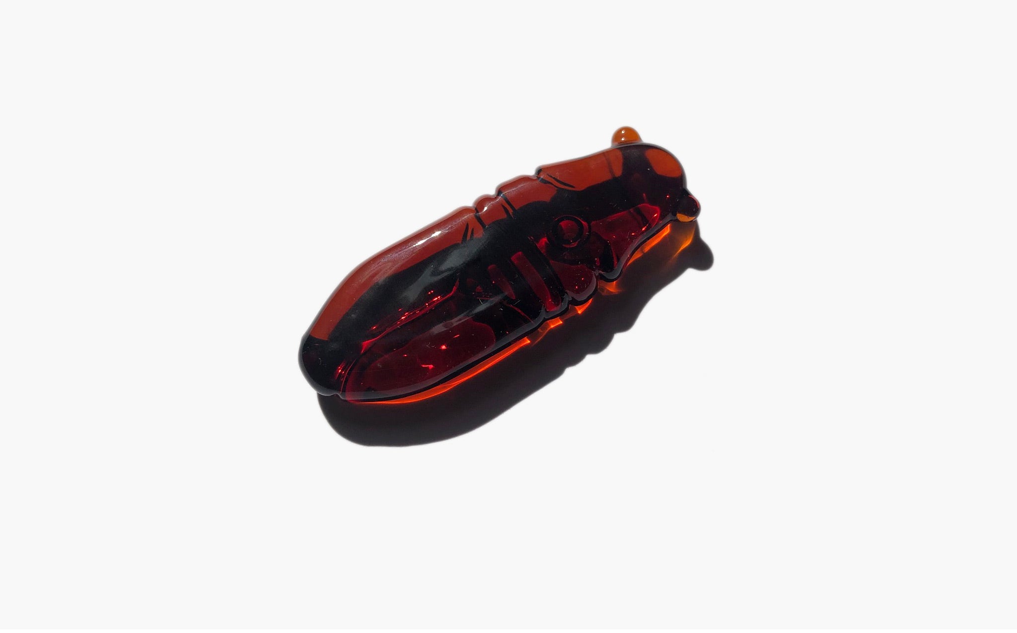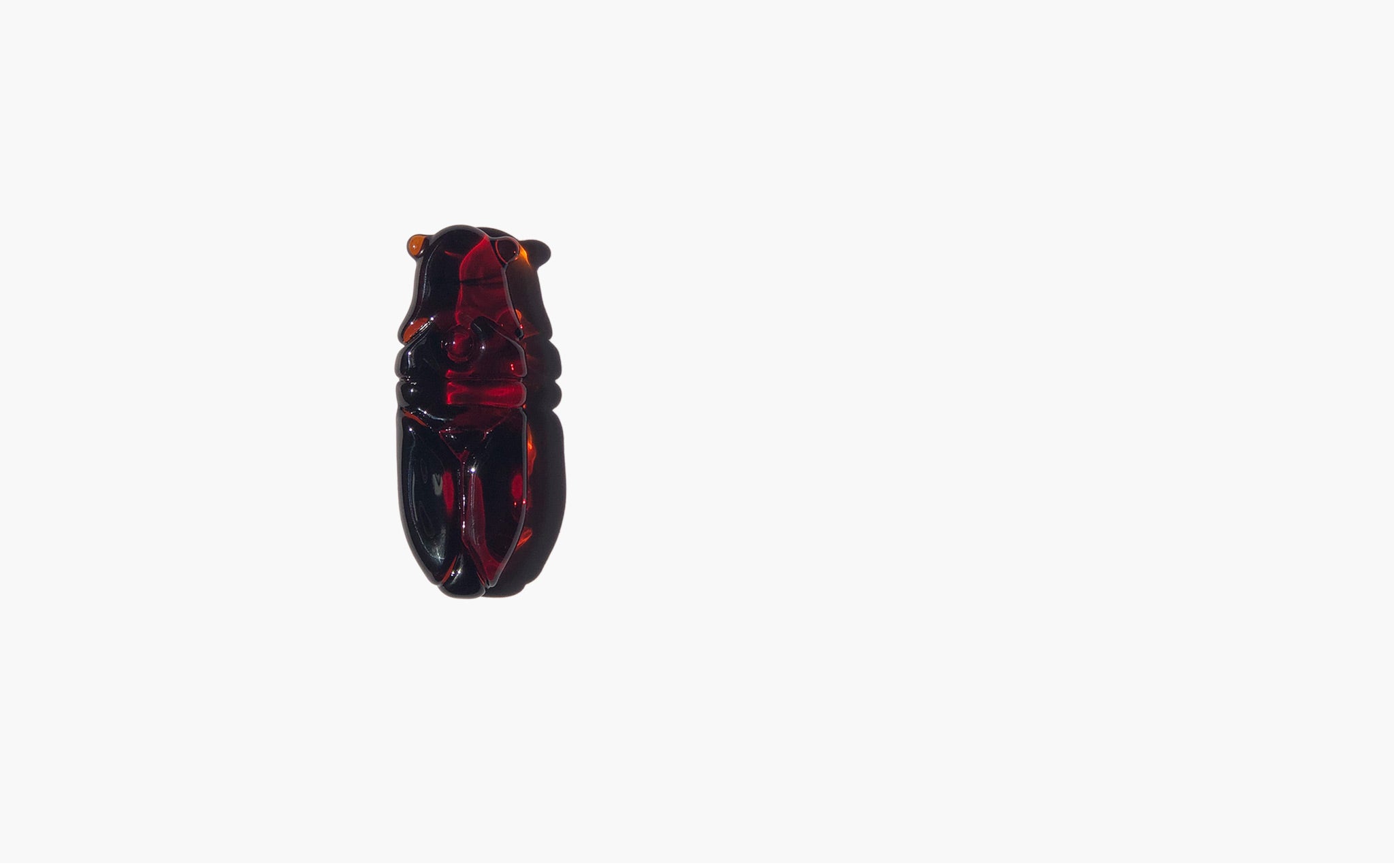 Hand blown glass cicada talisman, a symbol of love, lust, and immortality.