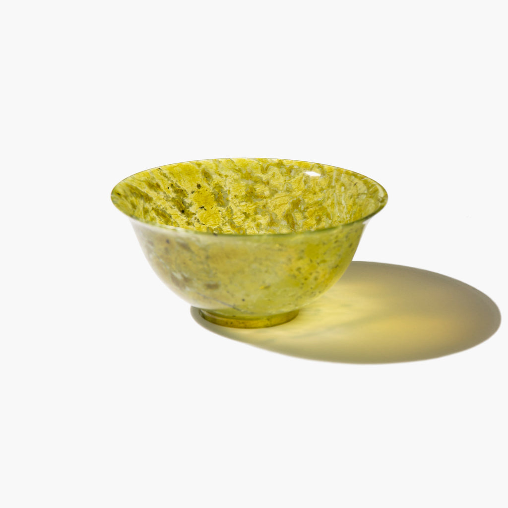 Hand-sculpted, natural green jade bowl in a beautifully translucent shade of celery. A perfect trinket dish for the vanity table.