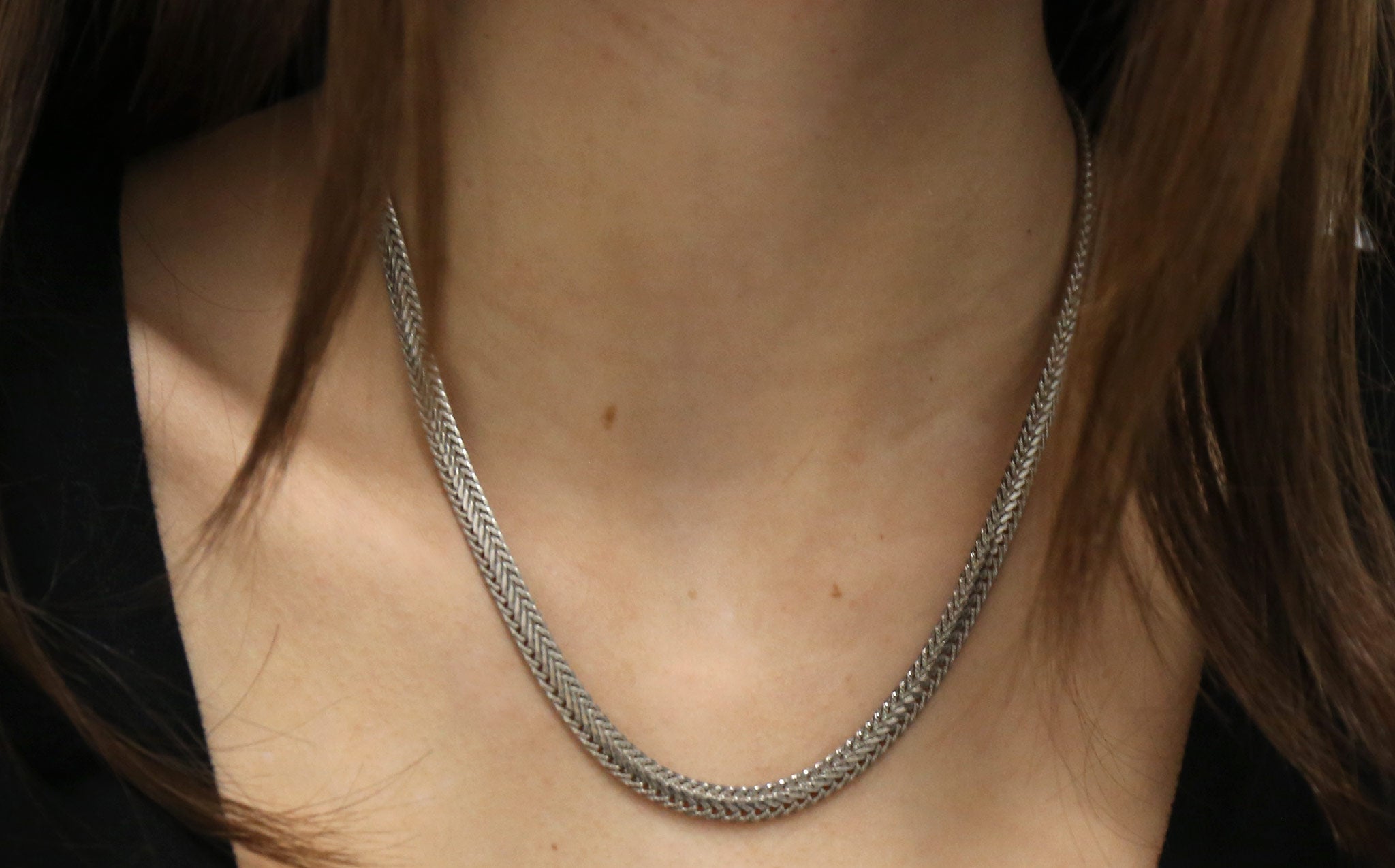 Beautifully thick and weighty sterling silver foxtail chain. Chic and simple worn alone and a fantastic layering piece.