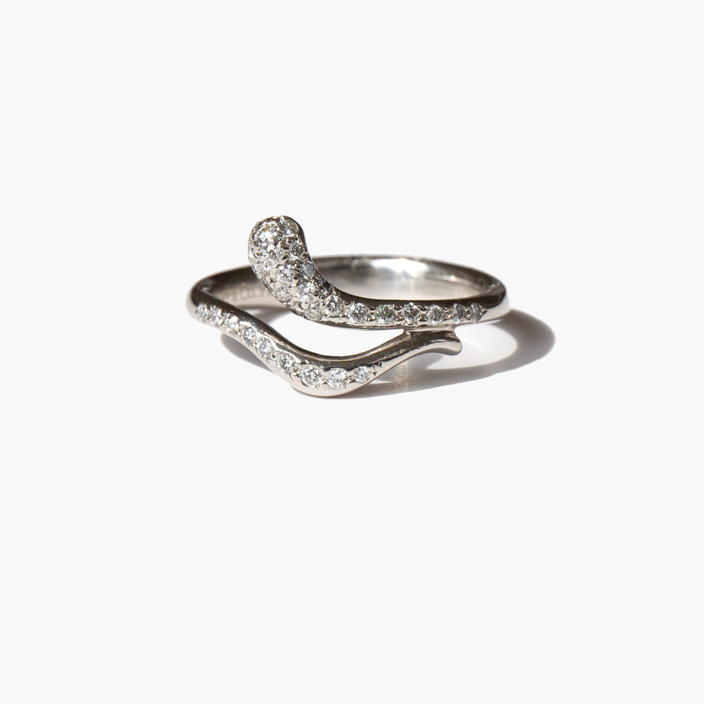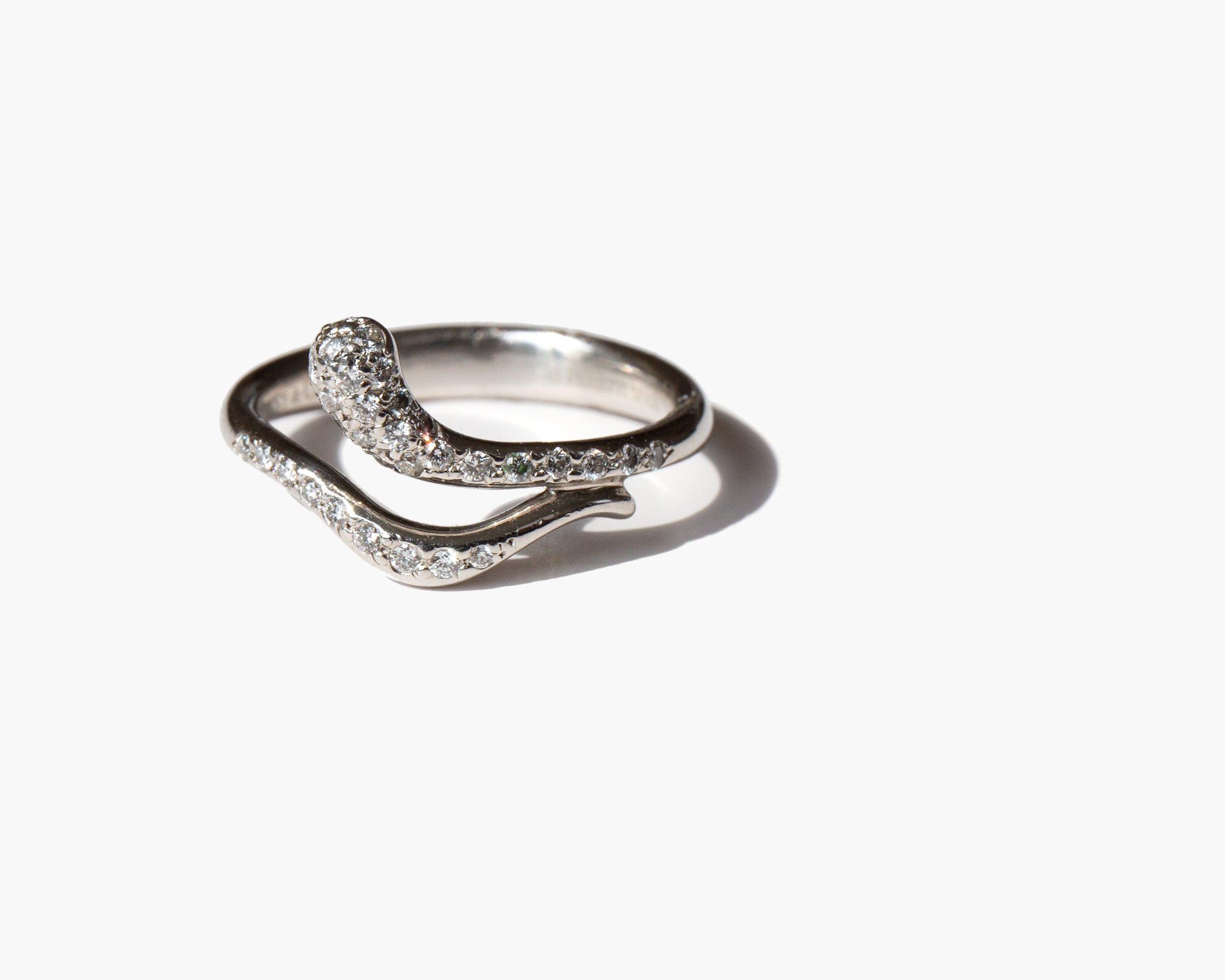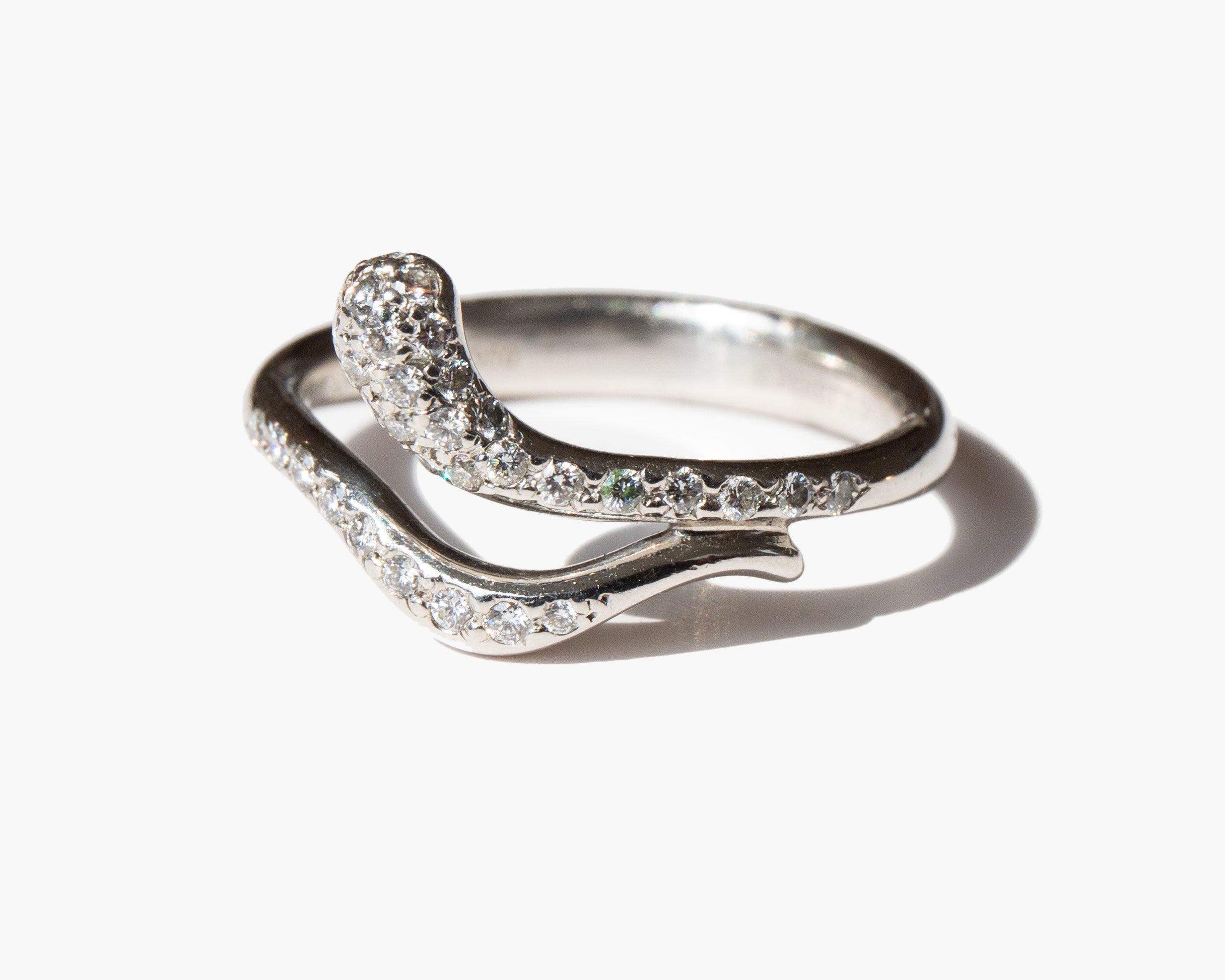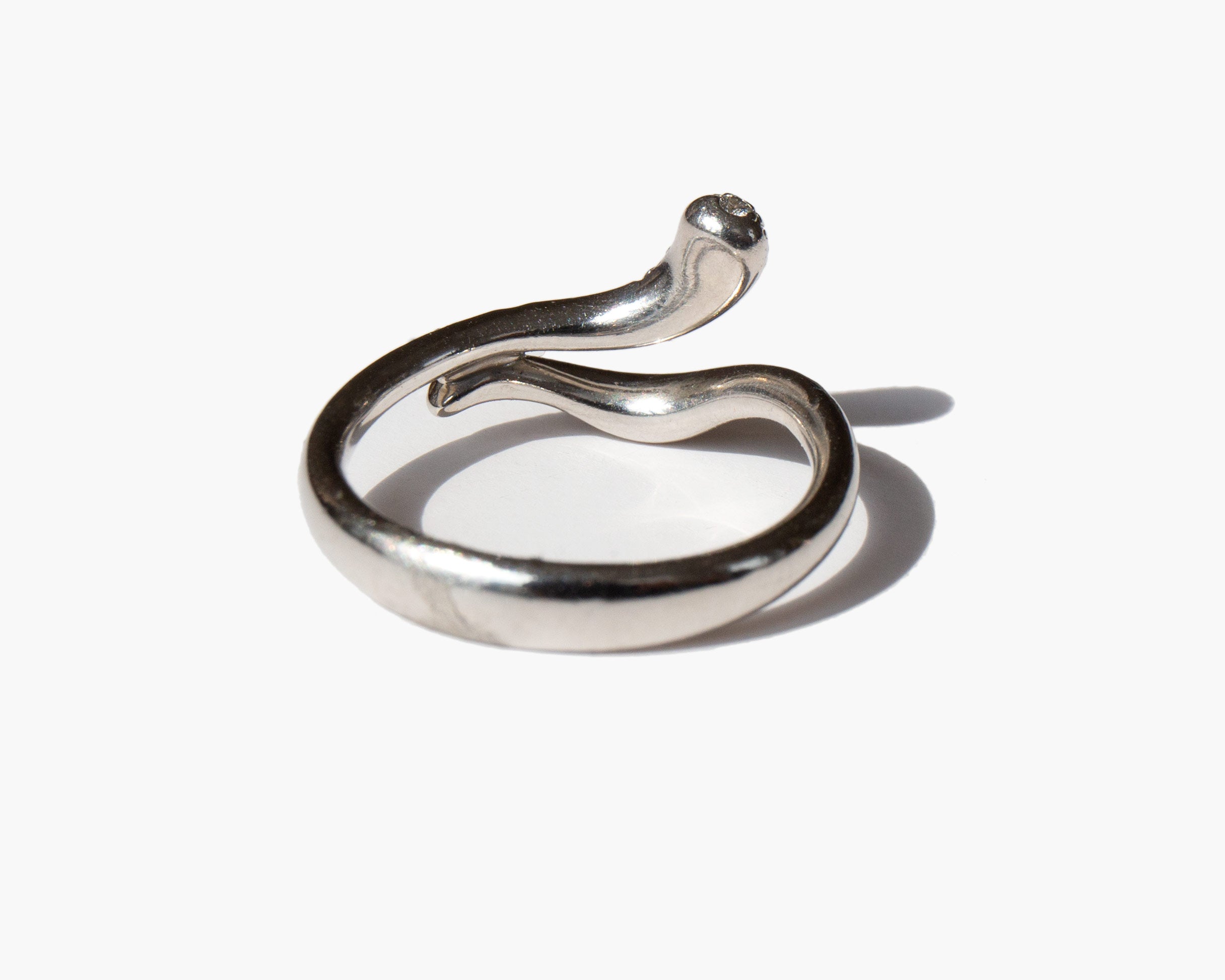 Elsa Peretti for Tiffany & Co. platinum and diamond snake ring. In many myths, snakes are often related as seers of the future or some sort of intermediary between humans and the gods. A sacred animal, the snake is also a symbol of renewal and rebirth because of the way that they shed their outer layer of skin and emerge transformed.