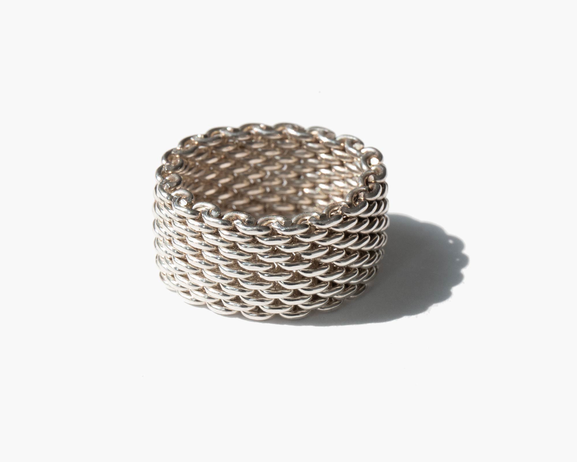 Simple and chic vintage sterling silver Tiffany & Co. mesh weave Somerset Ring.