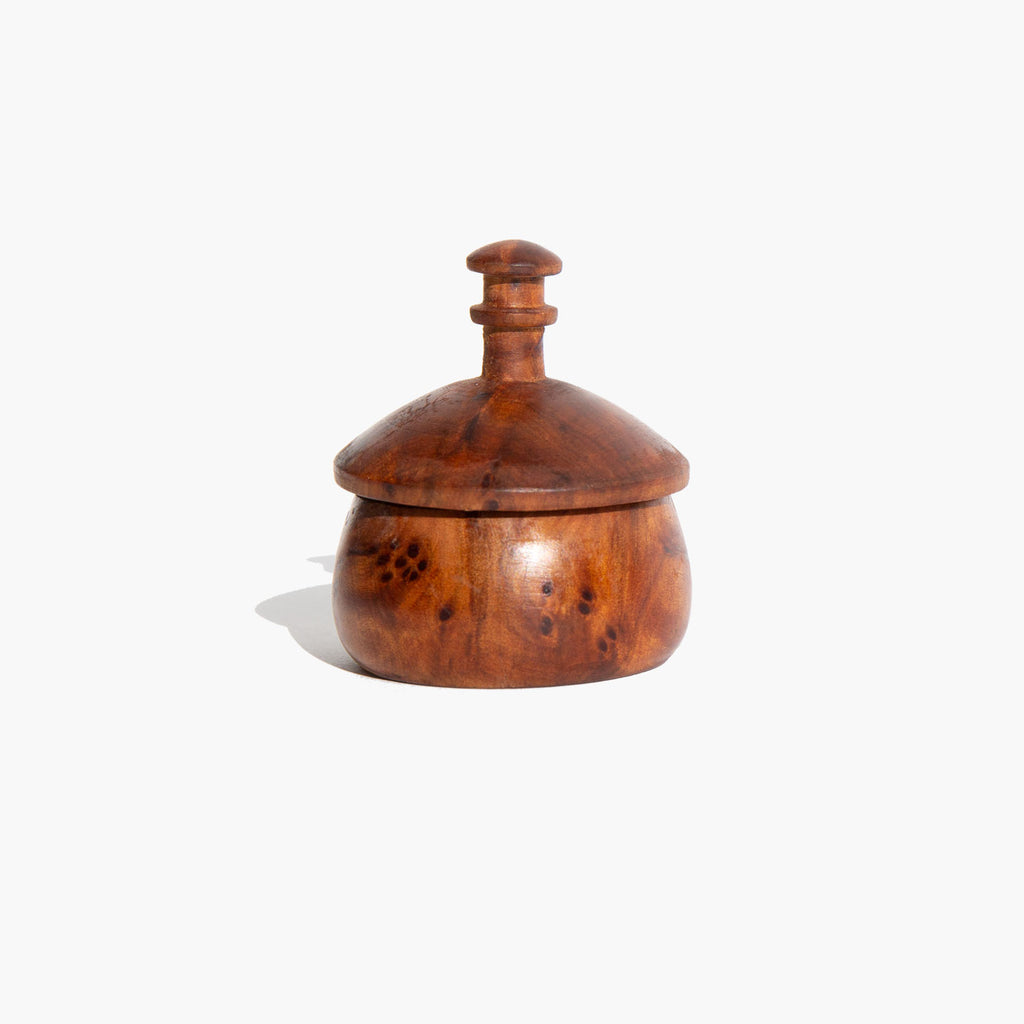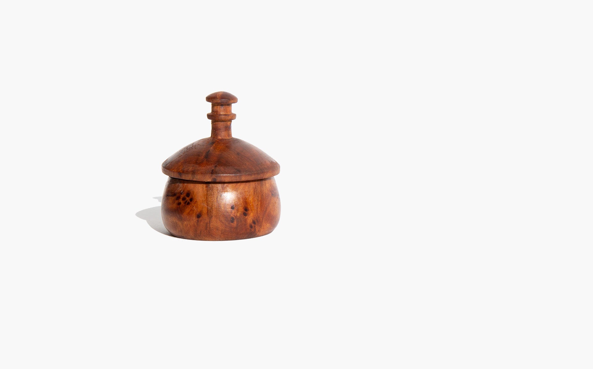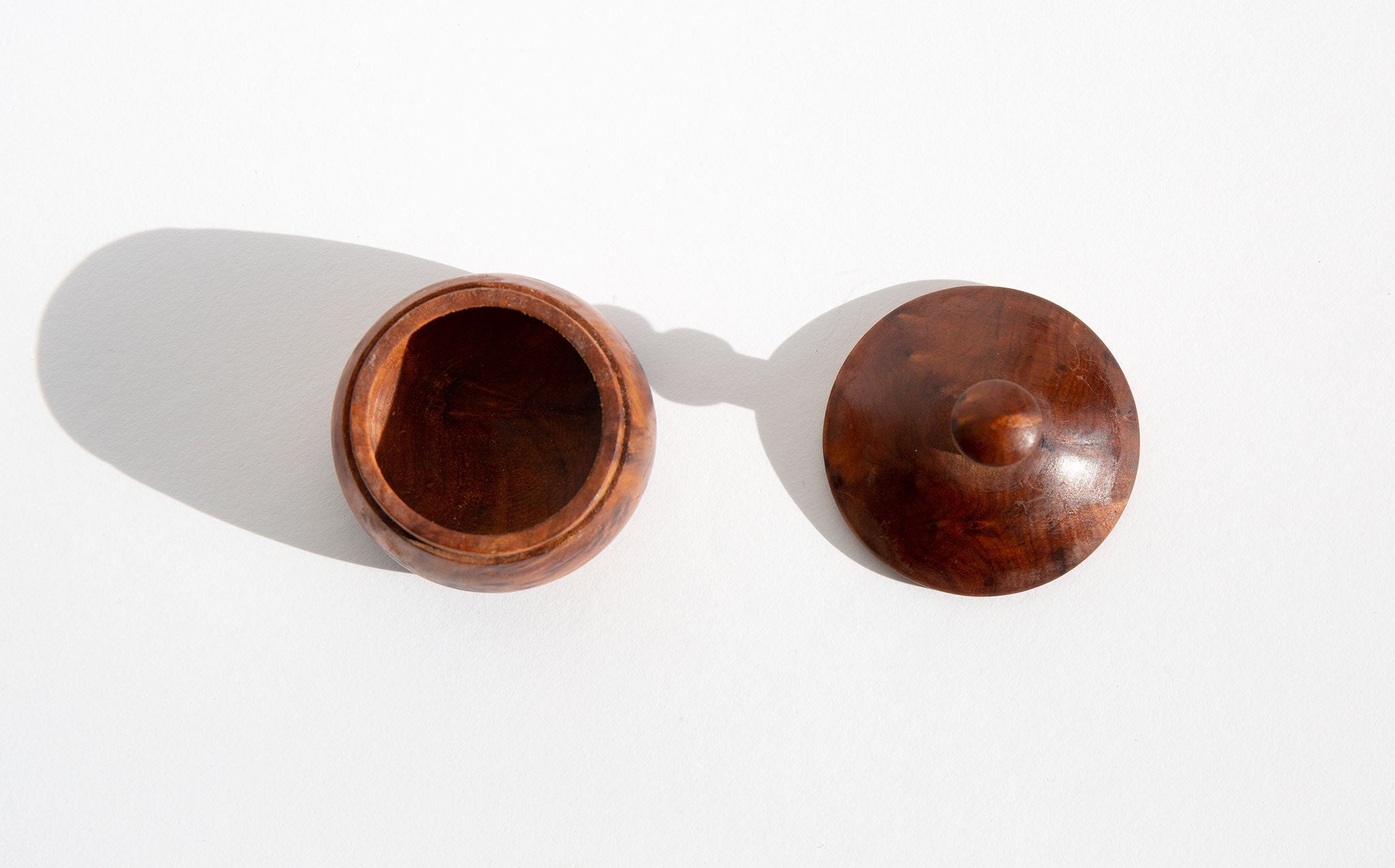 Small, rounded wooden treasure box, a pretty container for secret treasures and jewelry.
