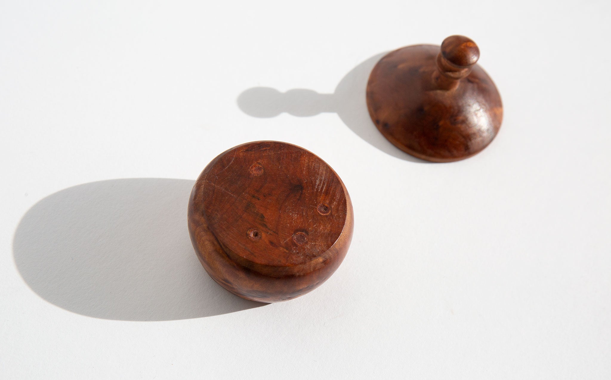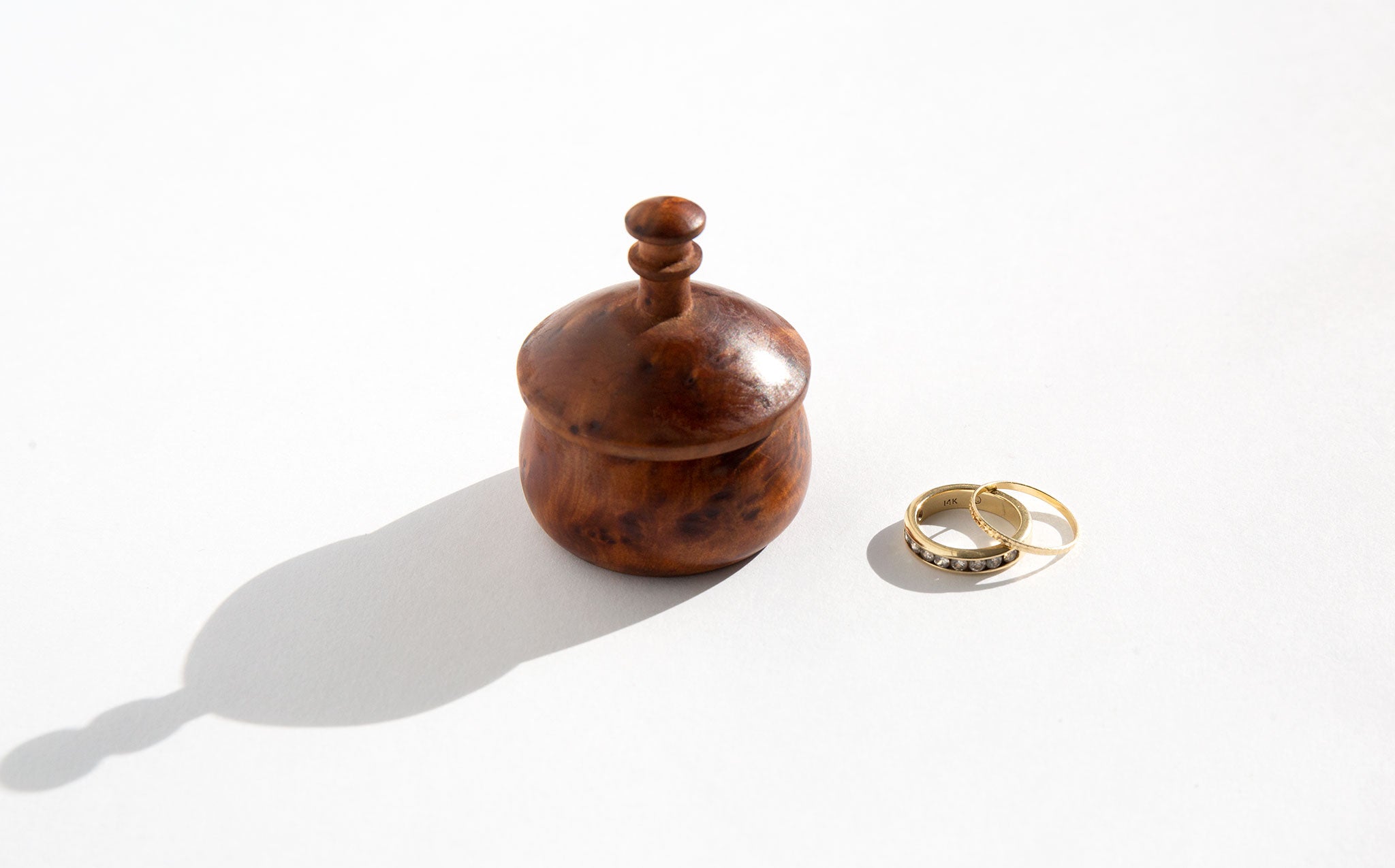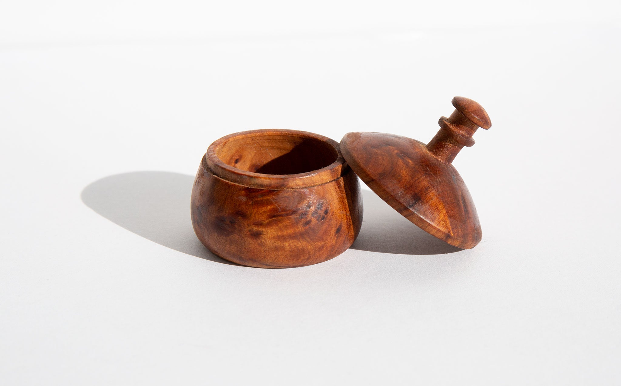 Small, rounded wooden treasure box, a pretty container for secret treasures and jewelry.
