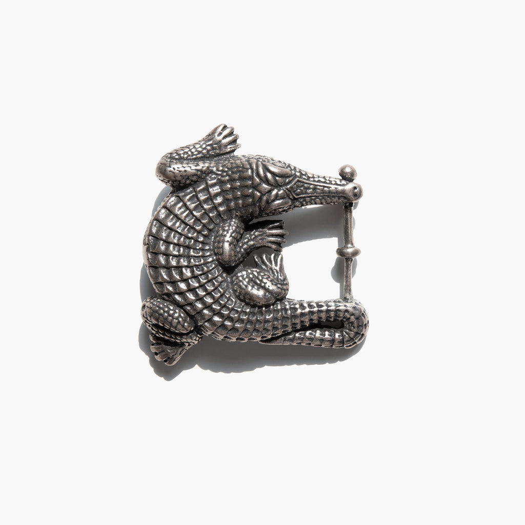 Sterling silver alligator belt buckle. The alligator is regarded in some cultures as a symbol of strength and a powerful talisman for protection.