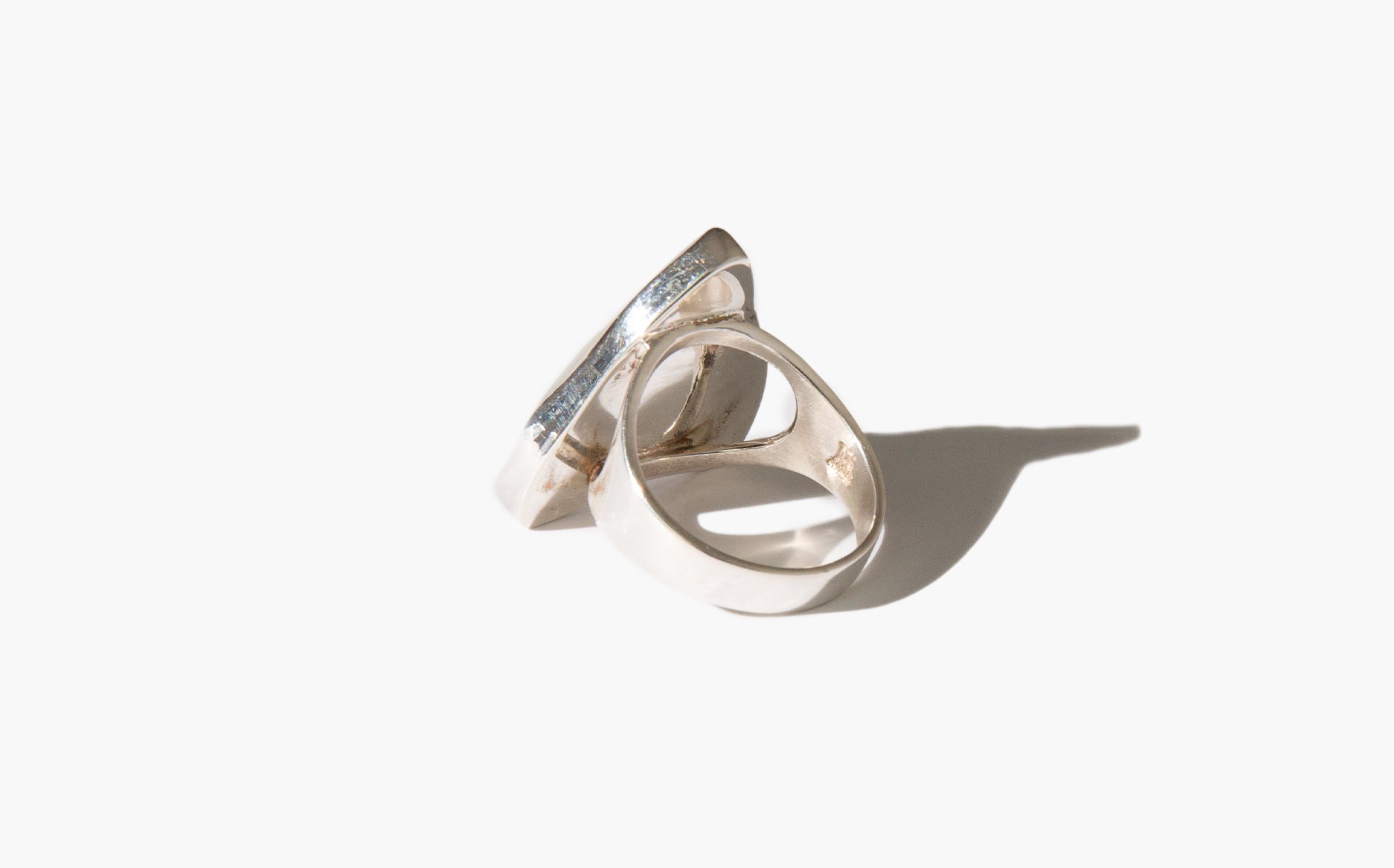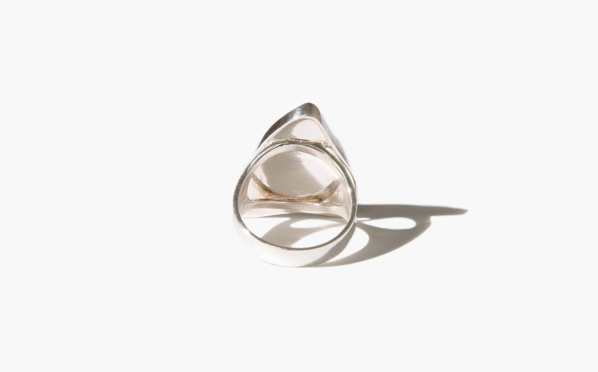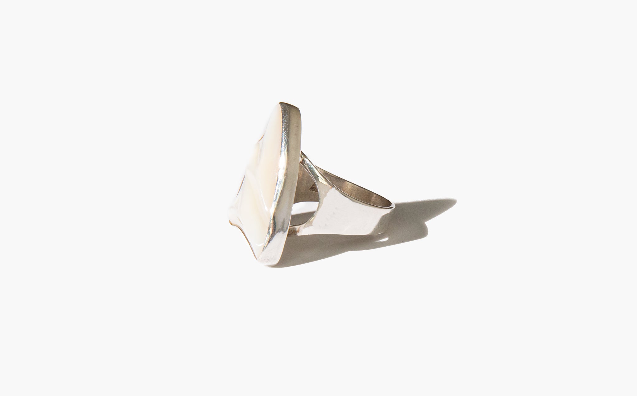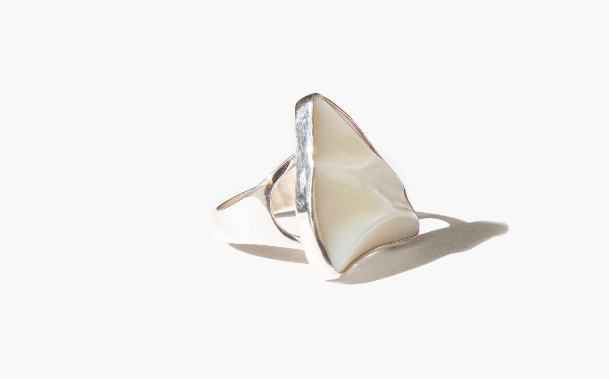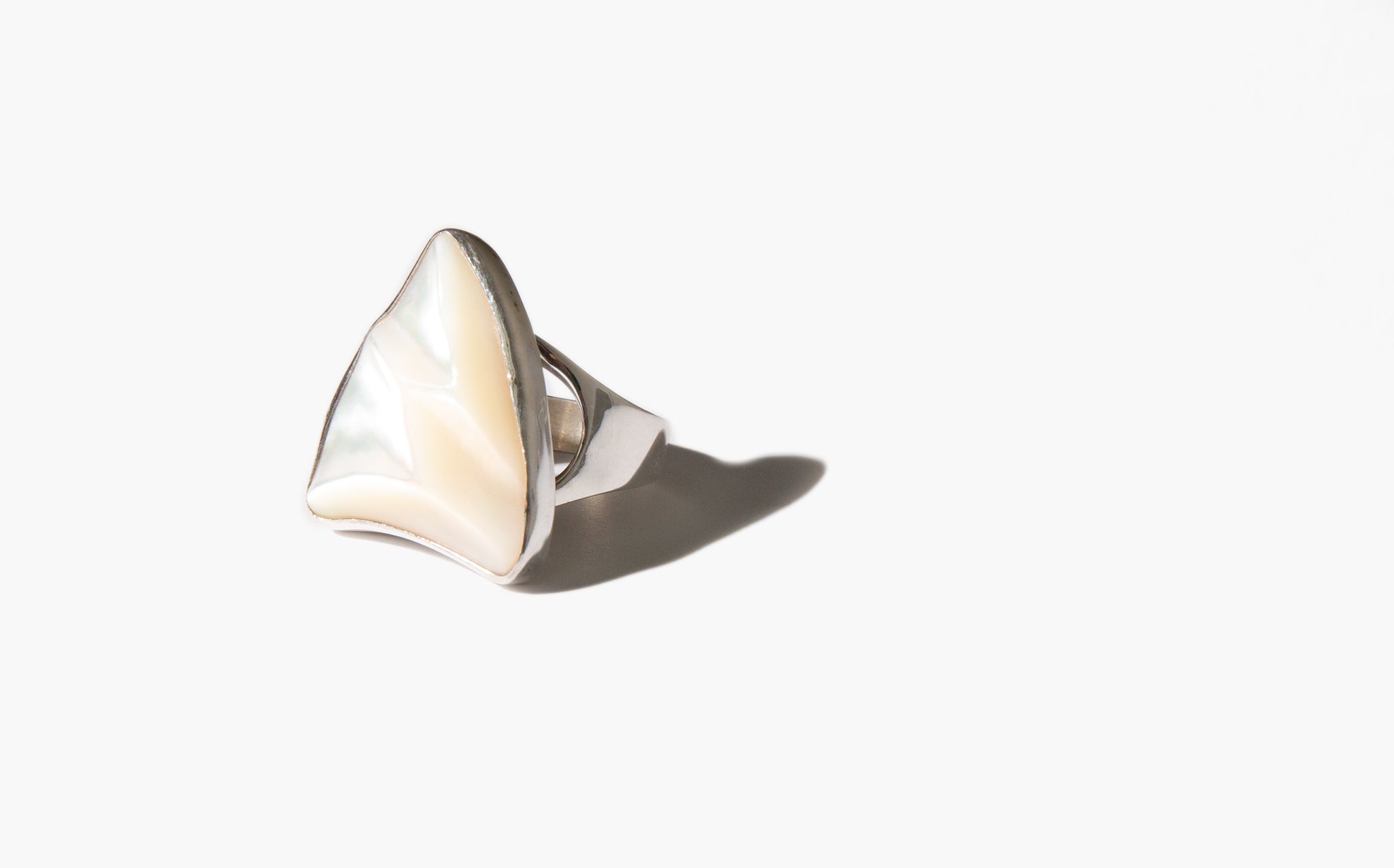 Sterling silver and abalone "shark's tooth" ring. A sacred shell, abalone is said to heal the soul, relieve stress, and increase feelings of relaxation.