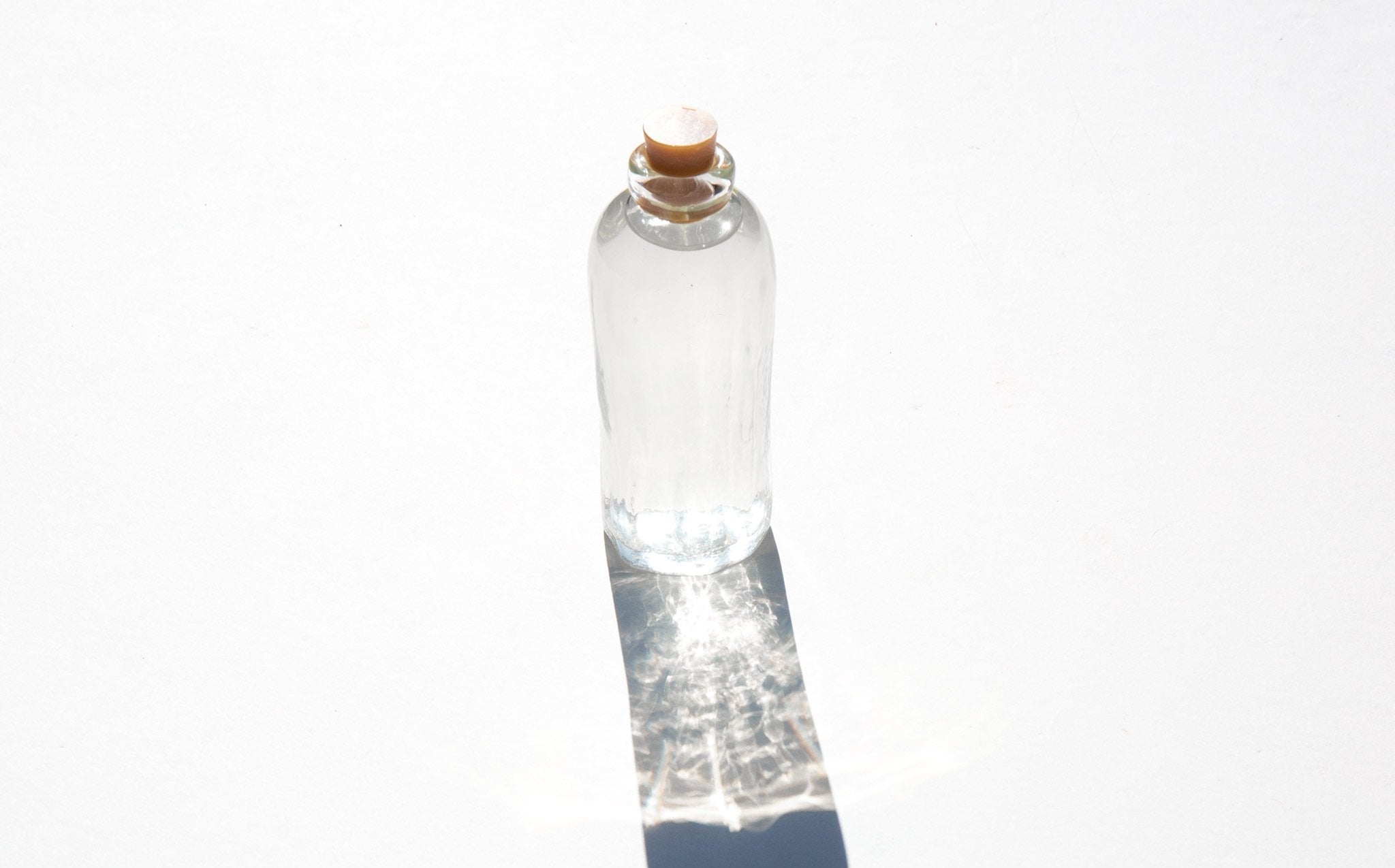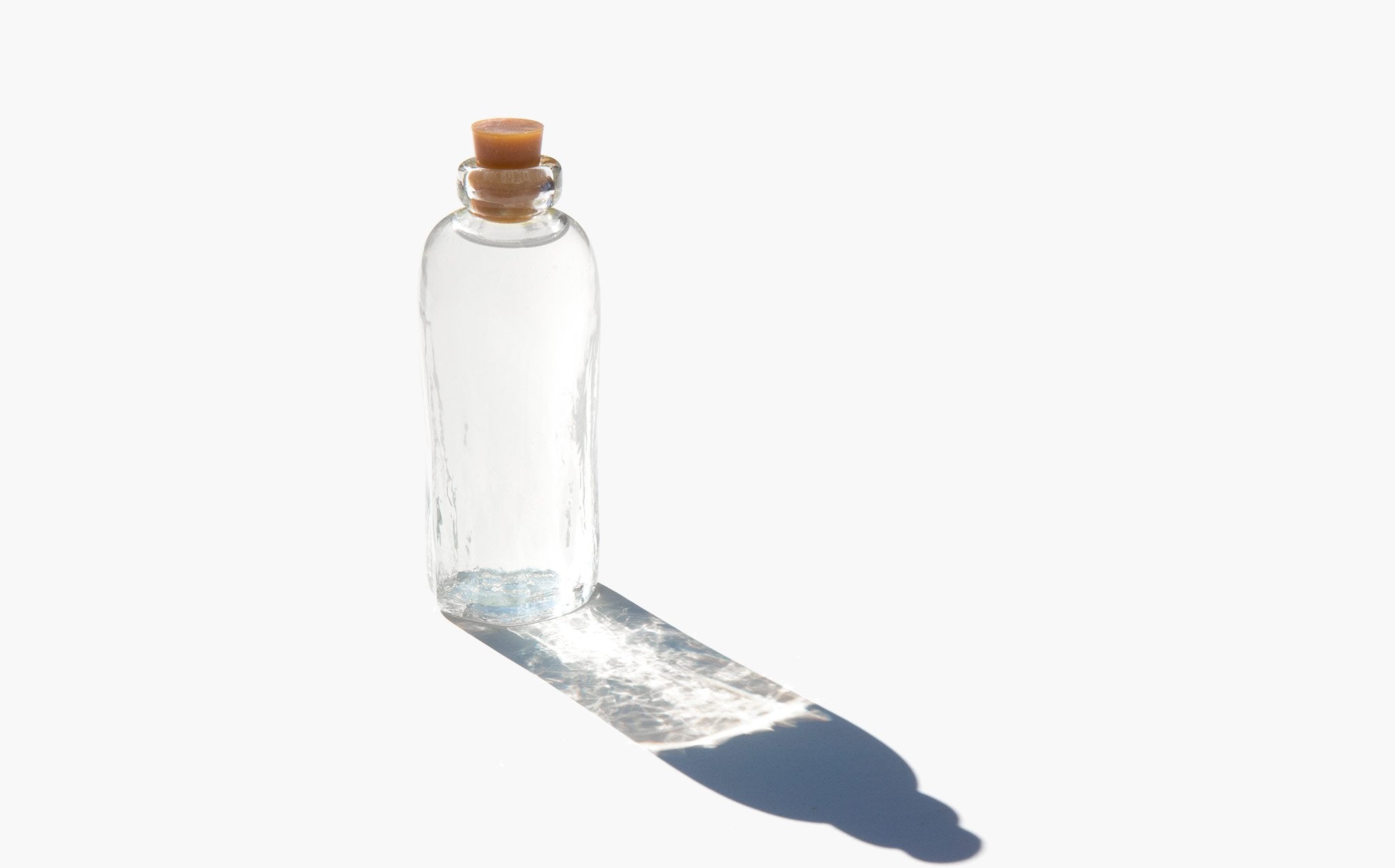 Approximately 4 oz handmade, recycled glass bottle that is shipped natural gum rubber and wax sealed.