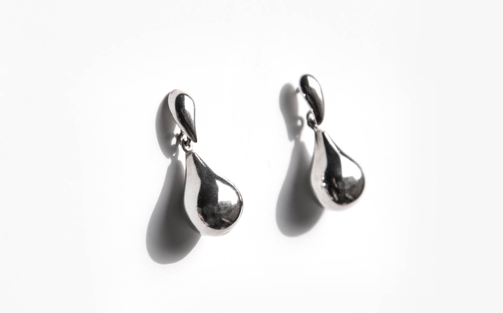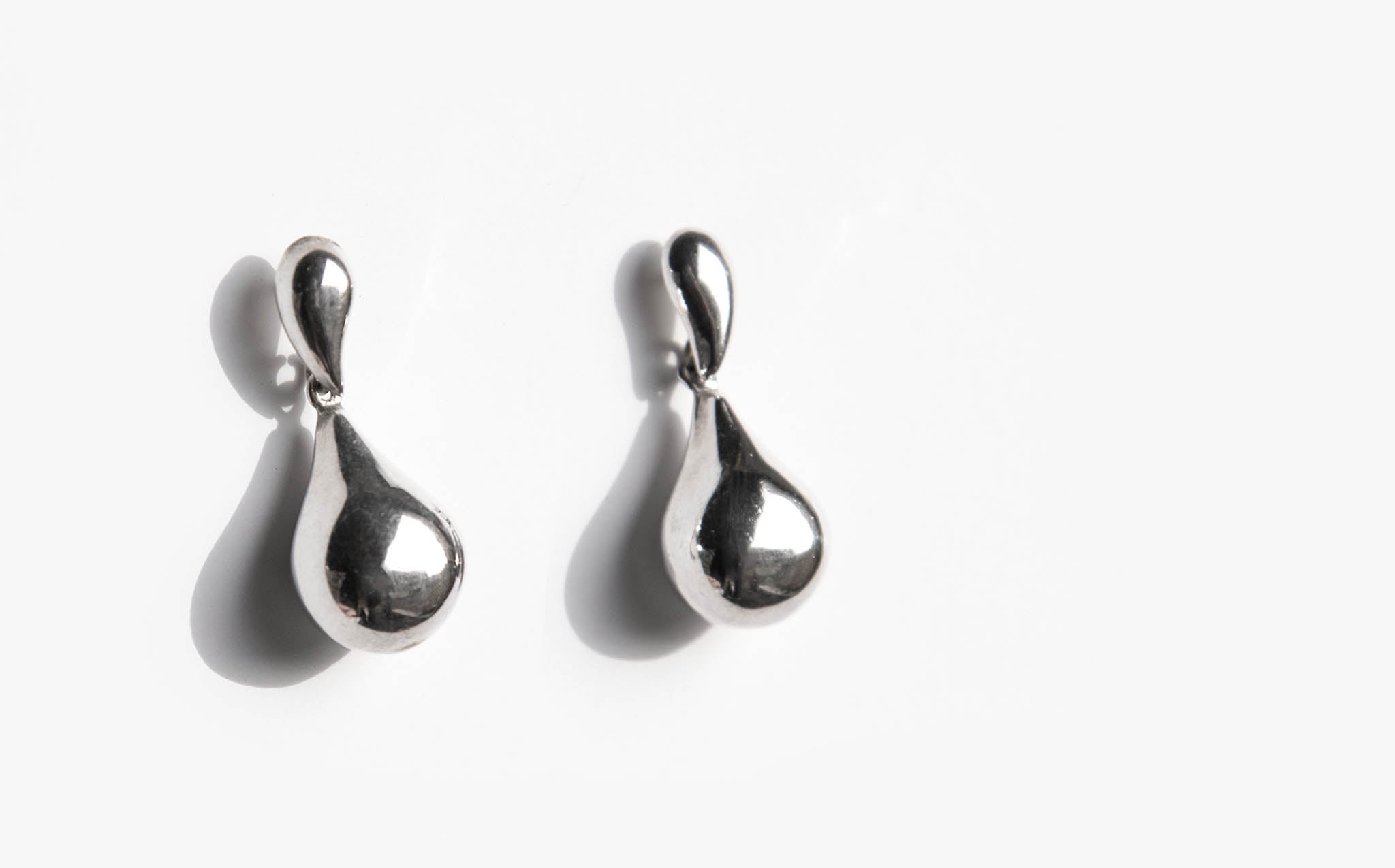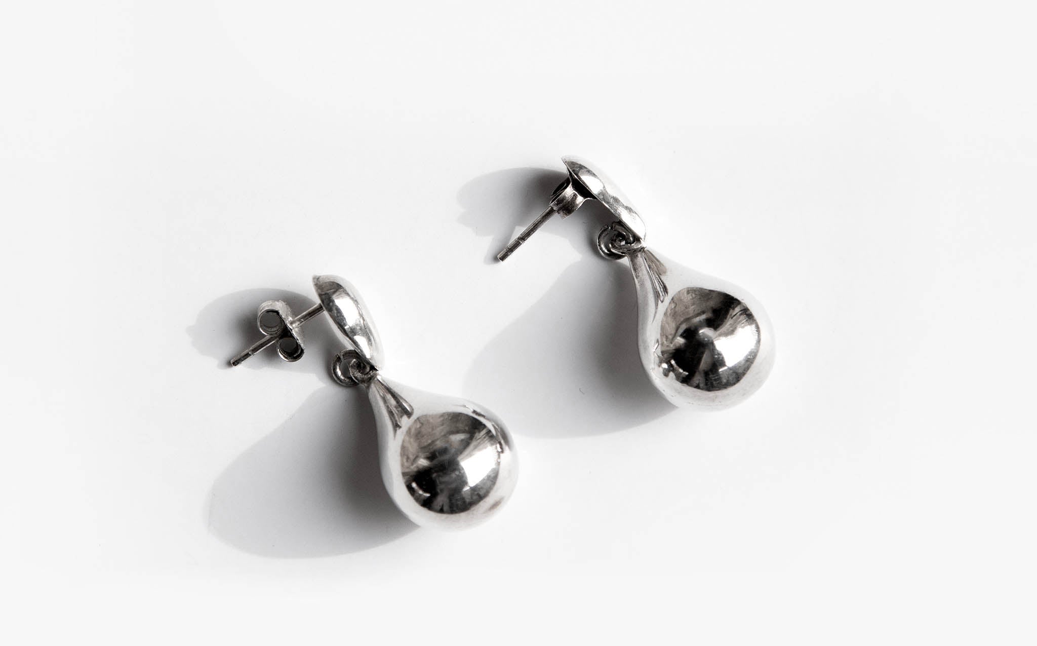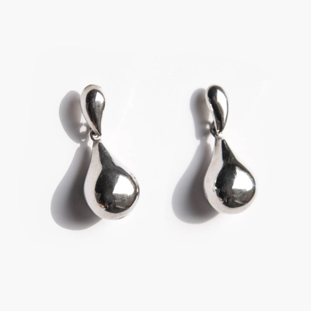 Sterling silver stud earrings with hanging teardrop shaped charms.