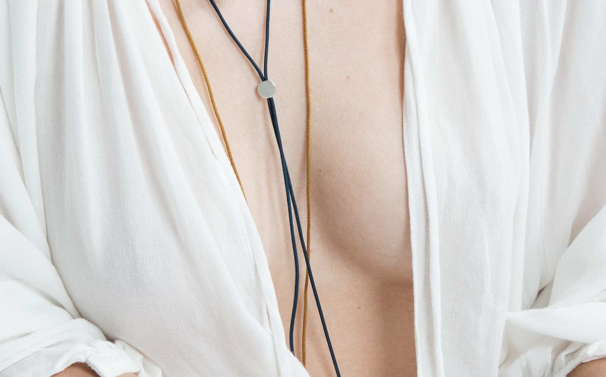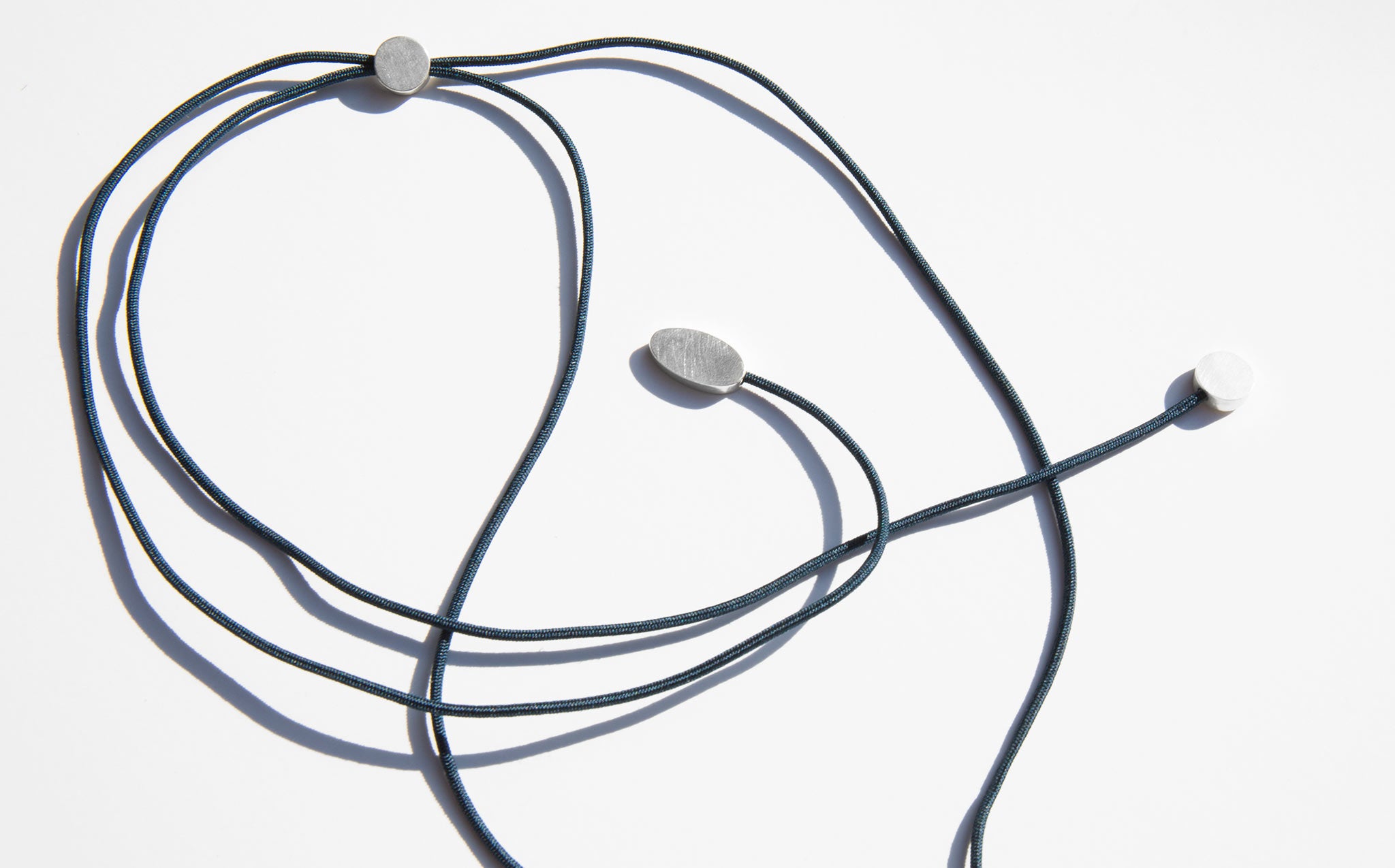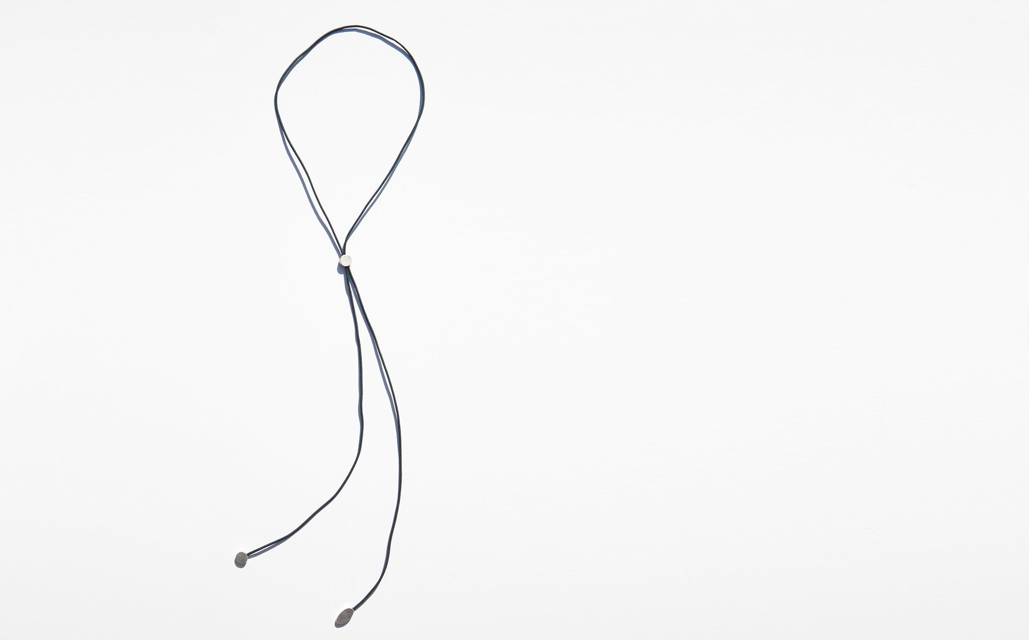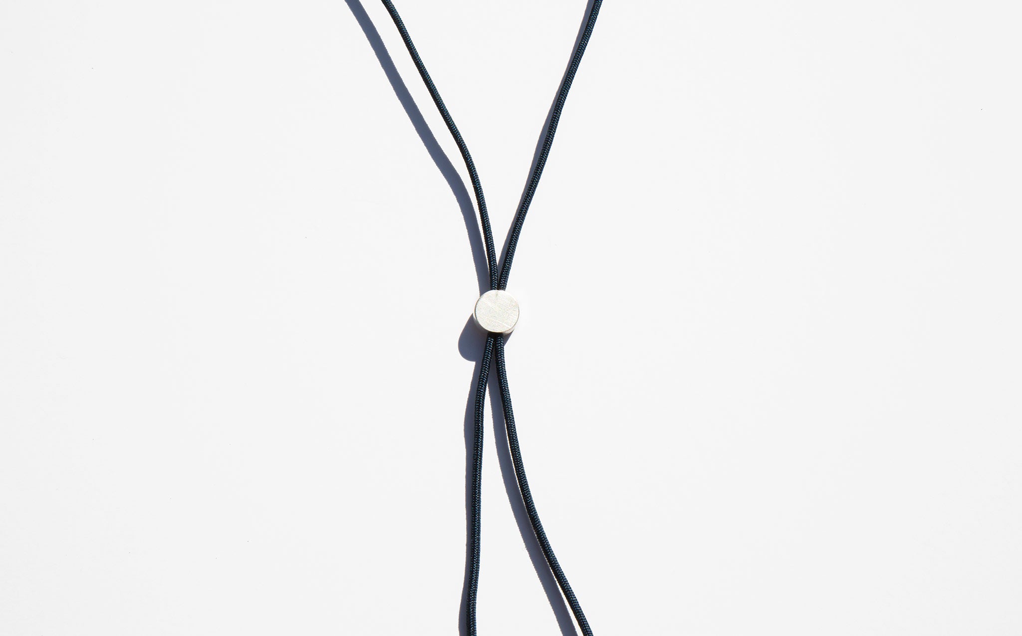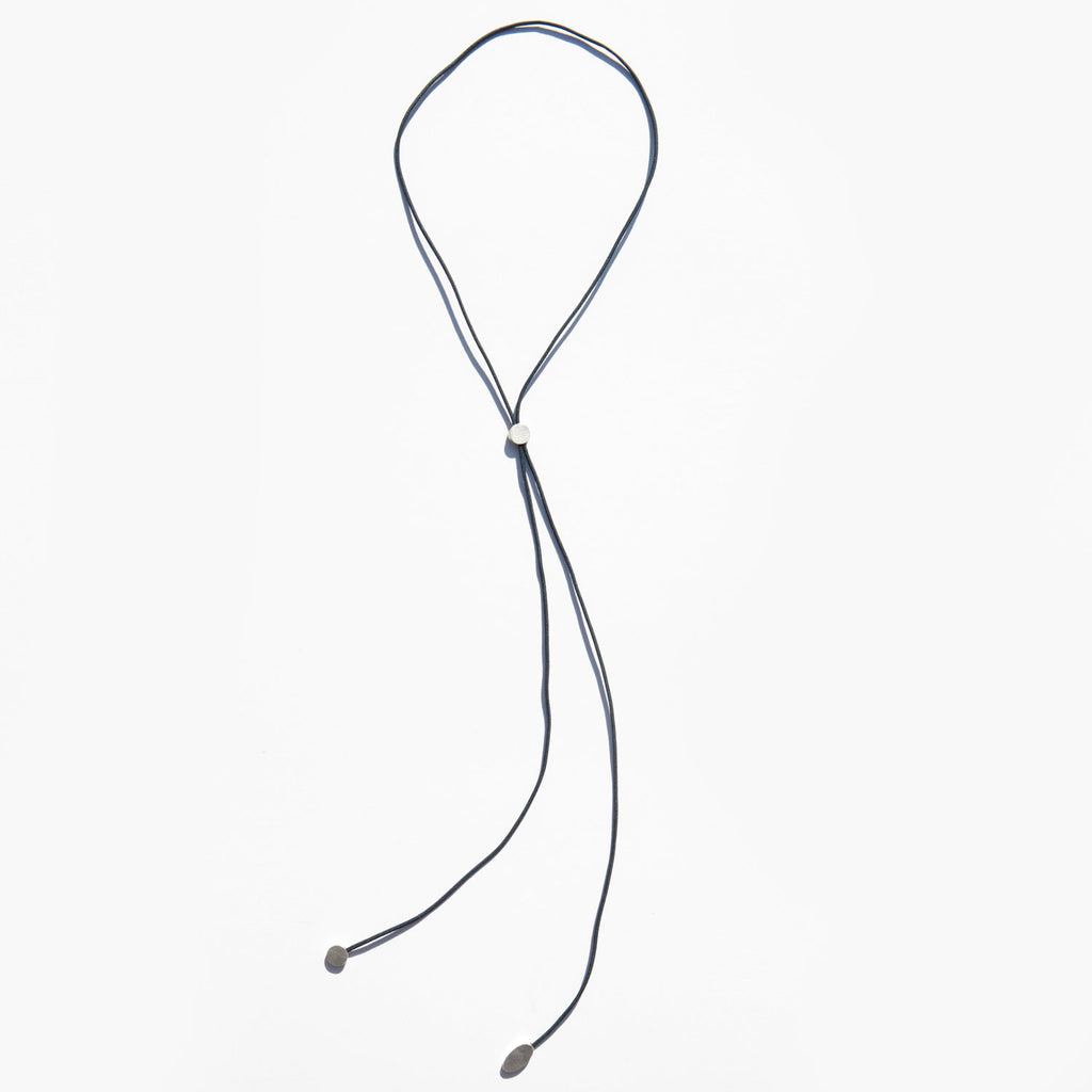 A chic and modern take on the traditional southwestern bolo-tie, the Ursa Major Davy Lariat is an easy and versatile accessory for everyday wear. Handmade by Kate Jones of Japanese silk/nylon cord with hand done and well weighted sterling silver pieces.