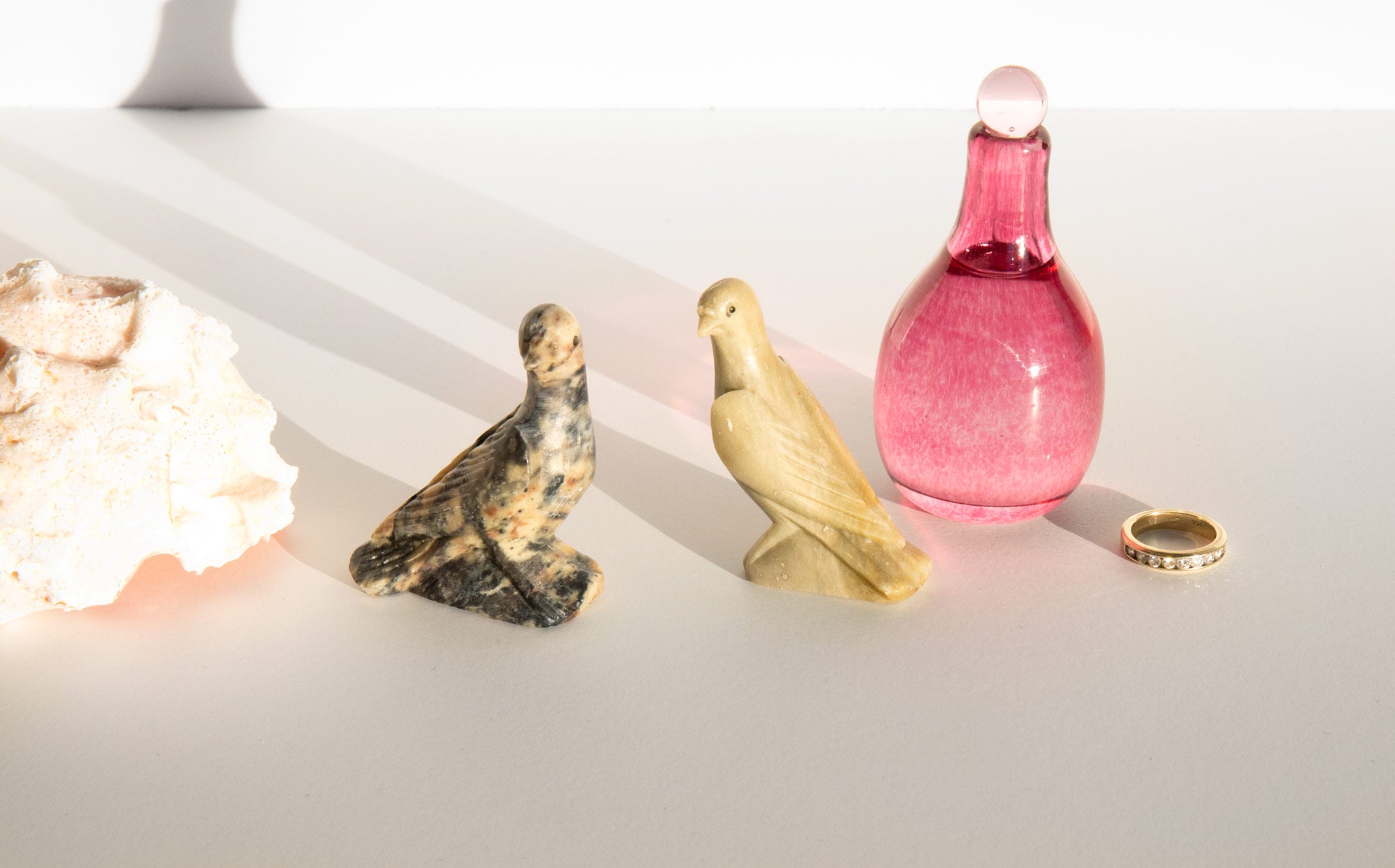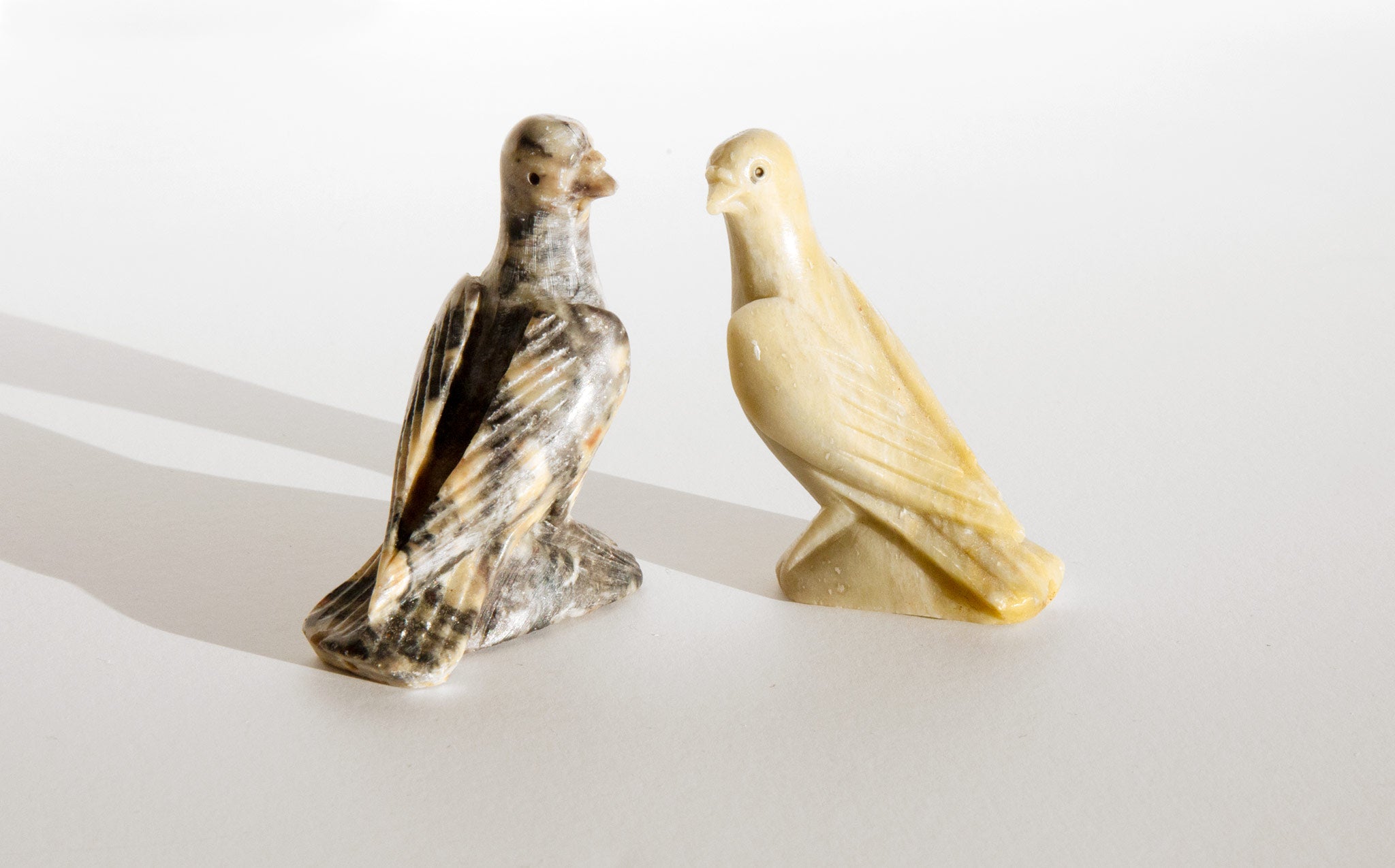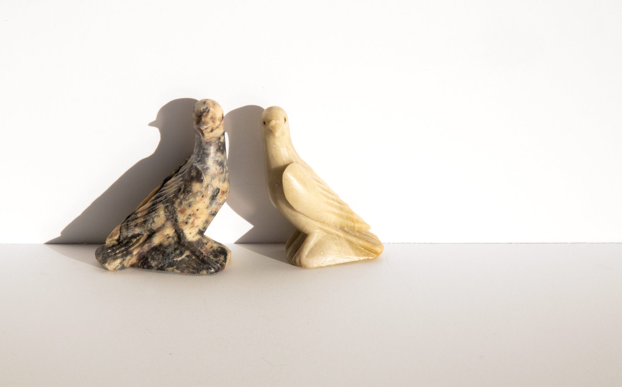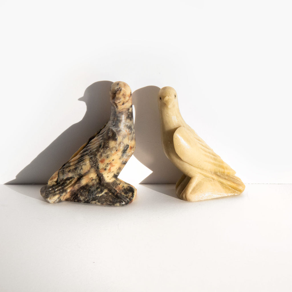 Set of vintage carved stone pigeons. Pigeons differ from many other bird species because both parents are capable of nursing their young. Democratically skilled, these birds have become symbols of egalitarian nurturing and harmonious living.