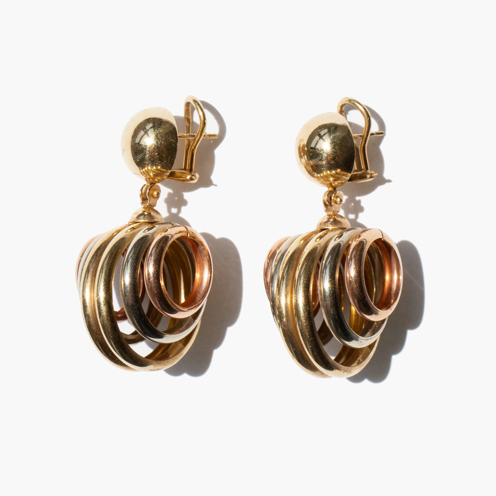 Stunning and sculptural 14k tri-color gold statement earrings.