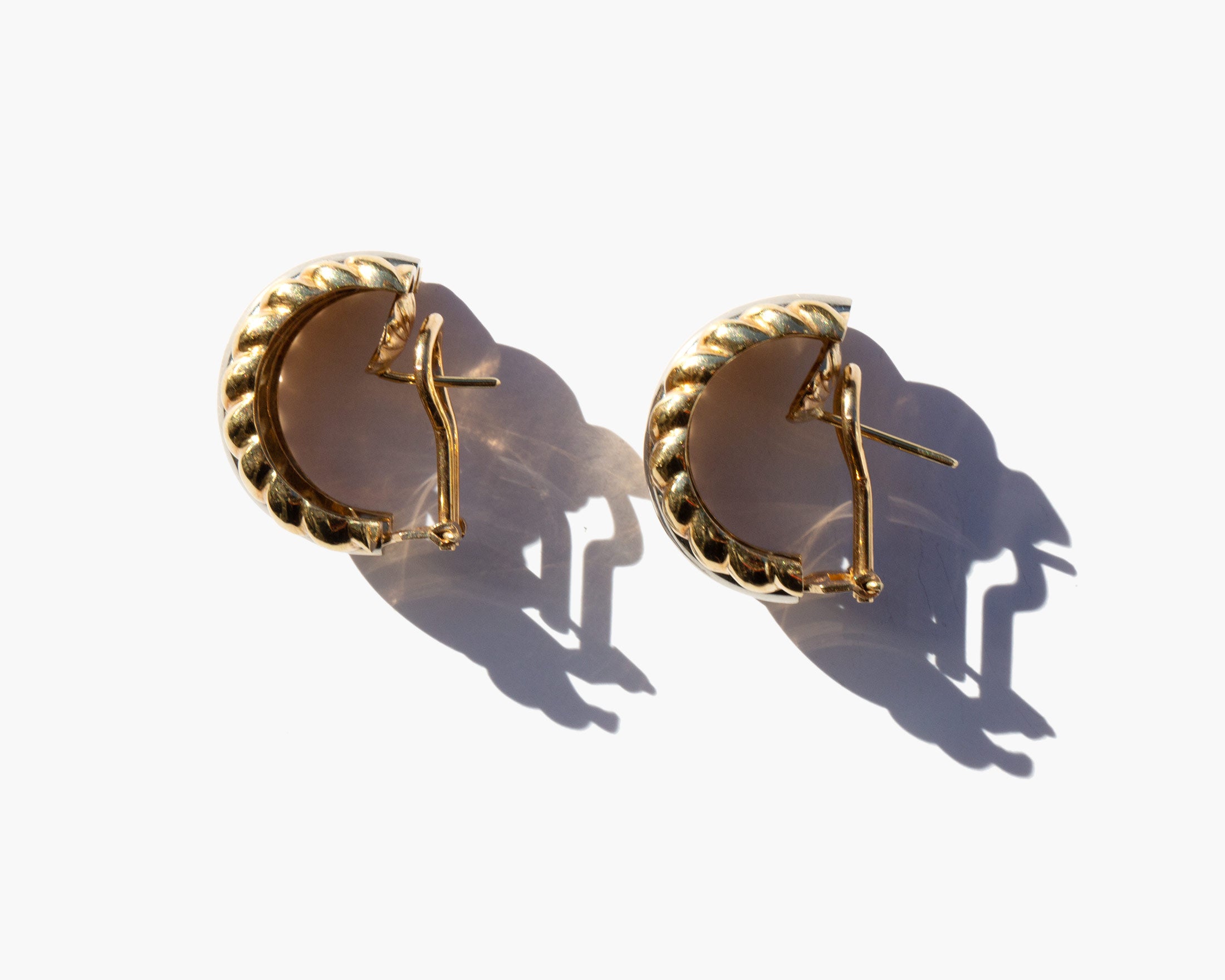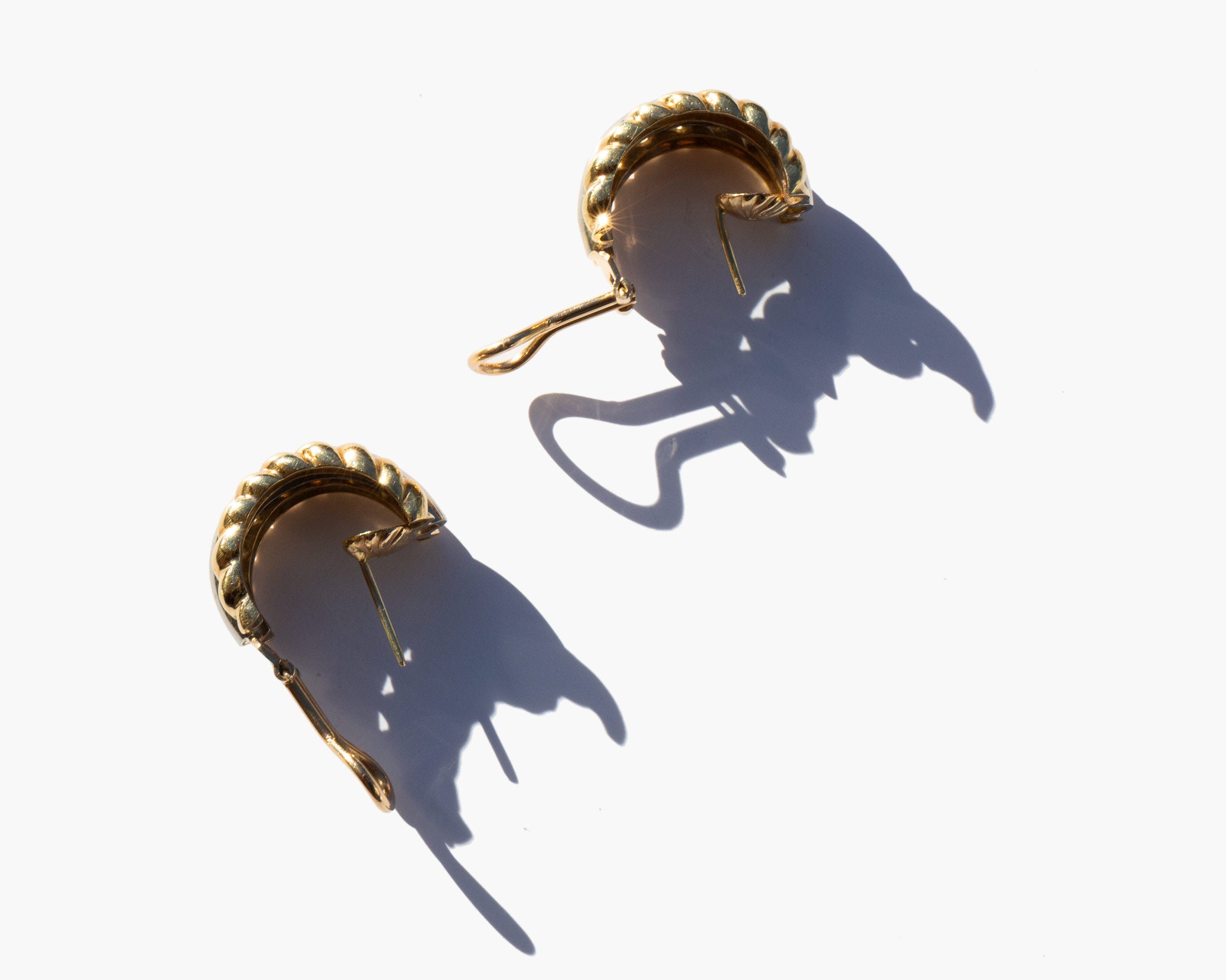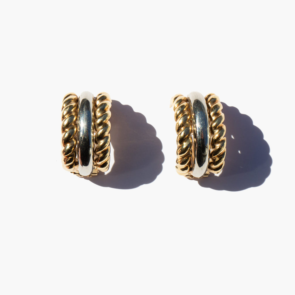 Ornate 14k white and yellow gold hoop earrings, made in Italy.