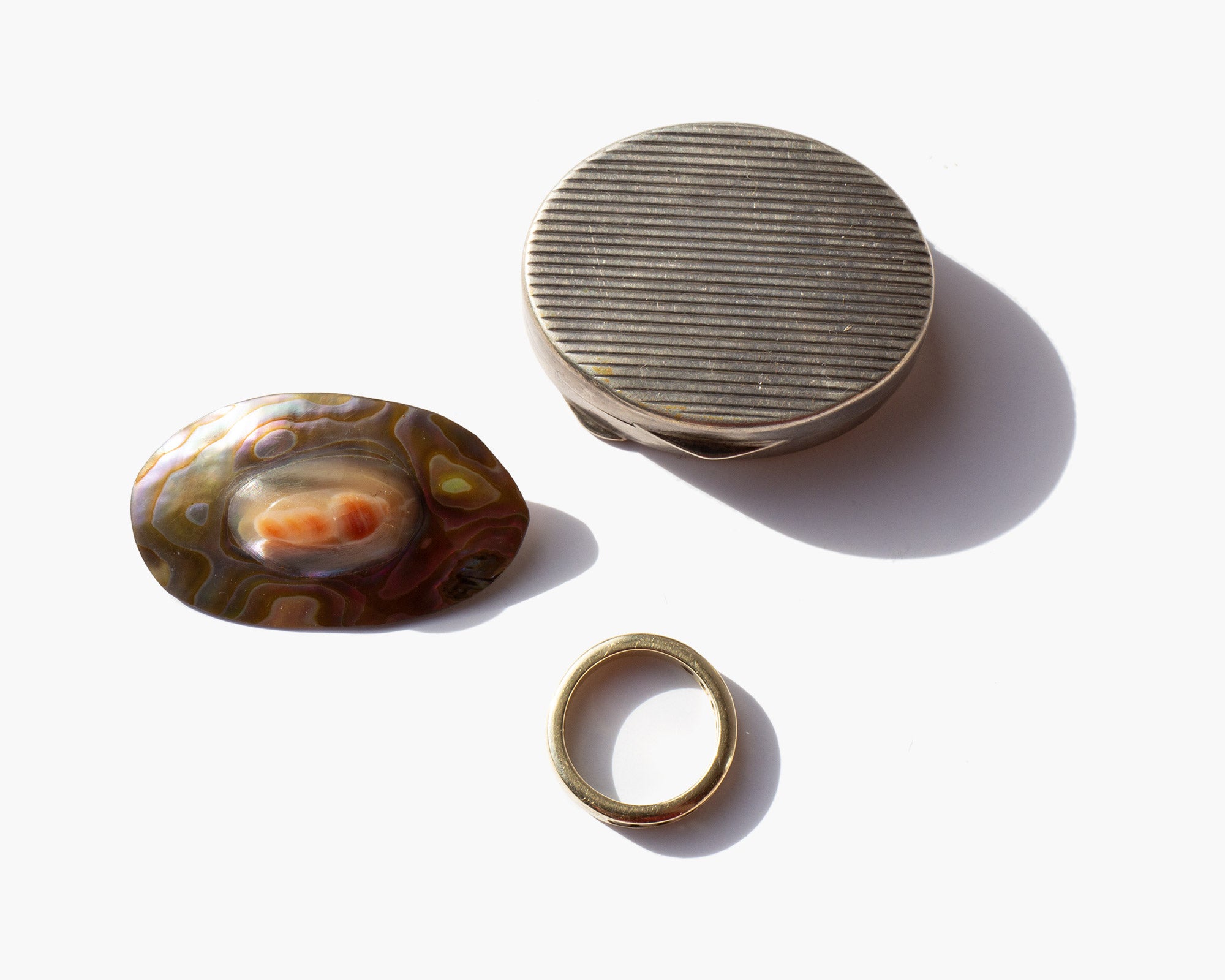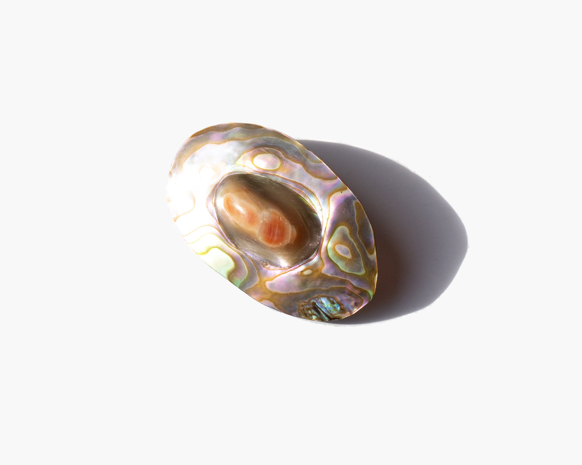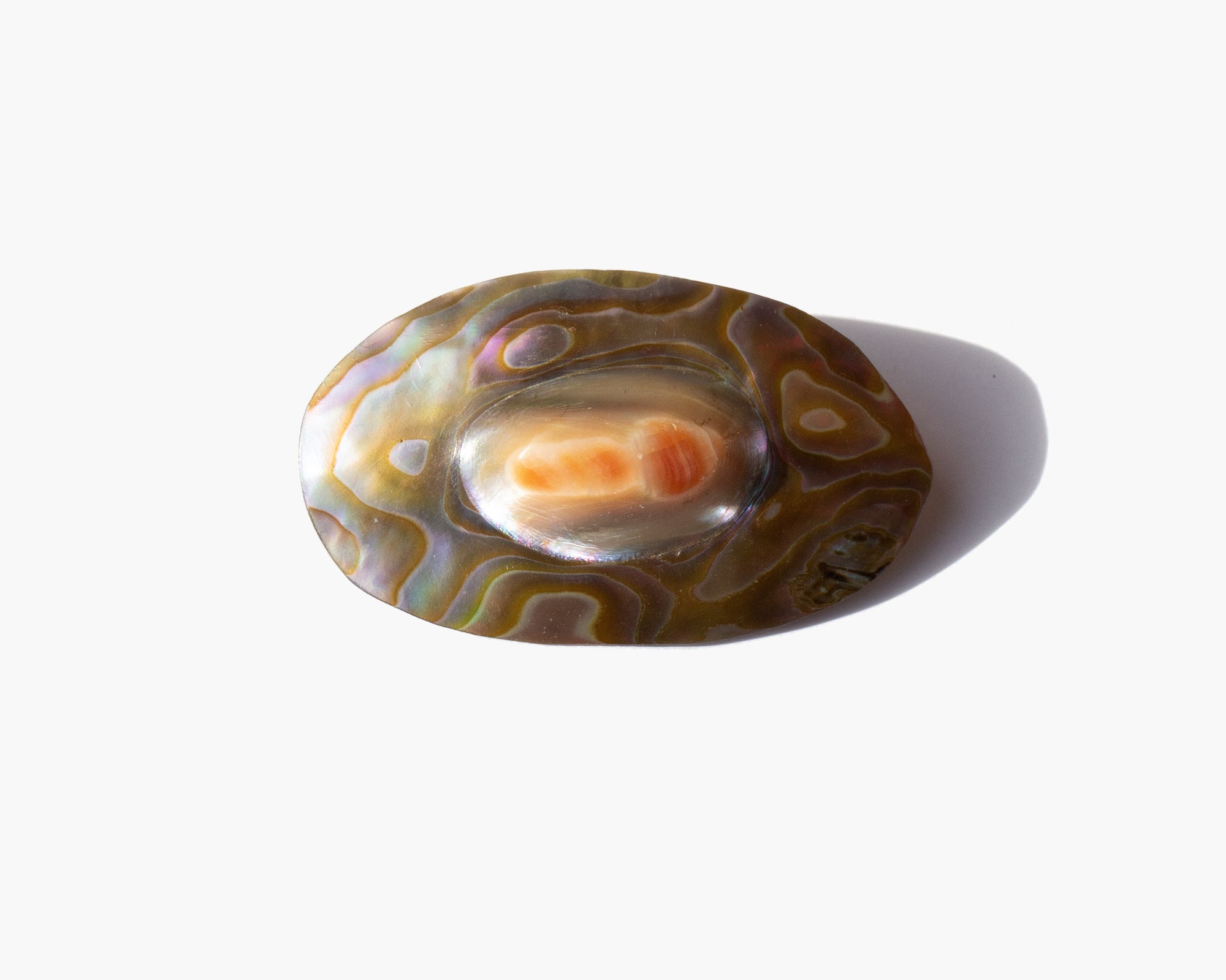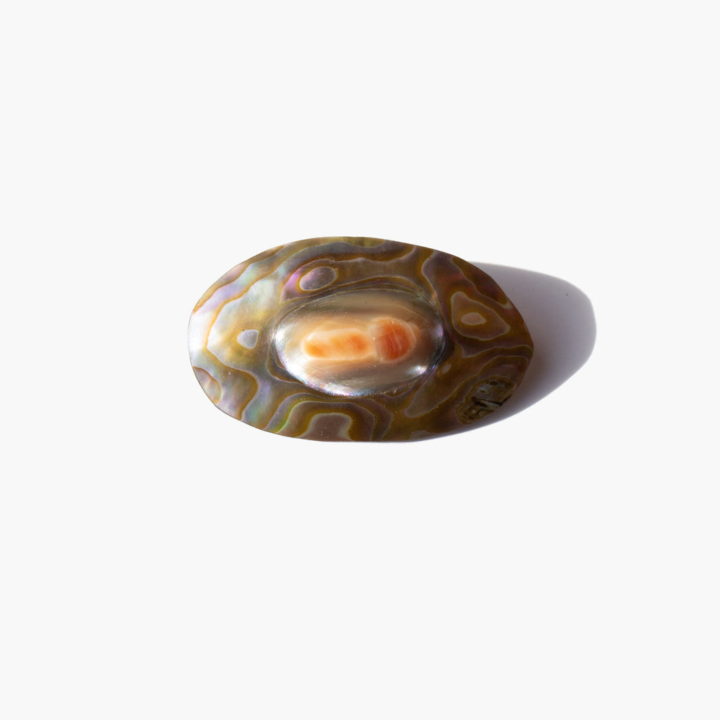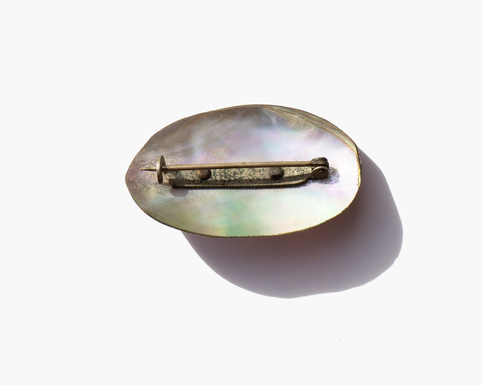 Antique Victorian carved abalone blister pearl pin with beautiful rainbow iridescence.