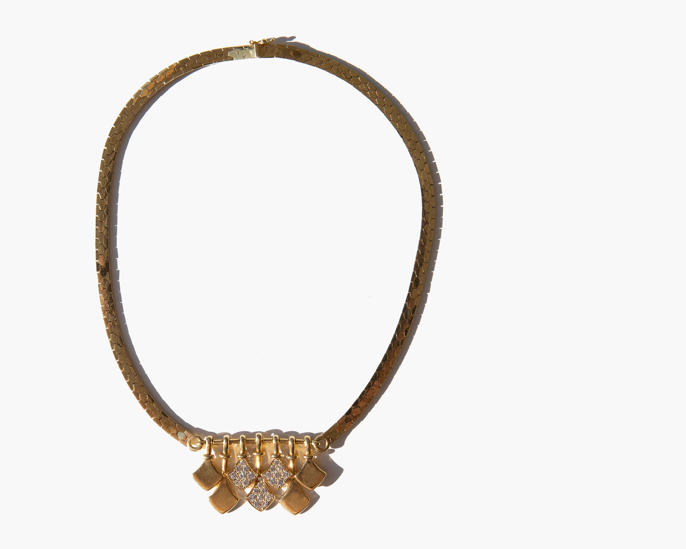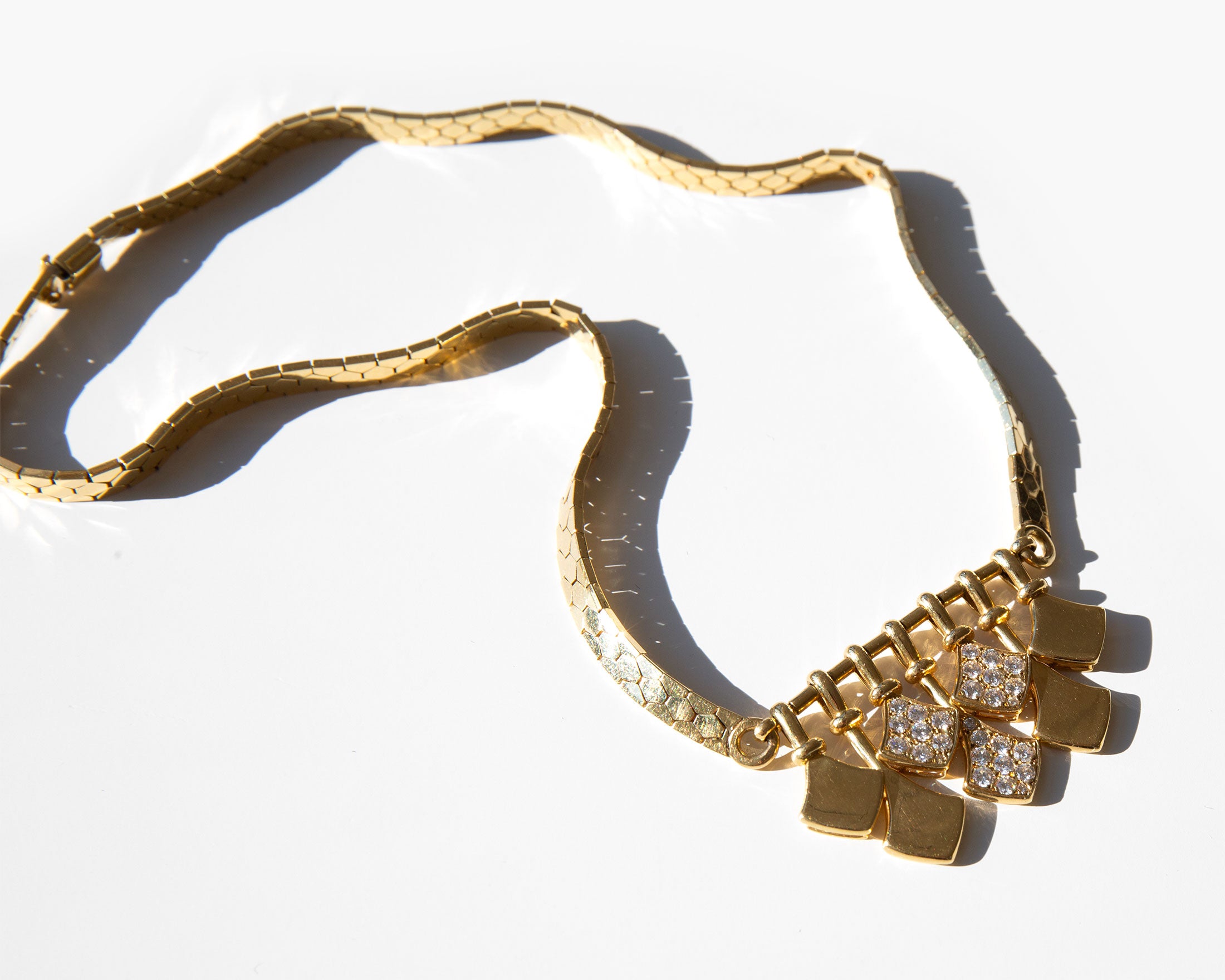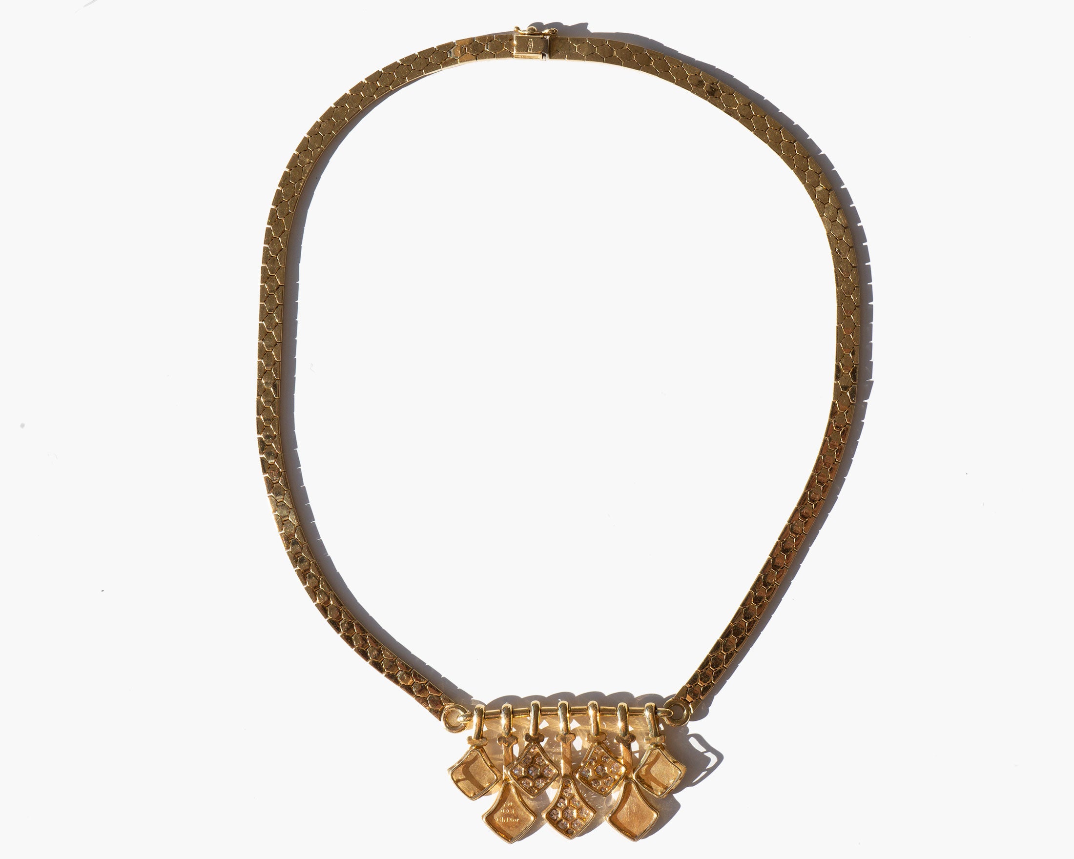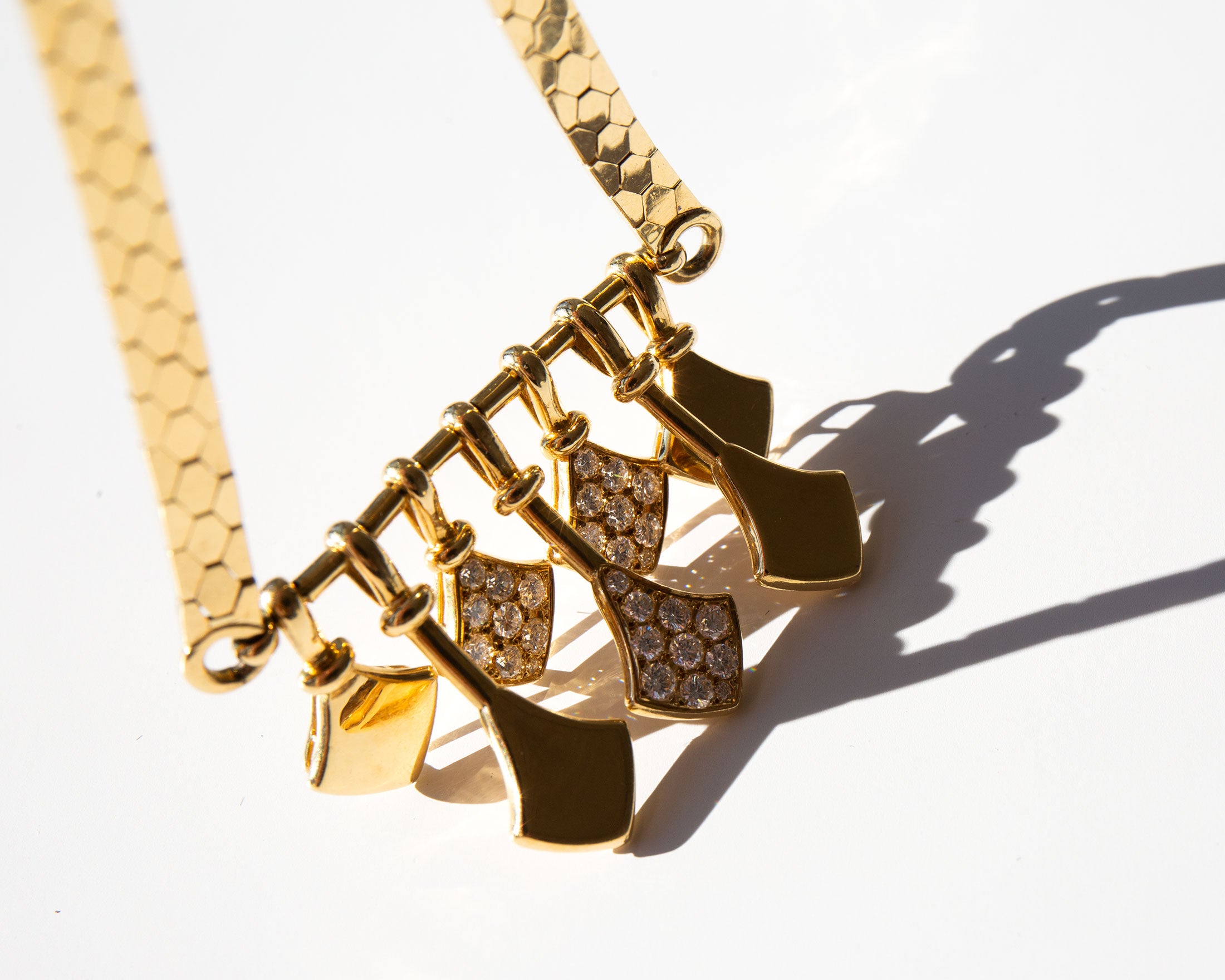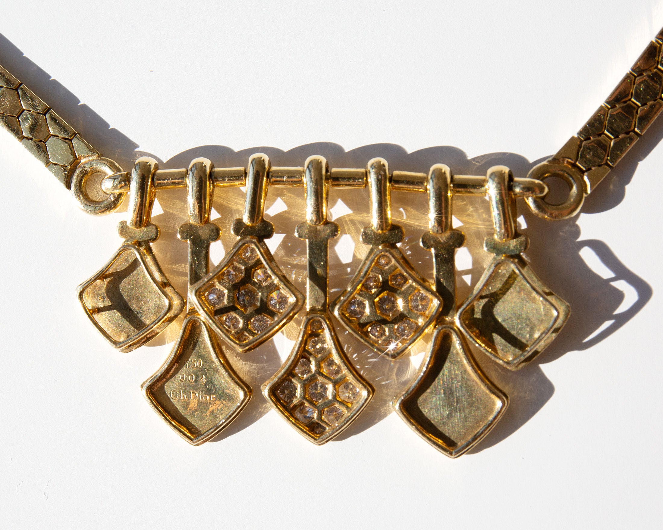 Dazzling and weighty signed Christian Dior 1970s era 18k gold and diamond necklace.