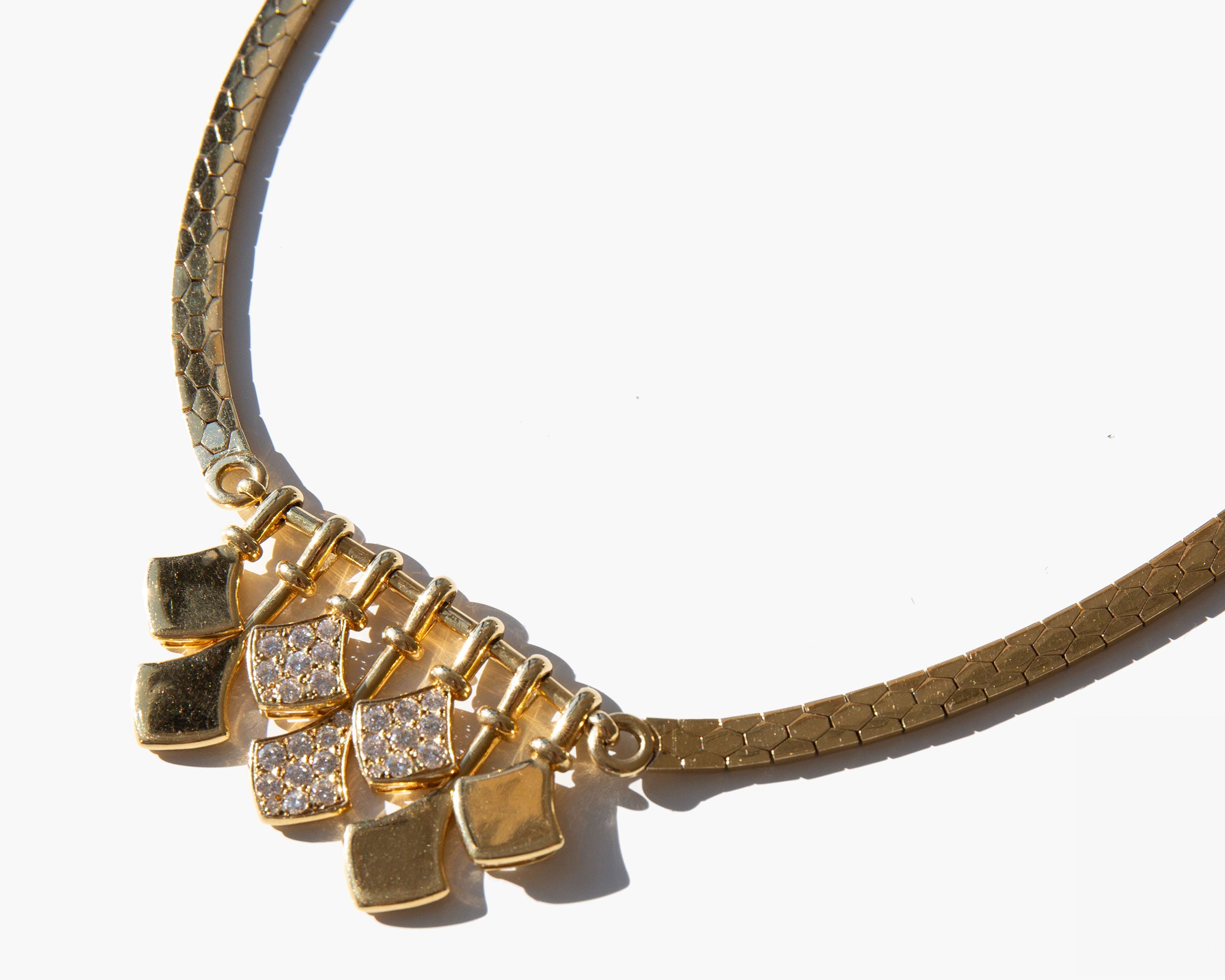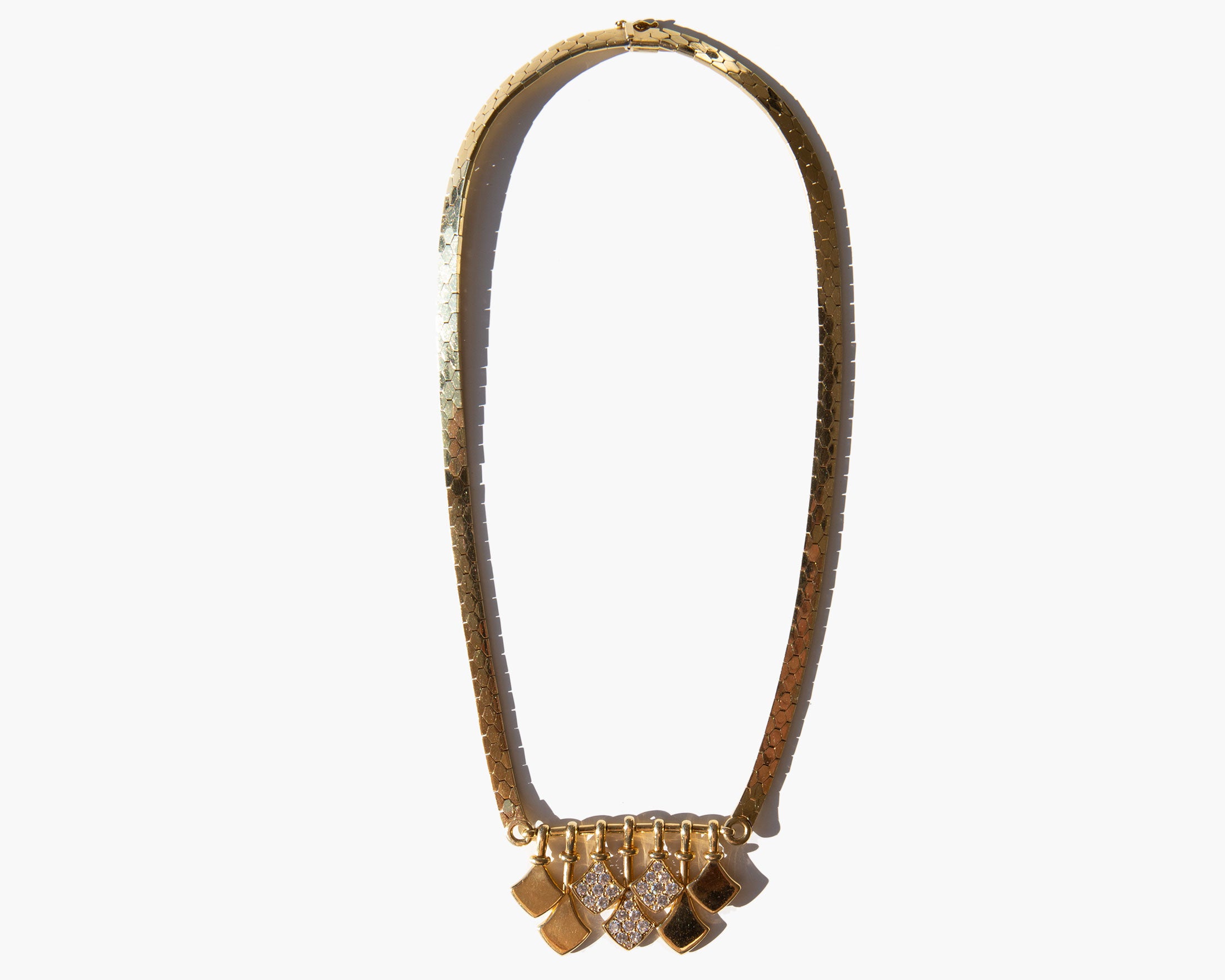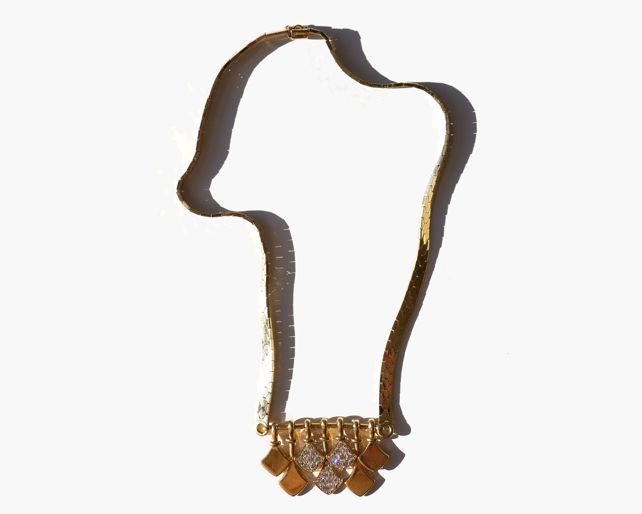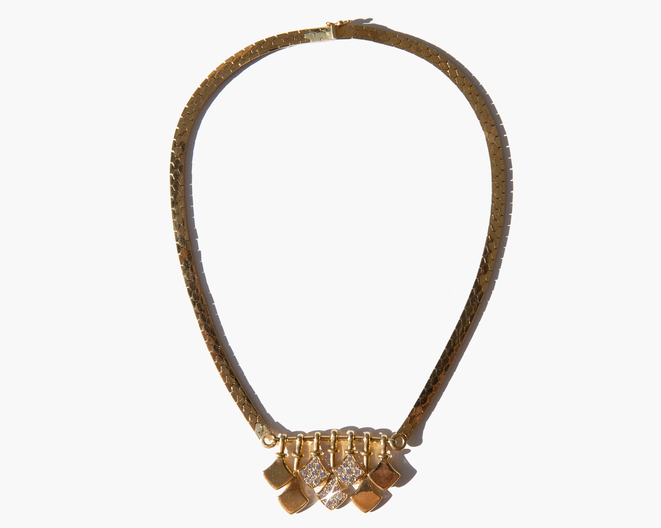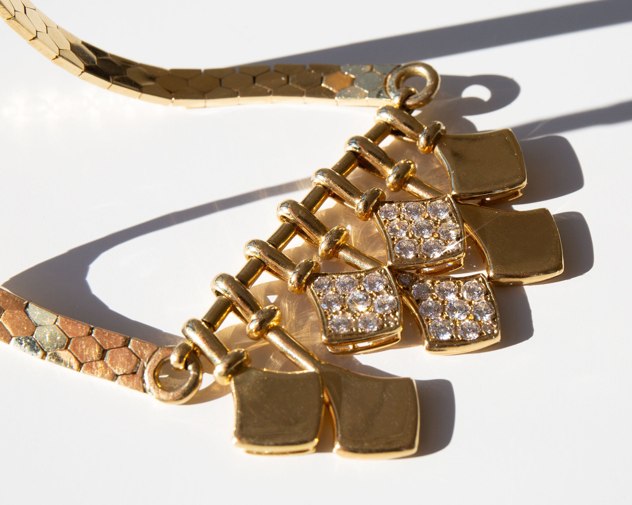 Dazzling and weighty signed Christian Dior 1970s era 18k gold and diamond necklace.