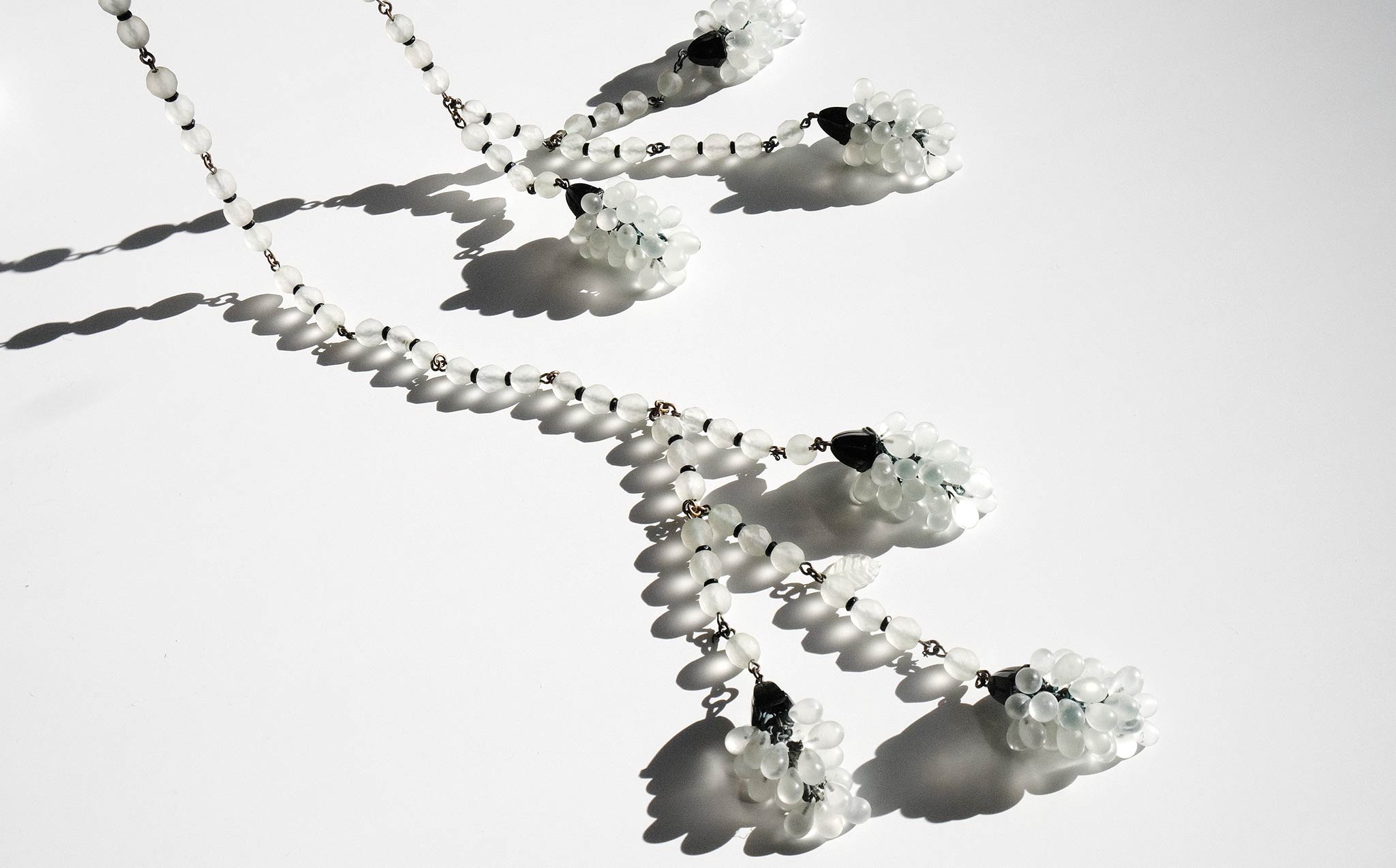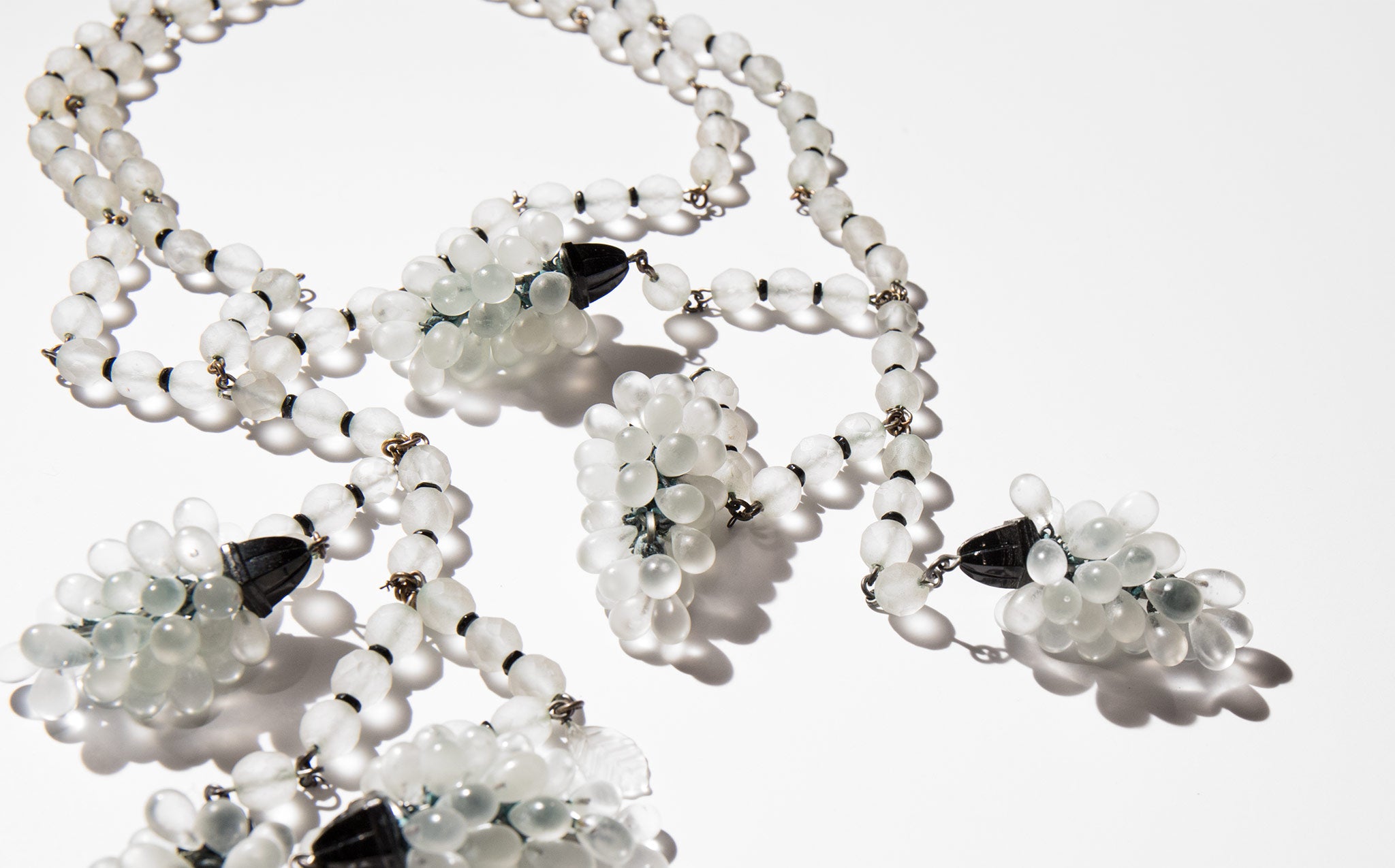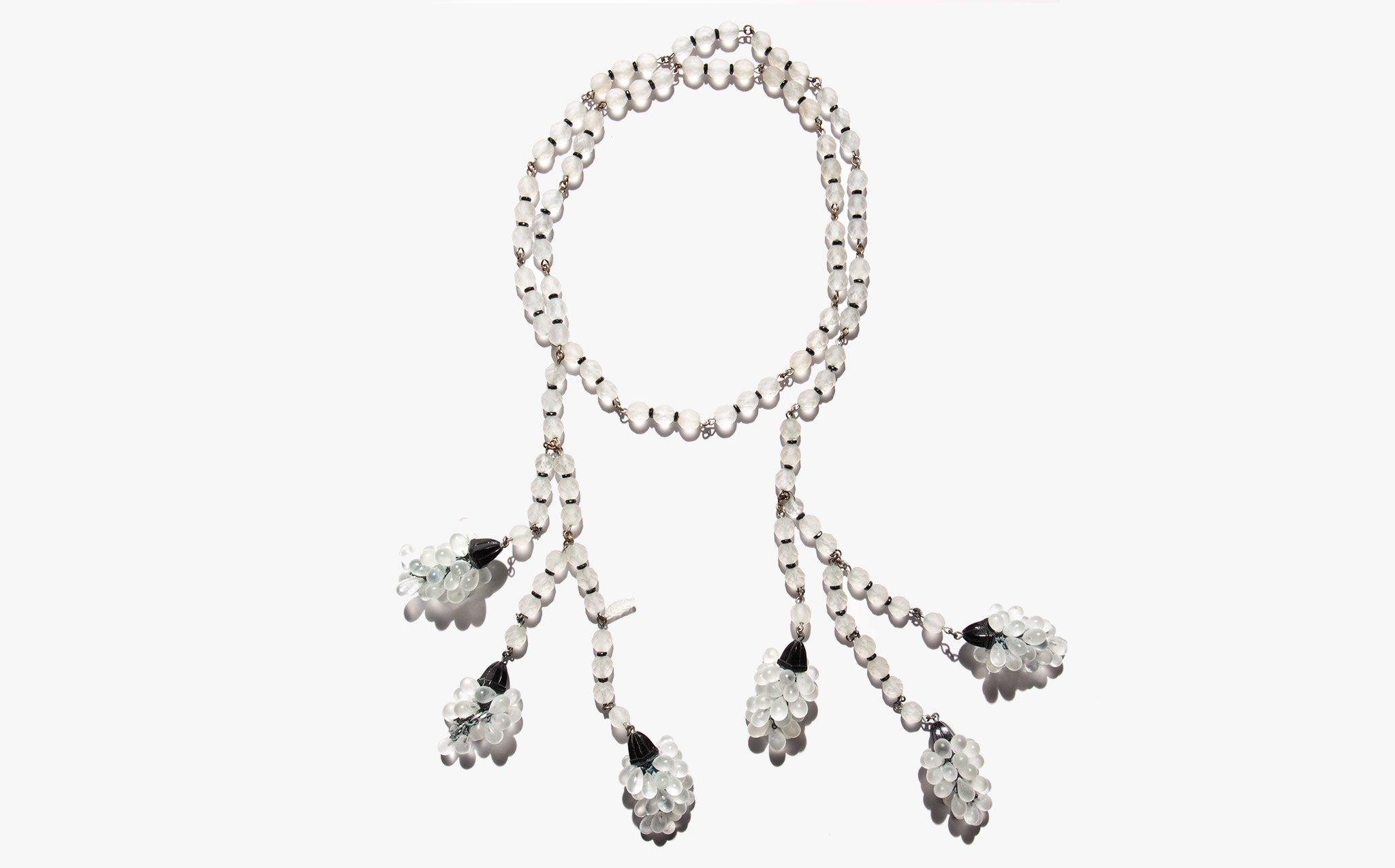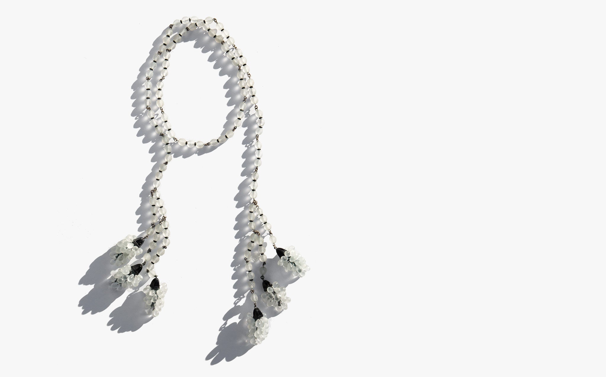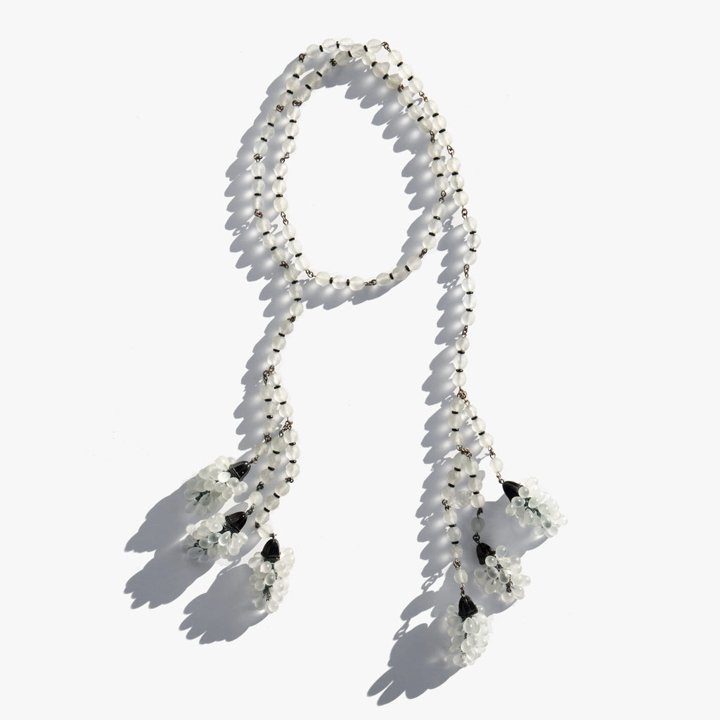 Incredible vintage frosted crystal and deep black glass lariat style necklace.