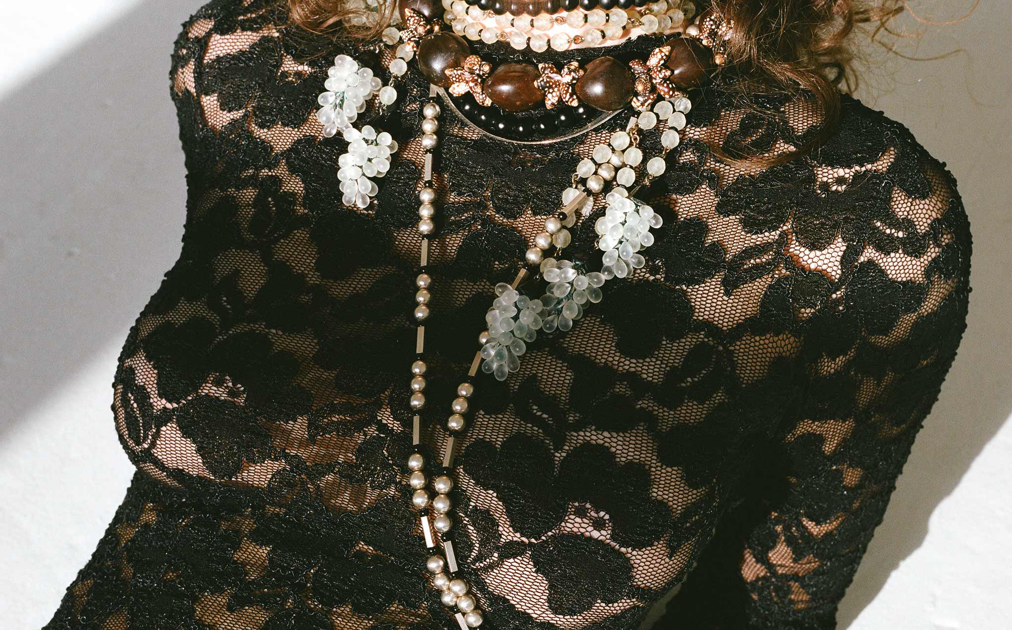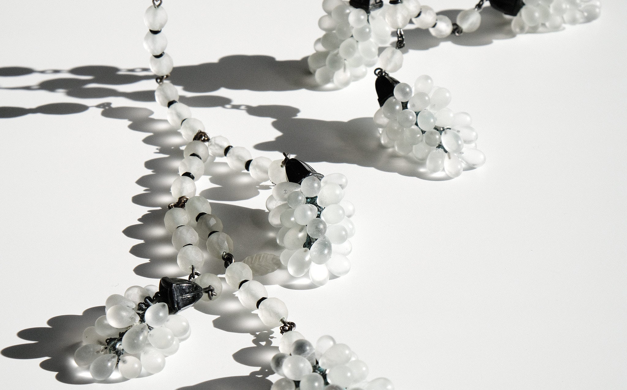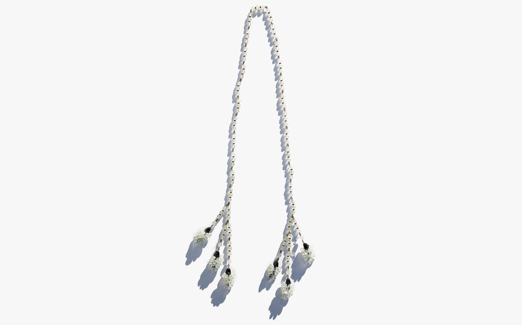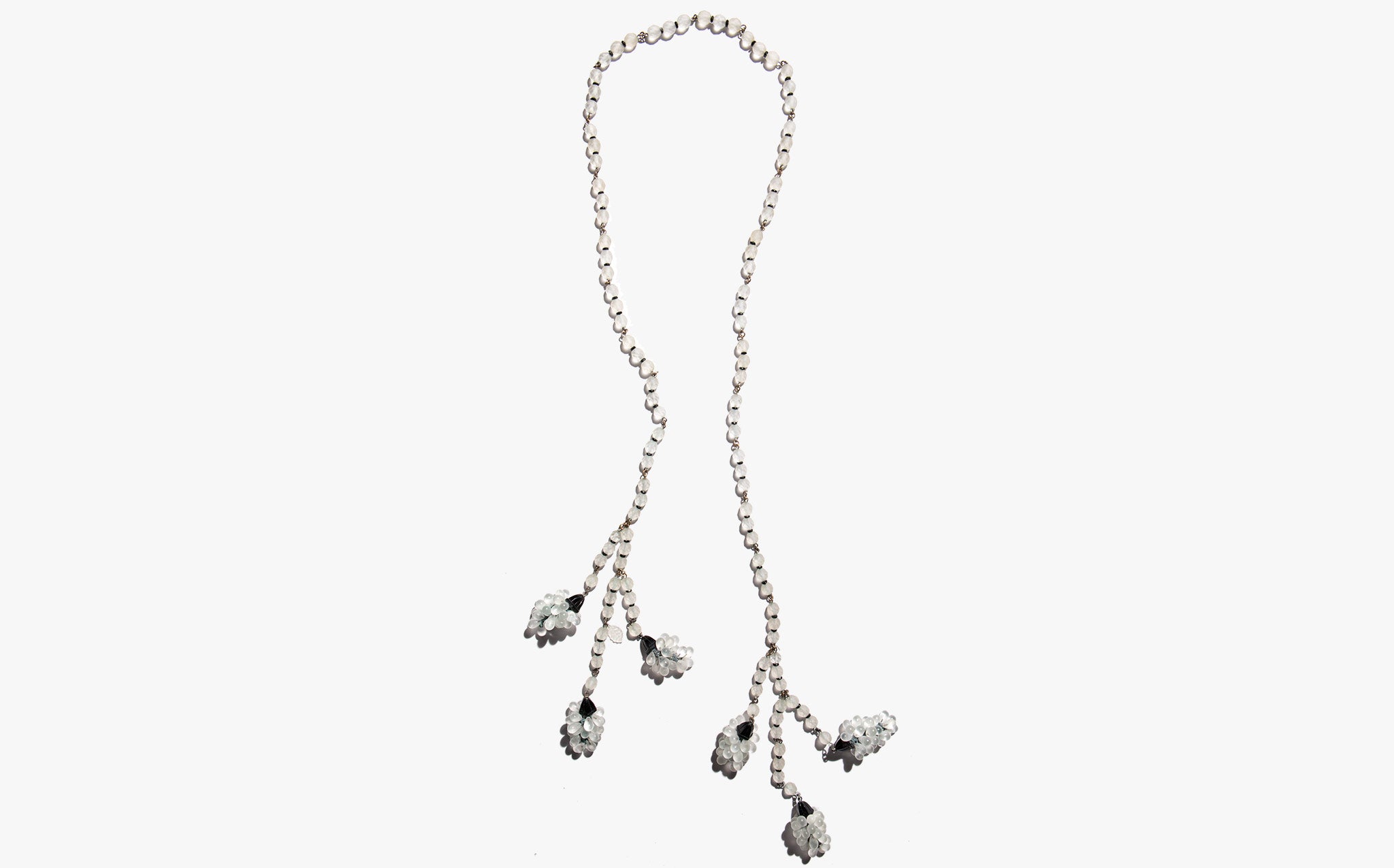 Incredible vintage frosted crystal and deep black glass lariat style necklace.