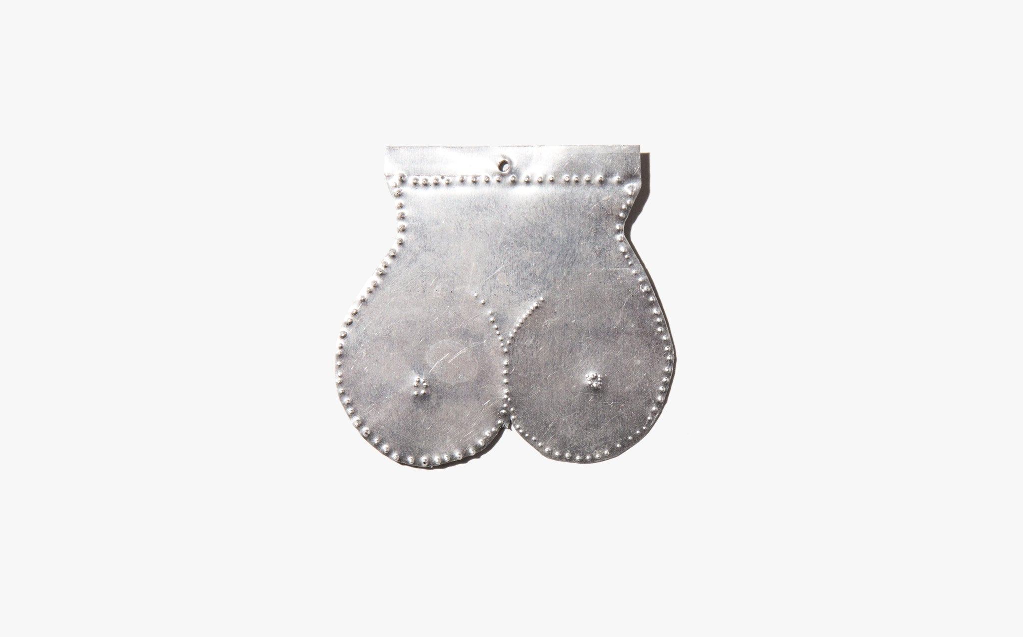 Hand cut and poked tin milagros from Mexico – talismans for luck and protection. Milagros in the shape of specific body parts are generally a prayer or offering for protection or to heal an ailment of that specific area of the body. Breast milagros then are used as general protection for breasts, a wish for someone suffering from breast cancer or other ailments of the breast, and as a talisman for new mothers hoping to increase their milk production.